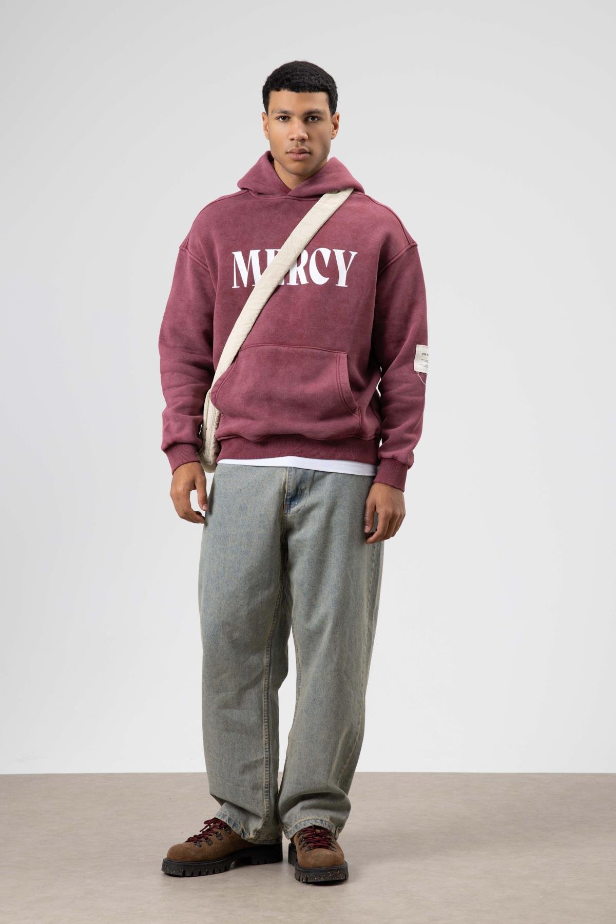 Kart Detaylı Yıkamalı Oversize Sweatshirt Bordo (V10-13)