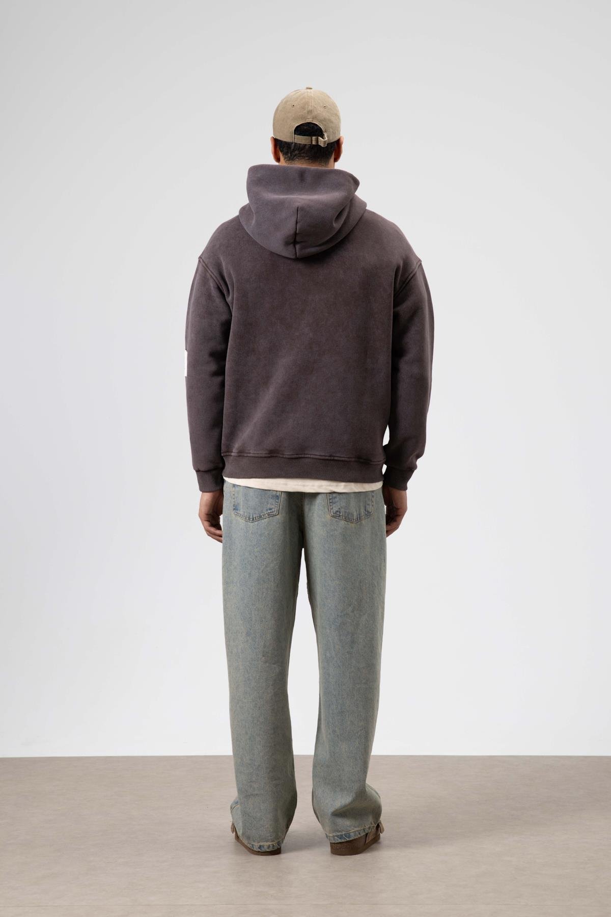 Kart Detaylı Yıkamalı Oversize Sweatshirt Kahve (V10-13)