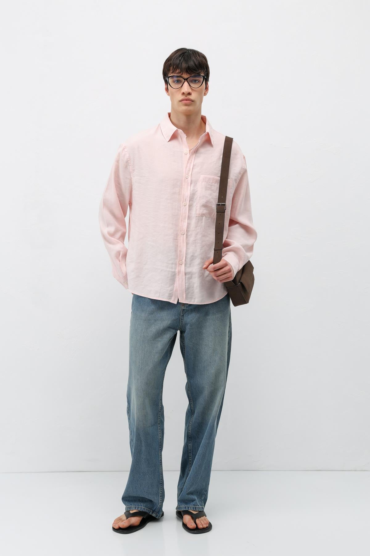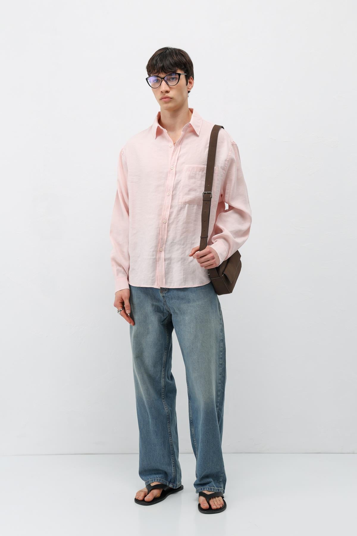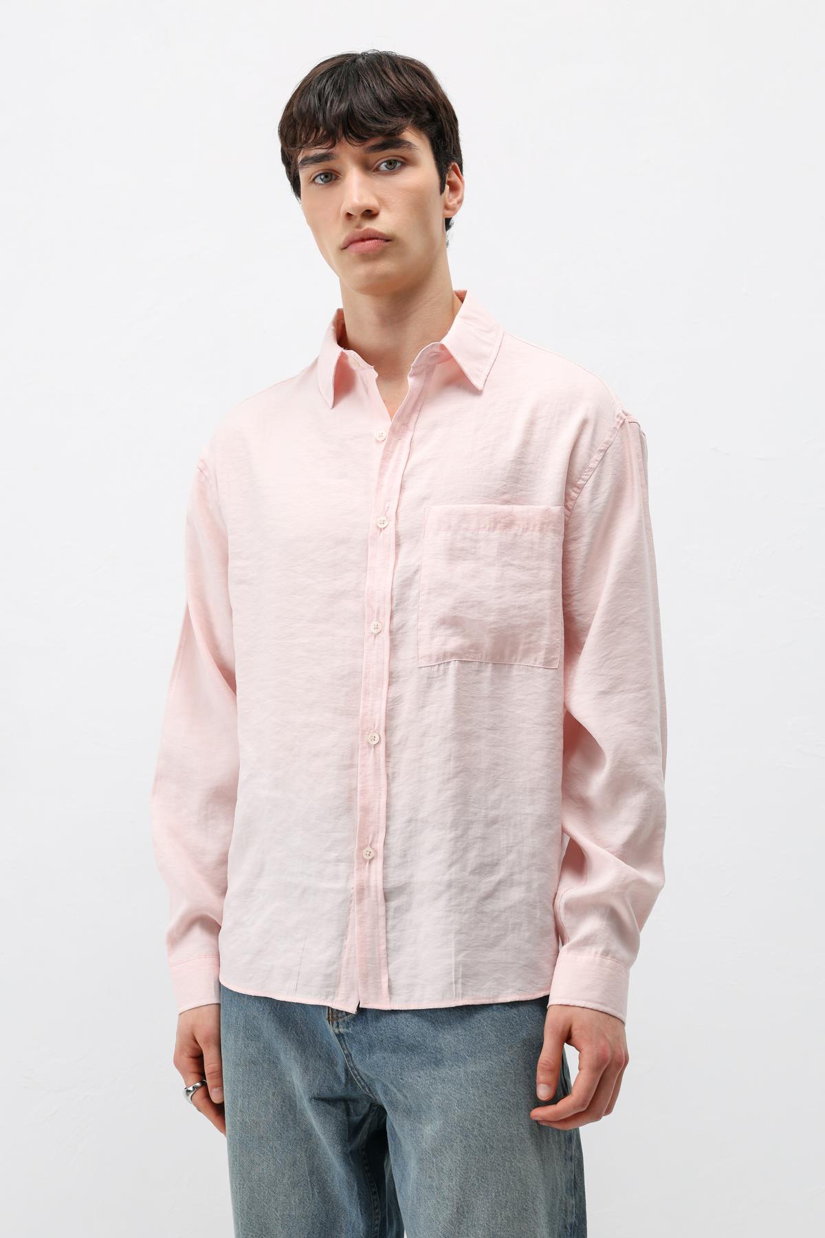Modal Kumaş Cepli Oversize Gömlek Pudra (V40-101)