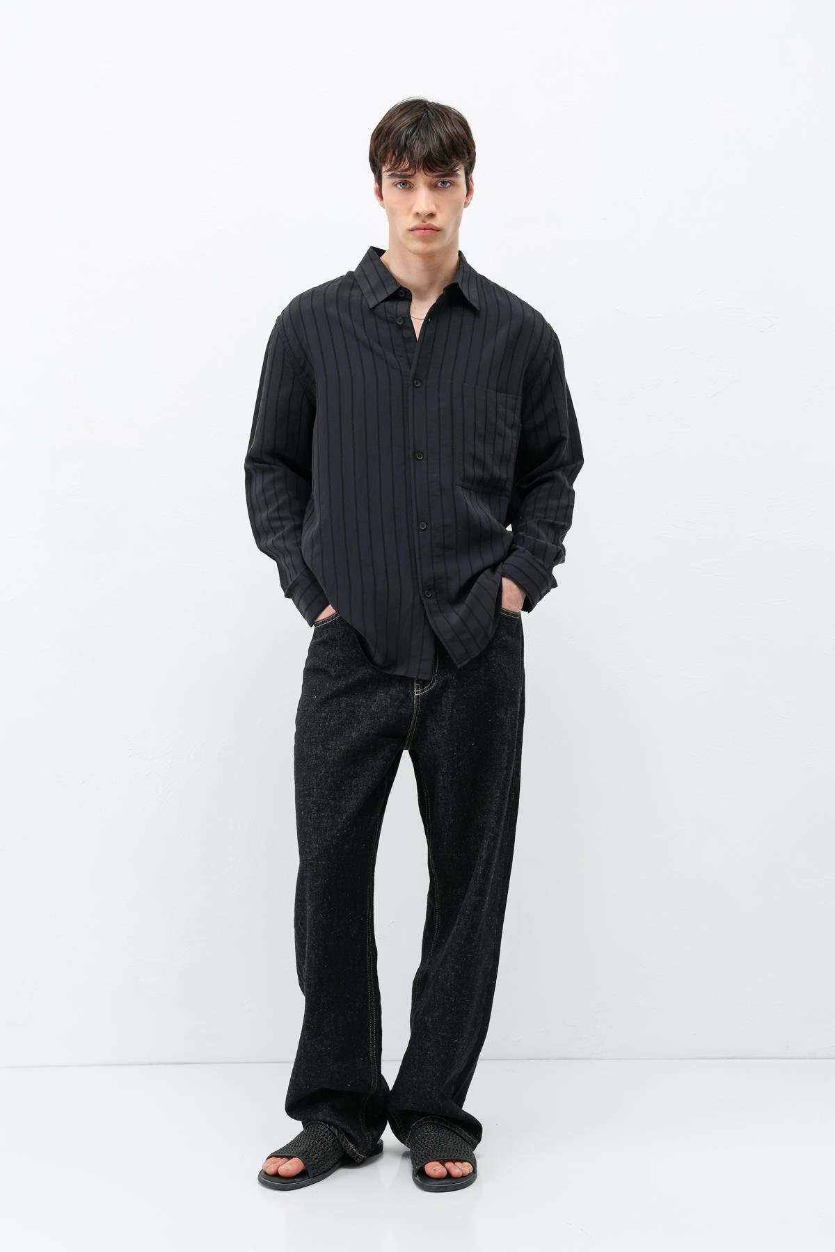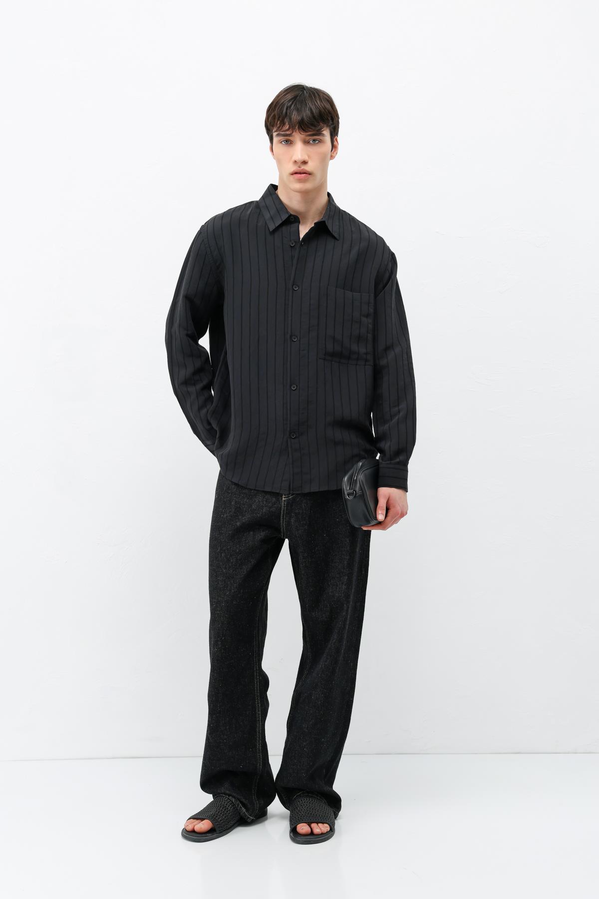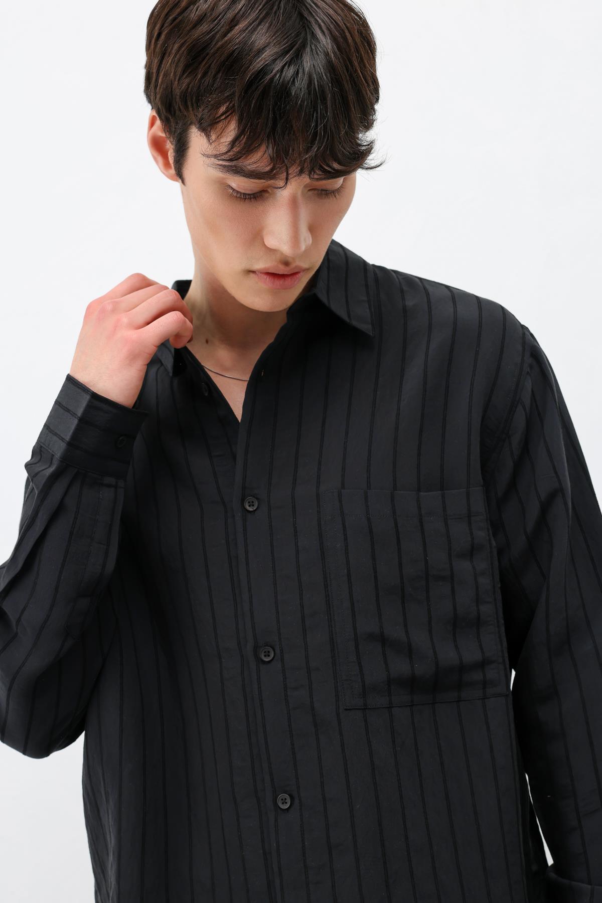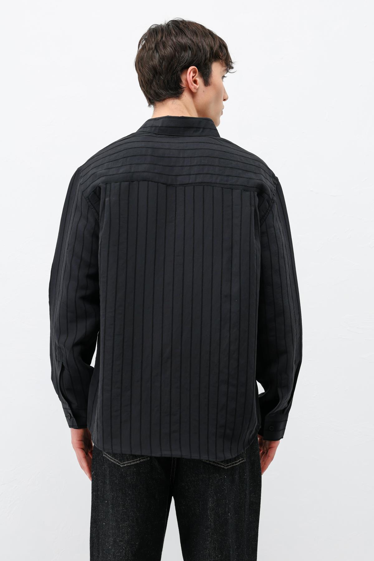 Modal Kumaş Çizgili Oversize Gömlek Siyah (V40-102)
