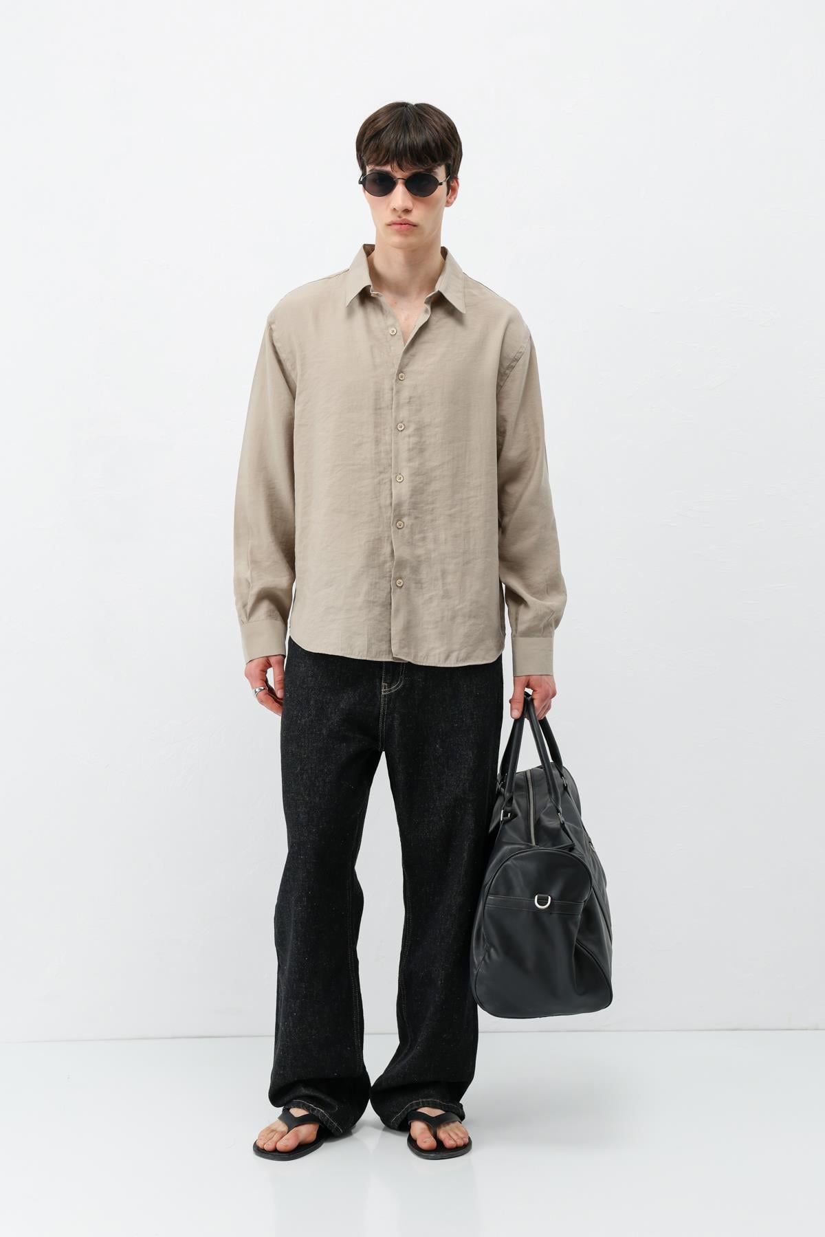 Modal Kumaş Oversize Gömlek Bej (V40-100)