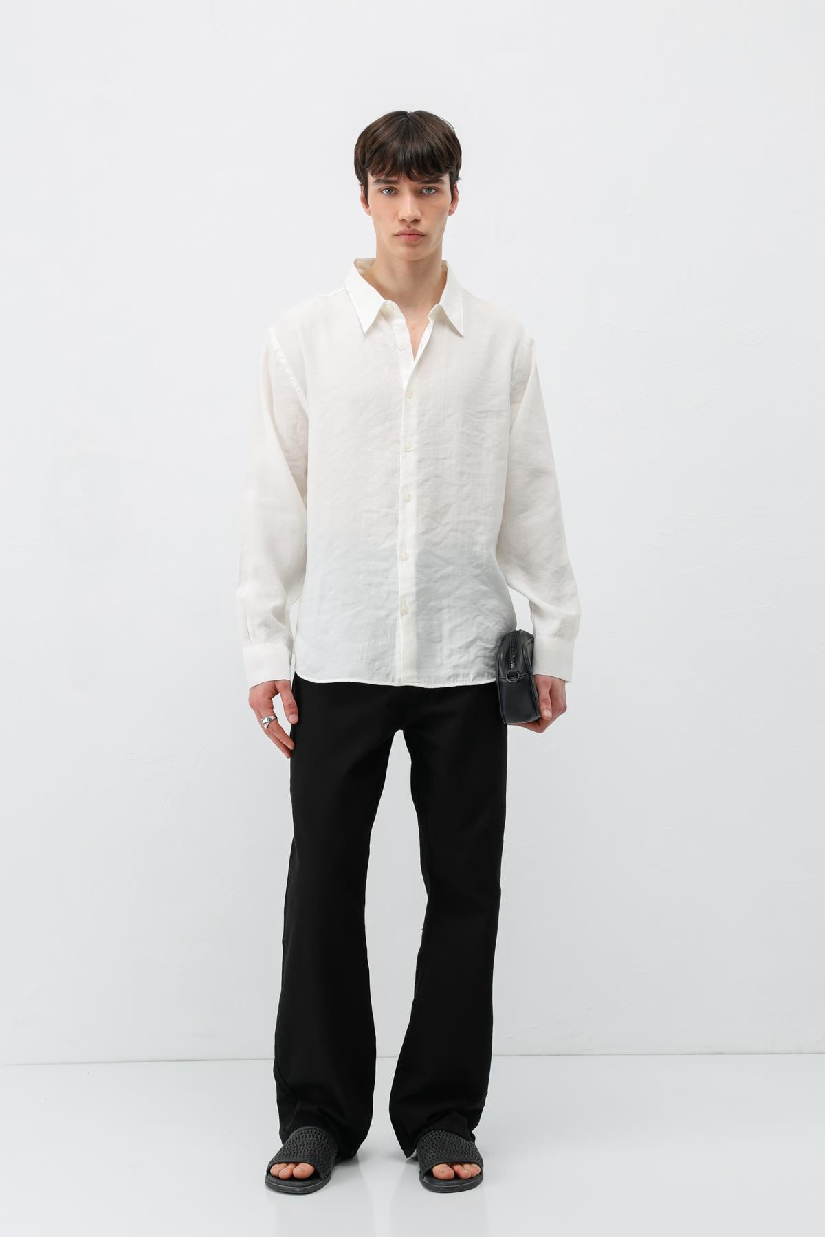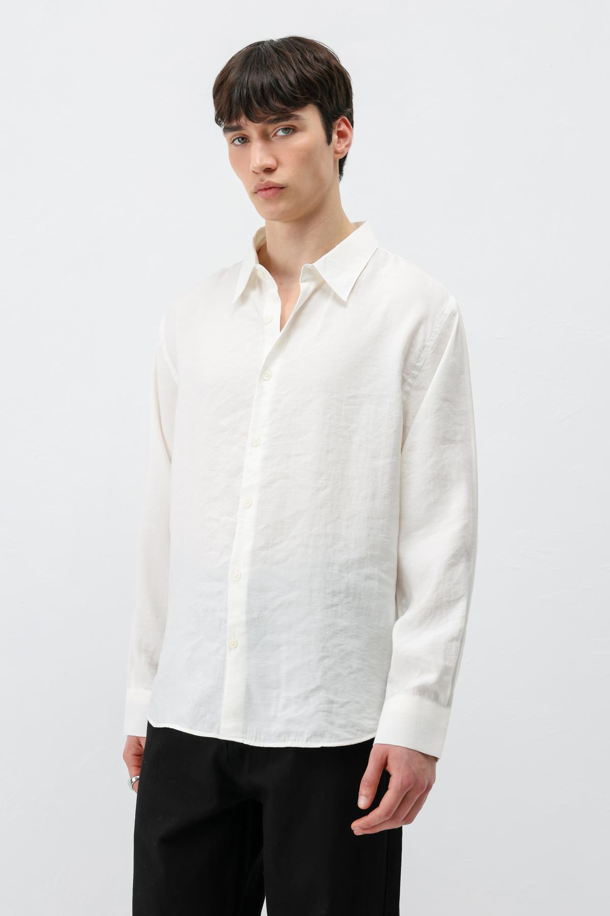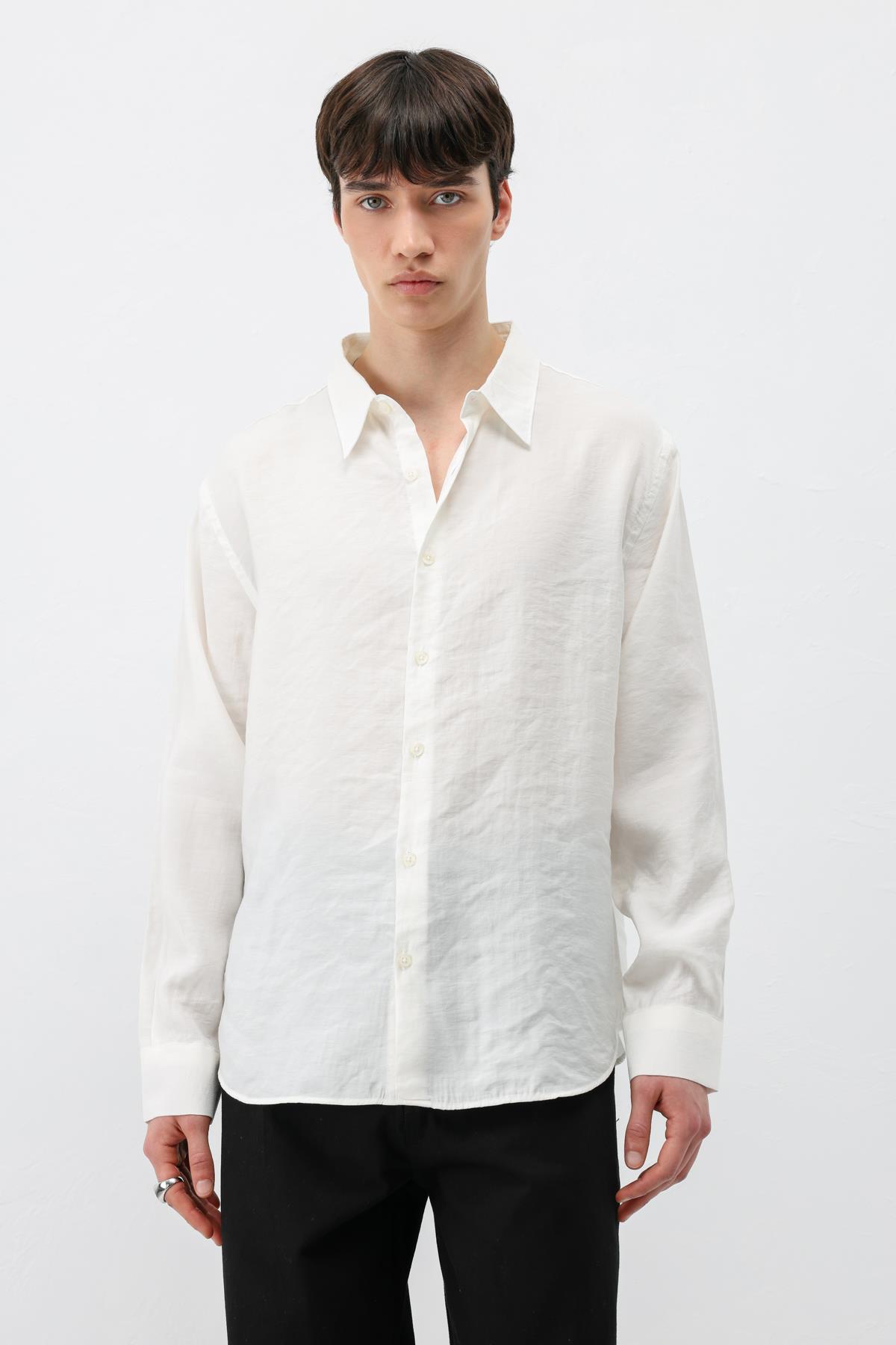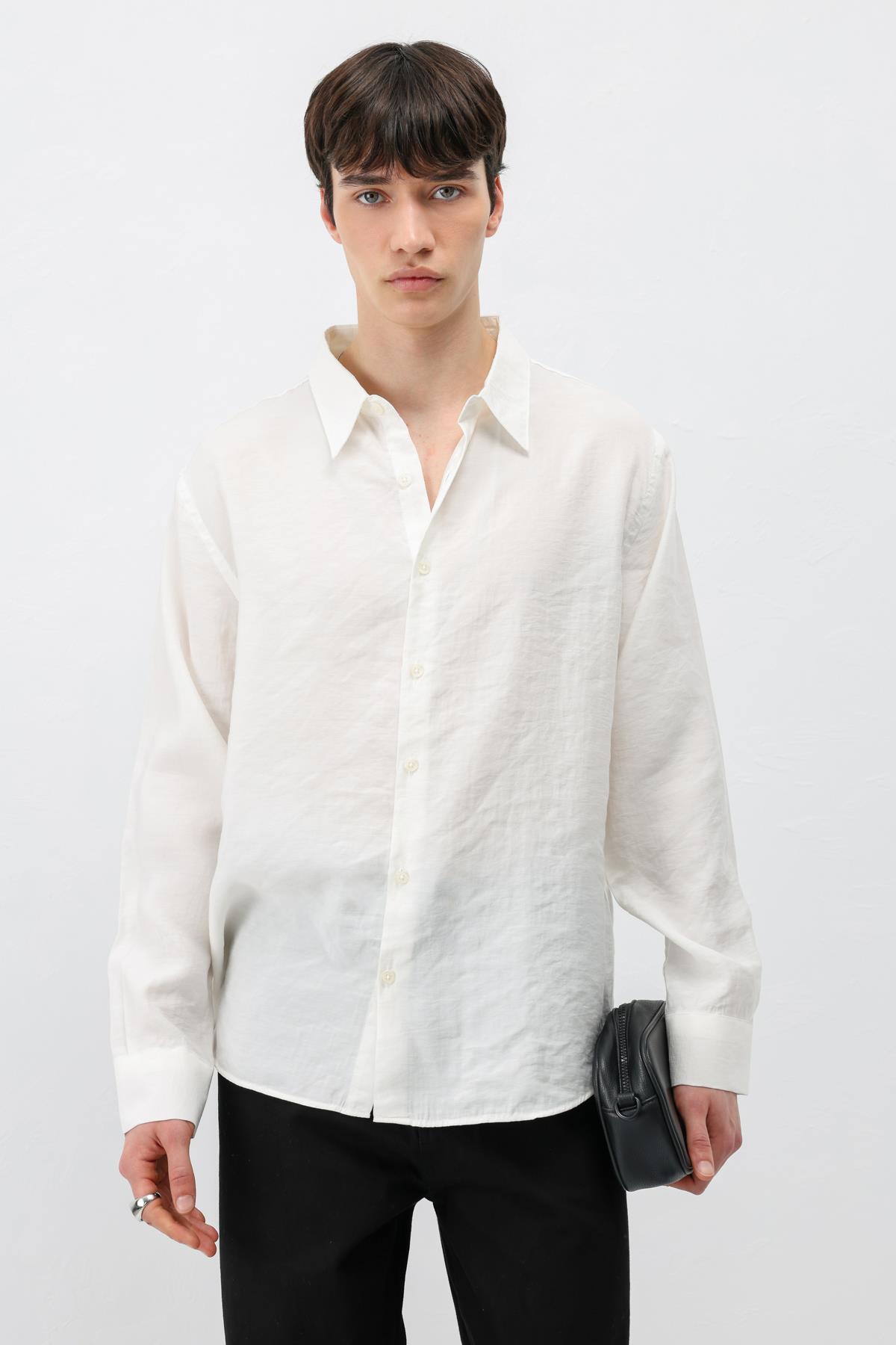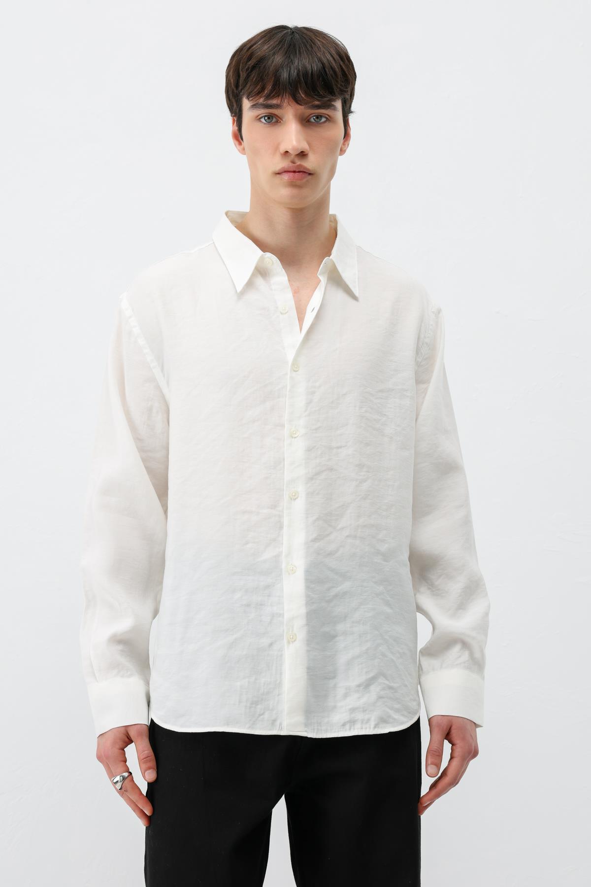 Modal Kumaş Oversize Gömlek Ekru (V40-100)