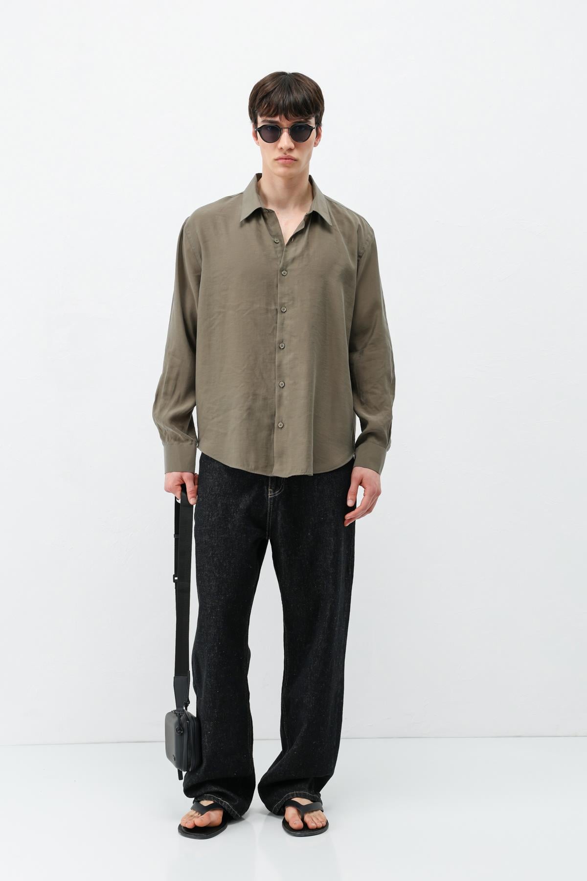 Modal Kumaş Oversize Gömlek Haki (V40-100)
