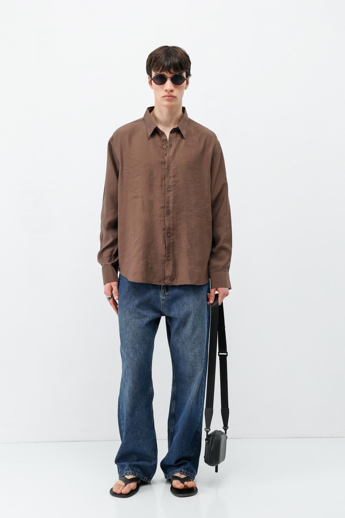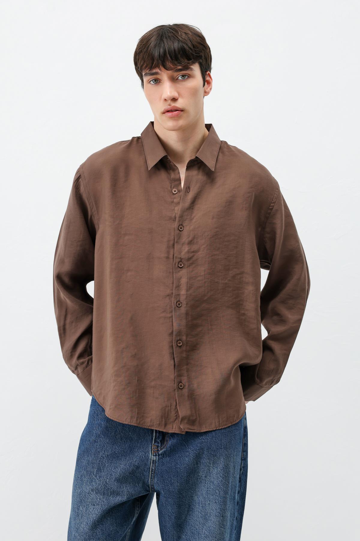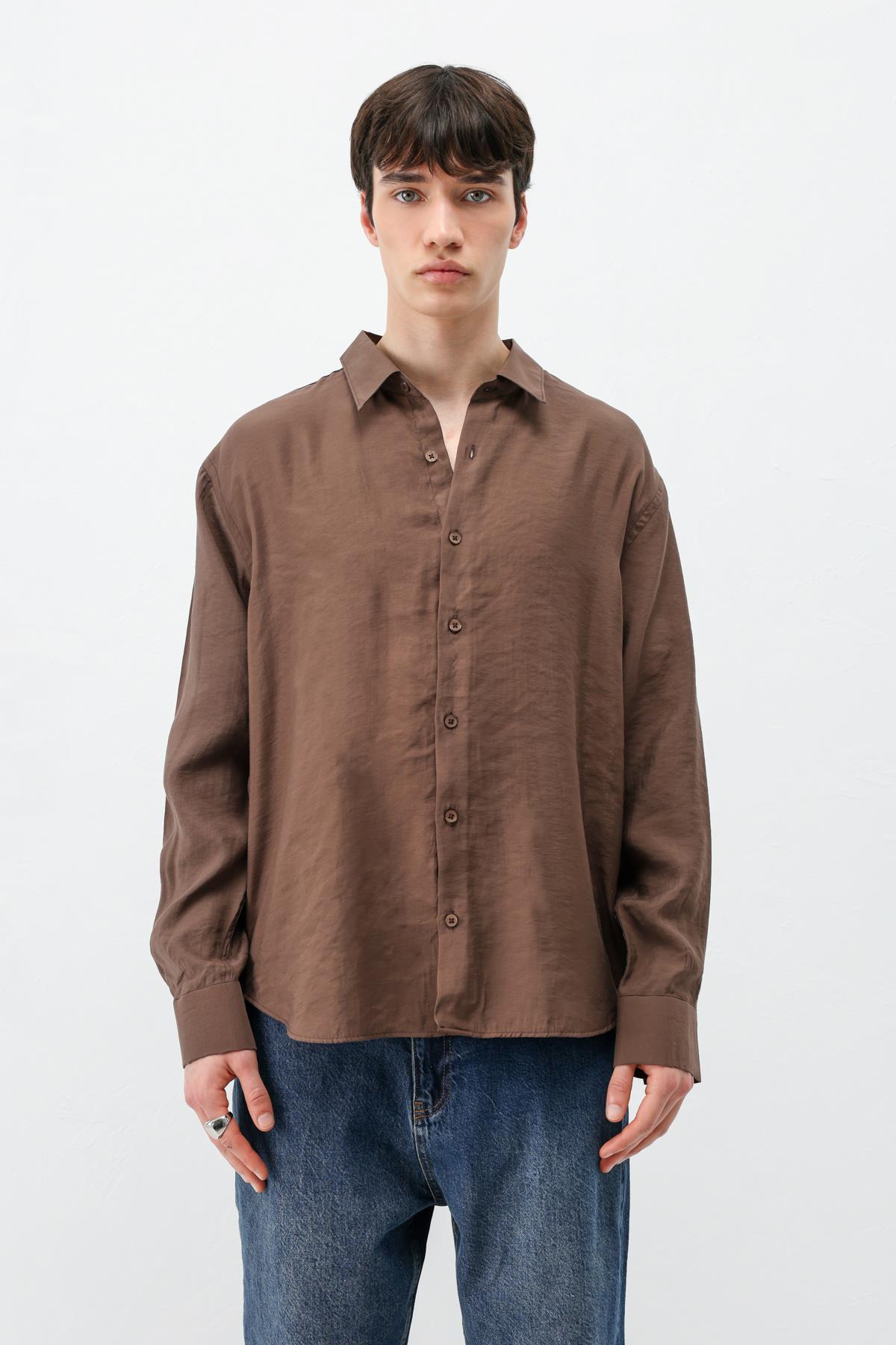 Modal Kumaş Oversize Gömlek Kahve (V40-100)