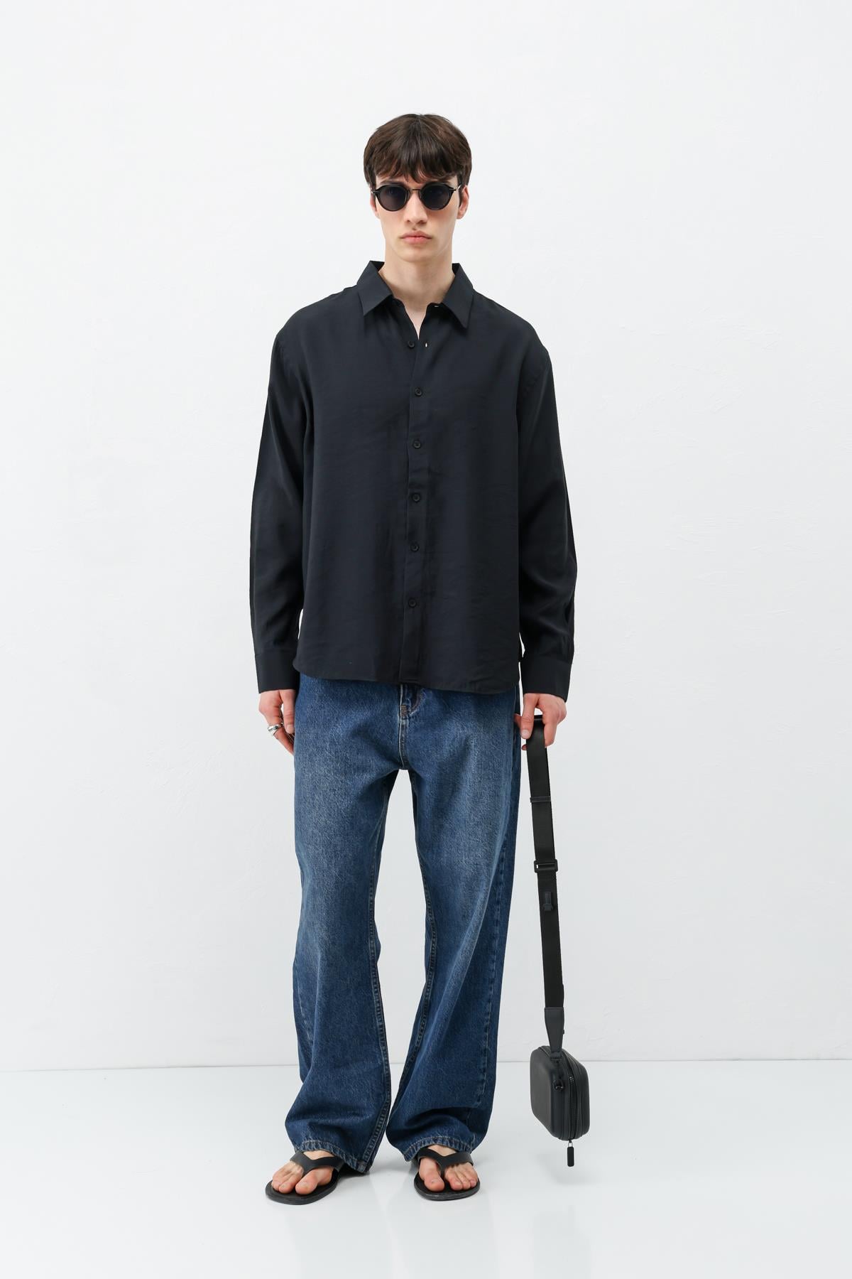 Modal Kumaş Oversize Gömlek Siyah (V40-100)
