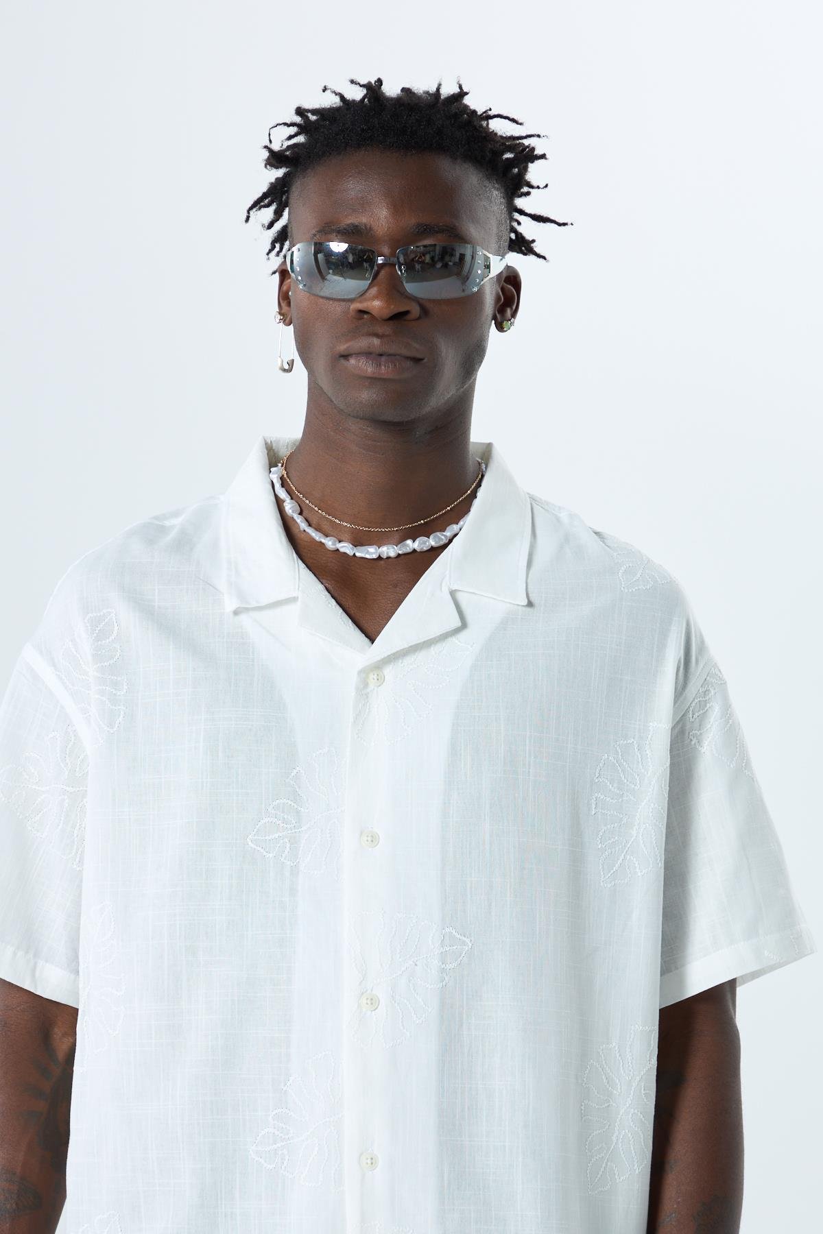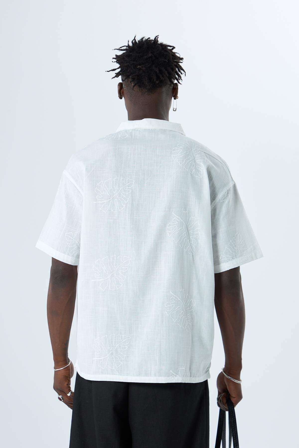 Nakış Detaylı Oversize Keten Gömlek Ekru (40-881)