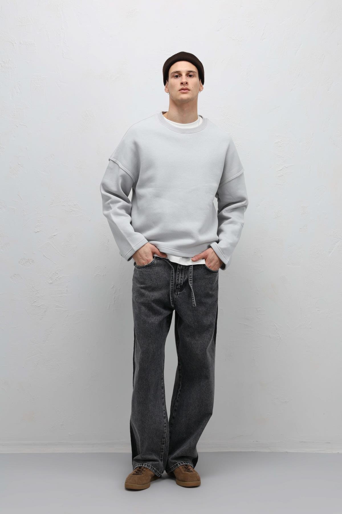 Boxy Fit Basic Sweatshirt Açık Gri (V70-97)
