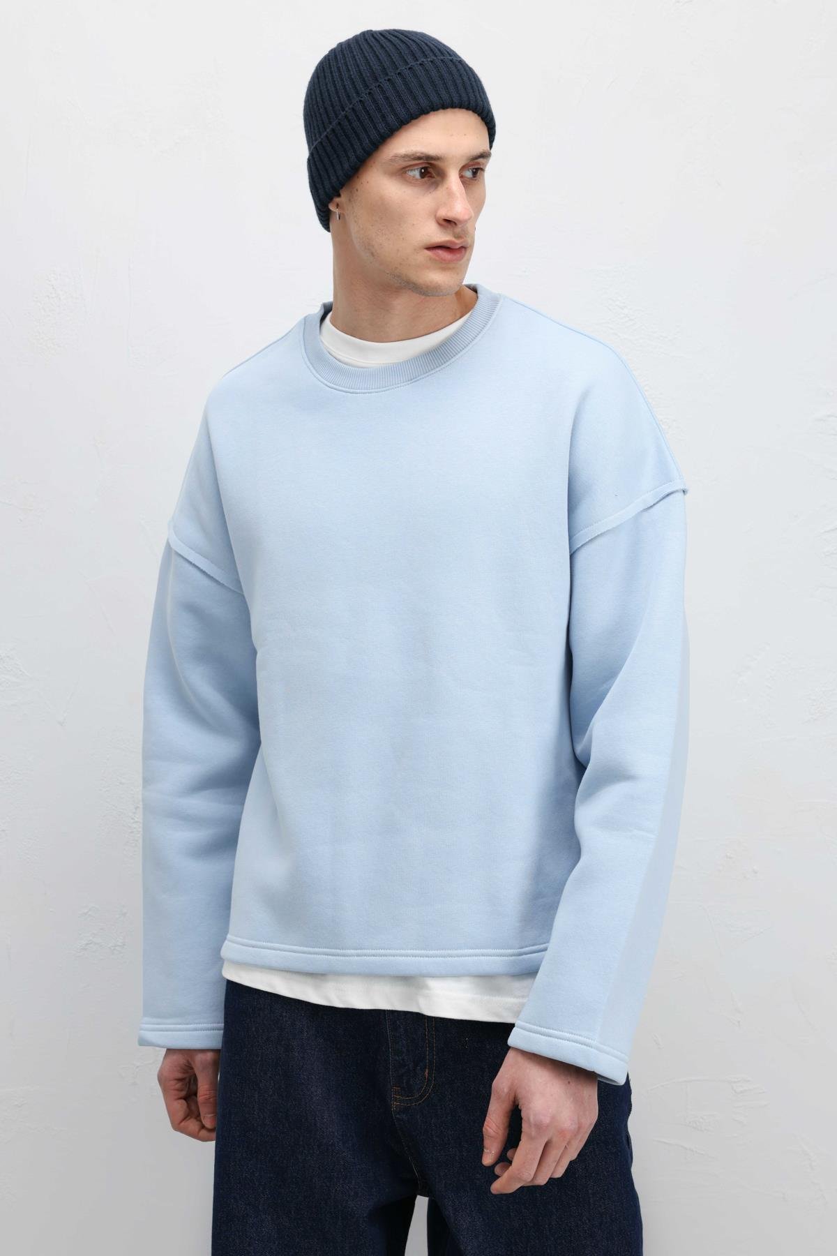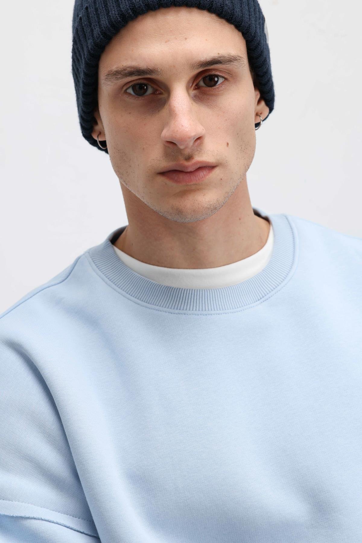 Boxy Fit Basic Sweatshirt Bebe Mavi (V70-97)