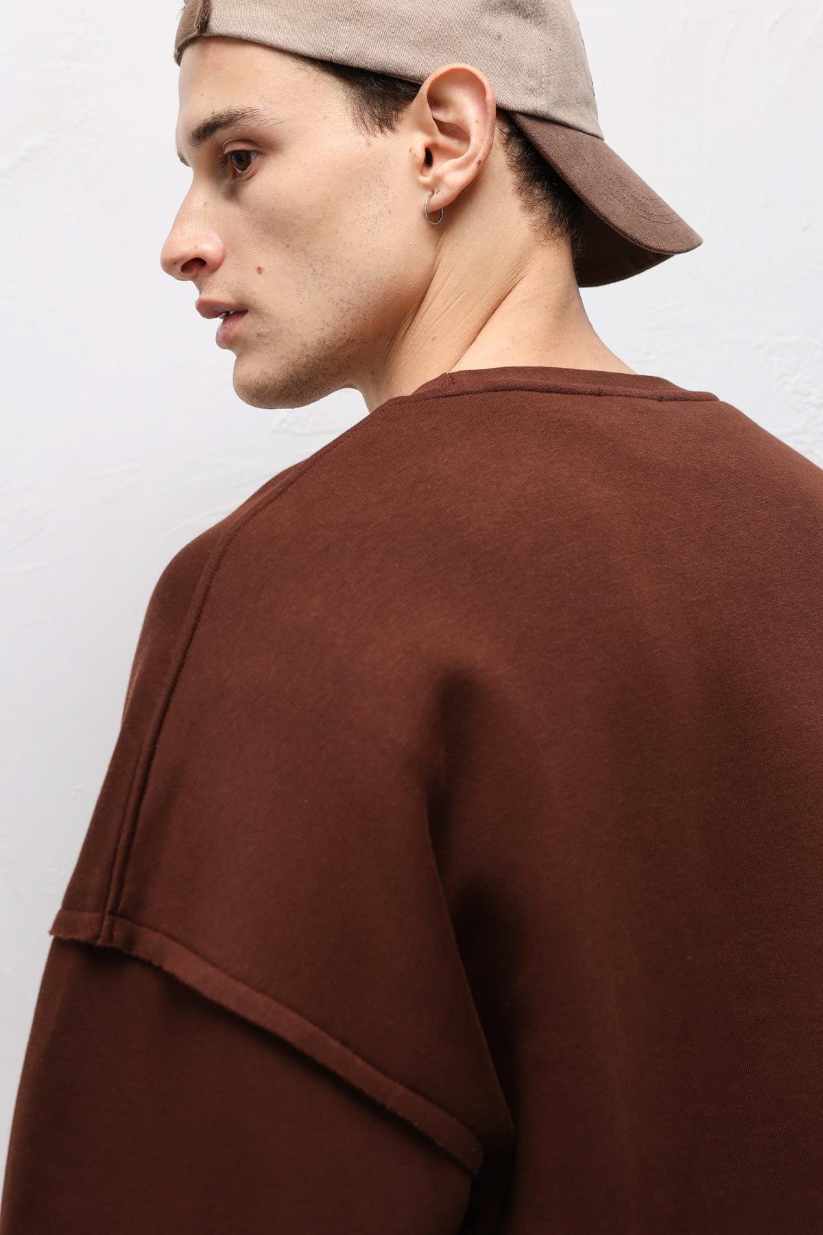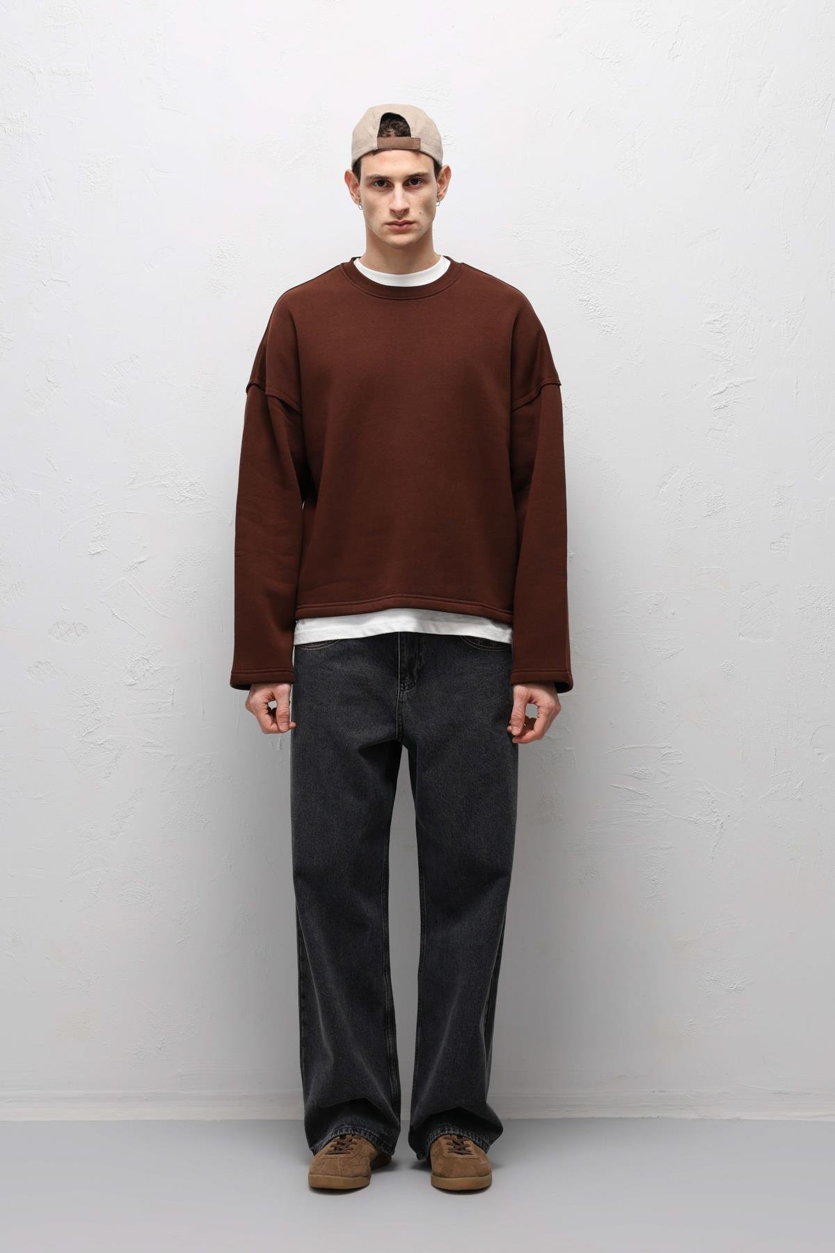 Boxy Fit Basic Sweatshirt Kahve (V70-97)