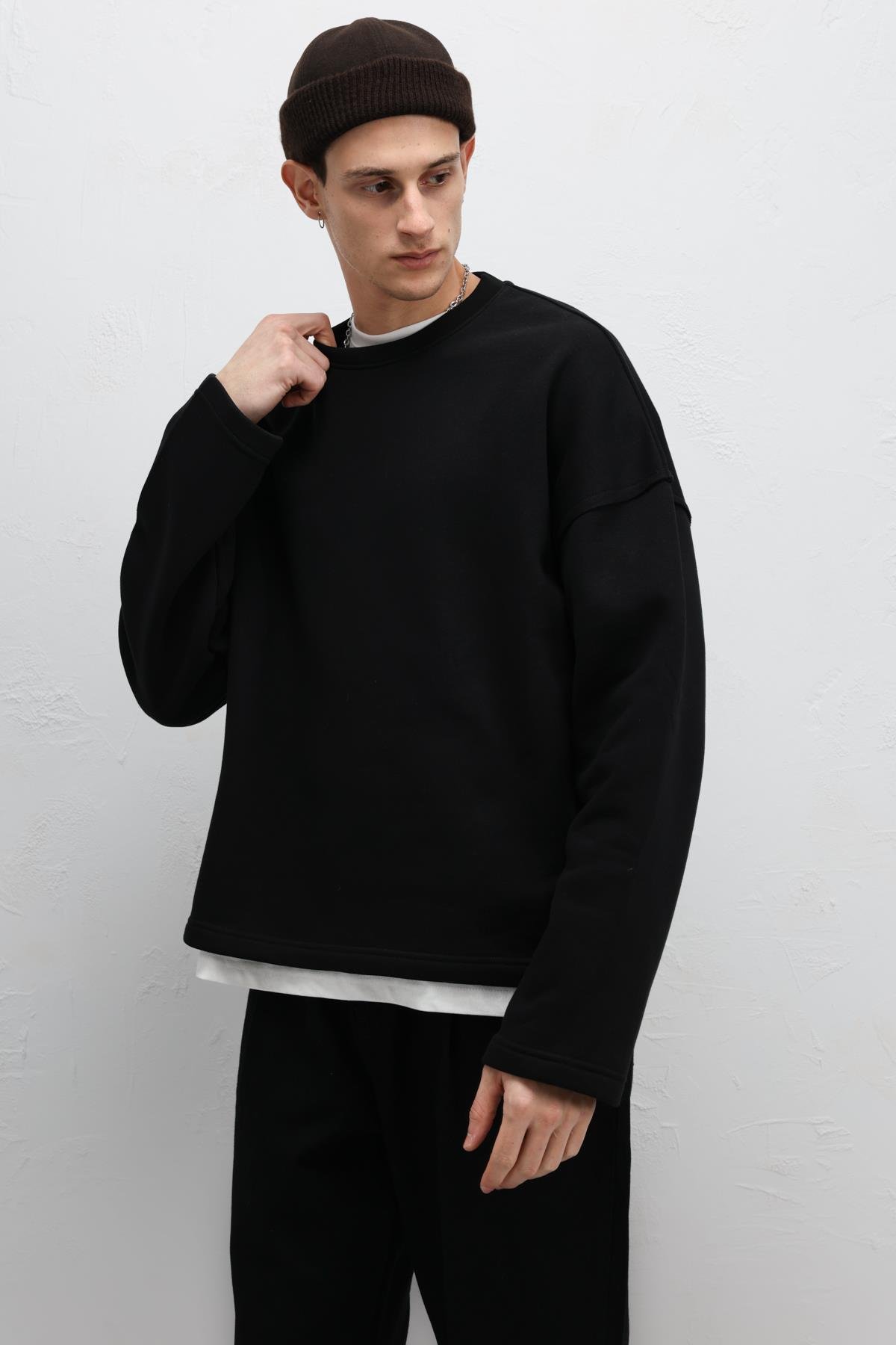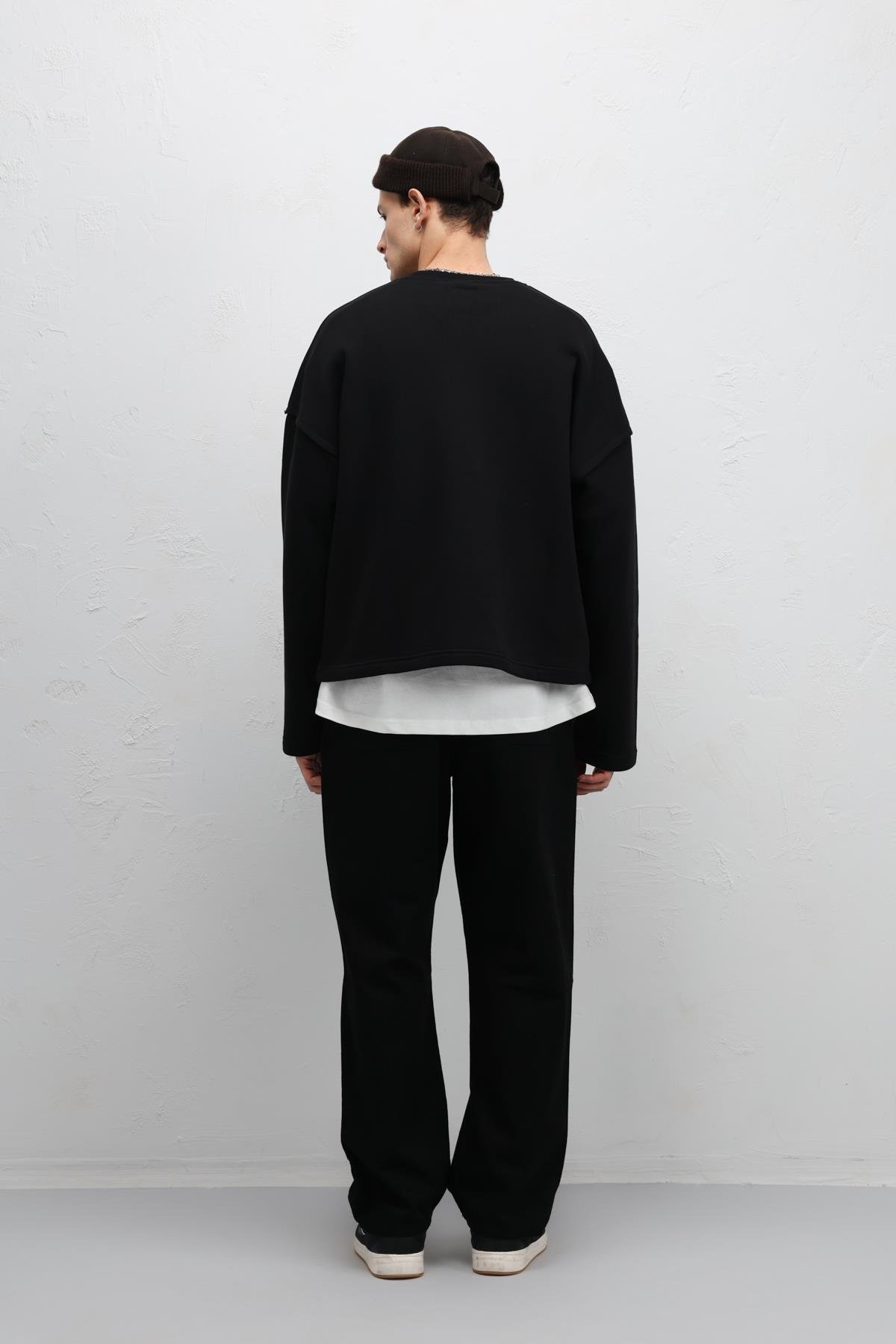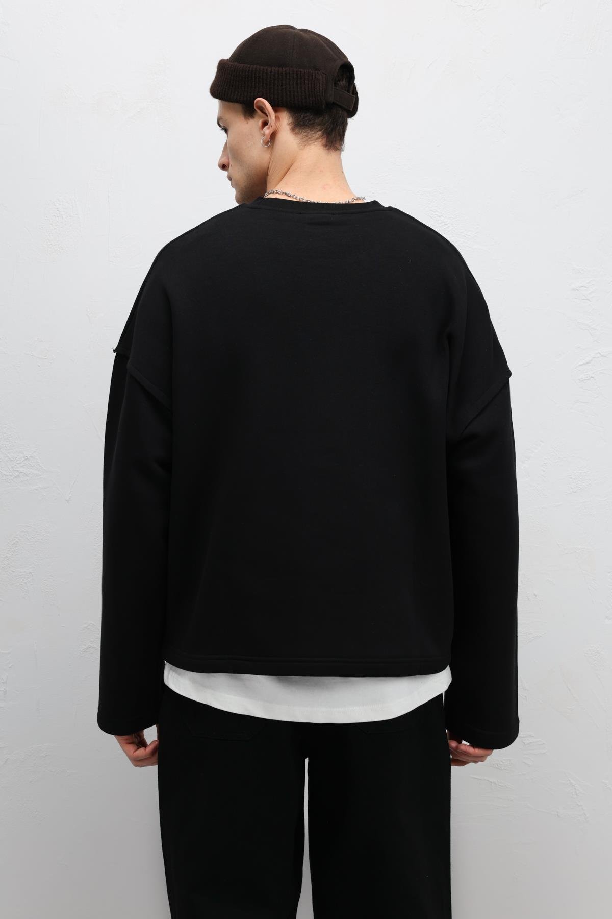Boxy Fit Basic Sweatshirt Siyah (V70-97)