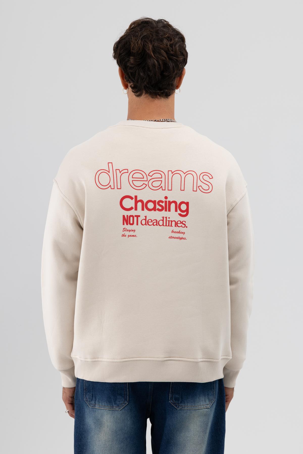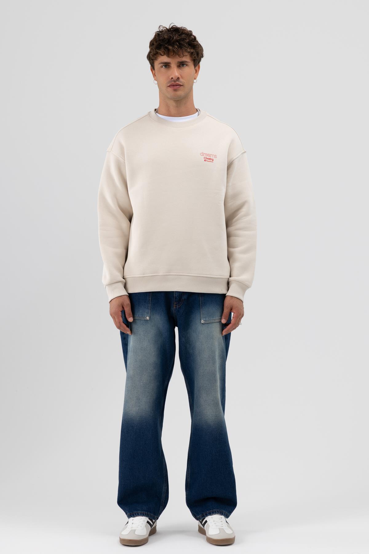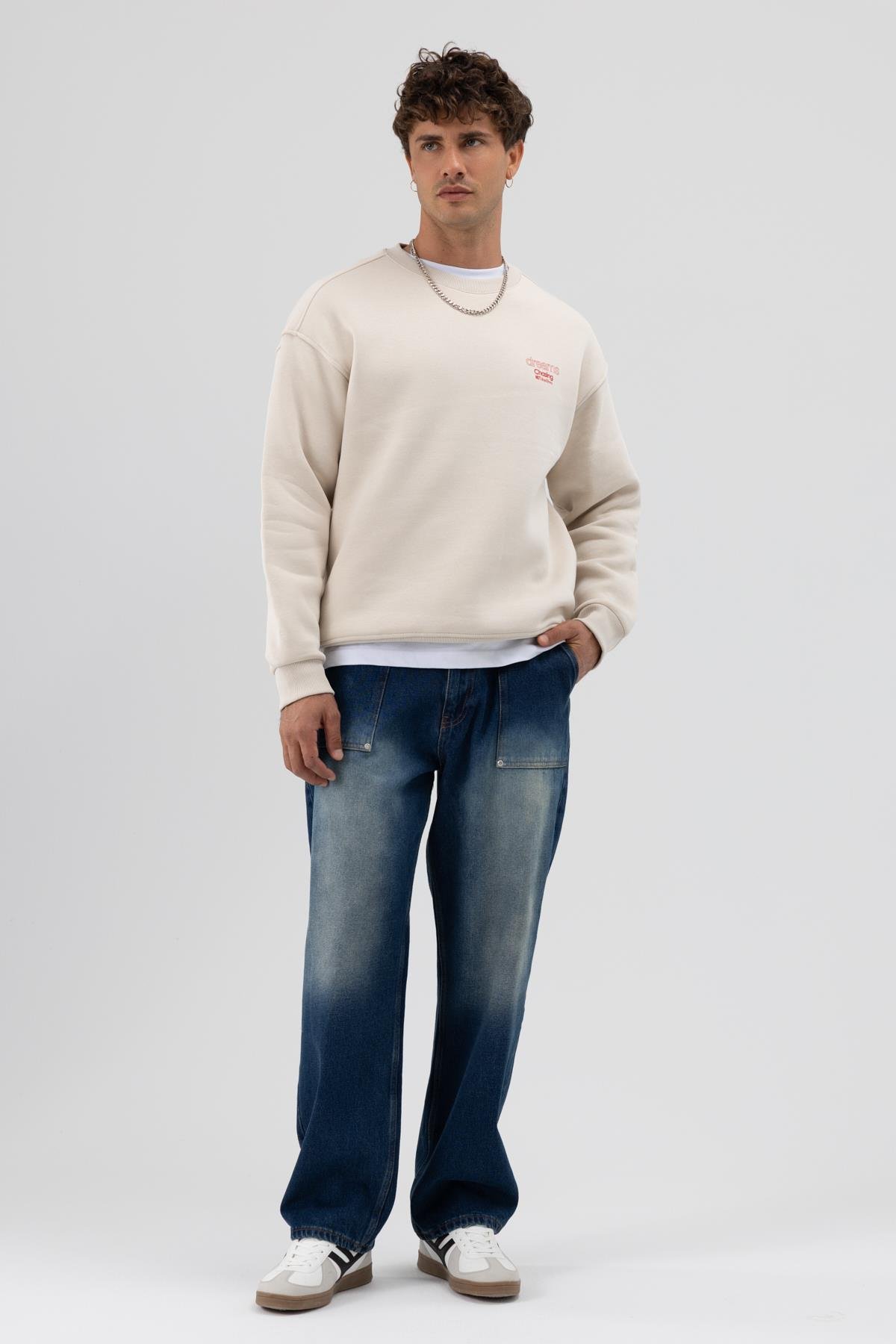 Oversize Bisiklet Yaka Baskılı Sweatshirt Taş (V70-95)
