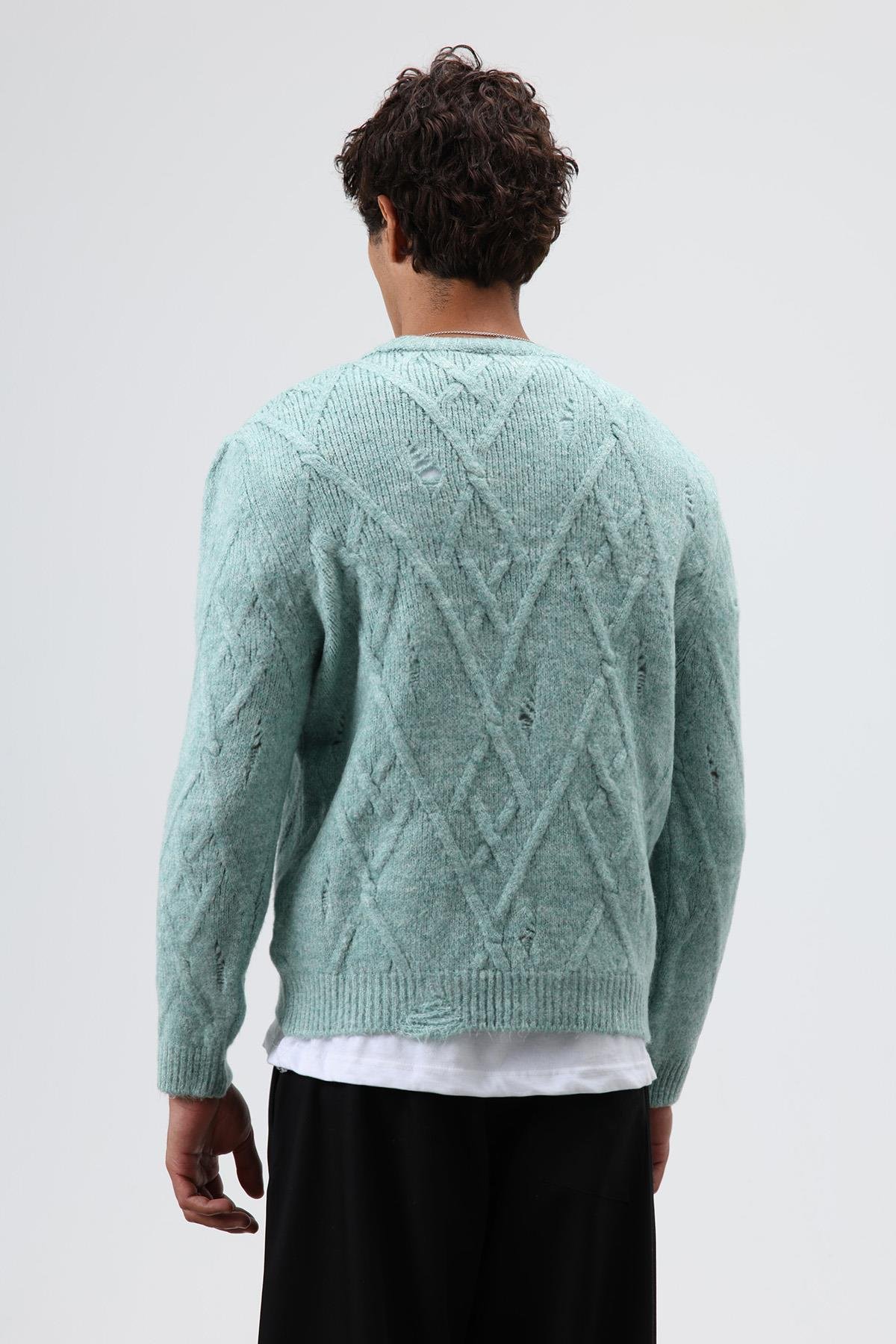 Oversize Desenli Triko Kazak Mint (V60-23)