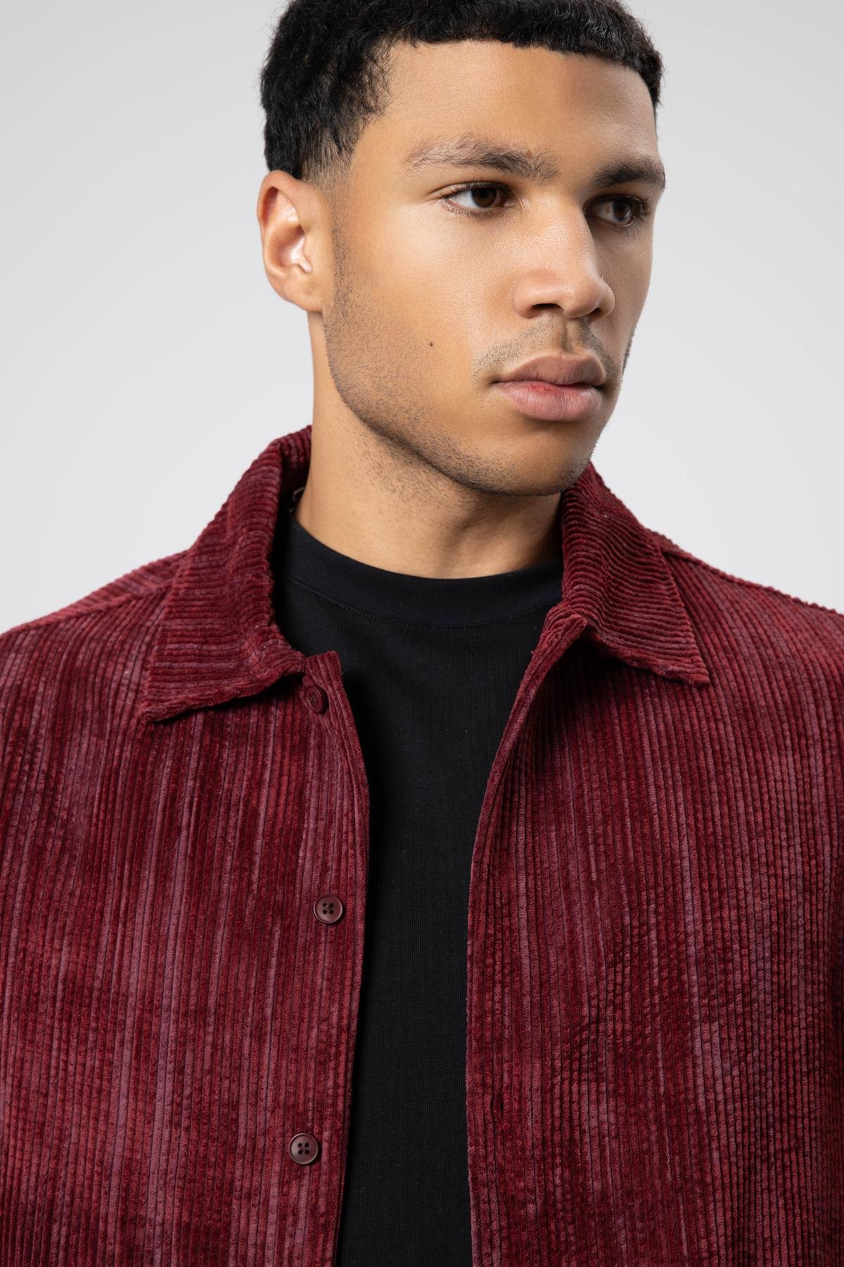 Oversize Dokulu Gömlek Bordo (V40-78)