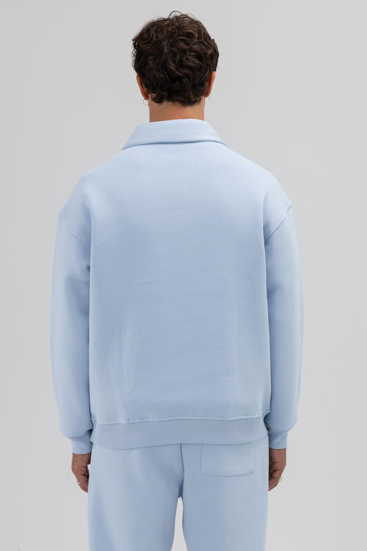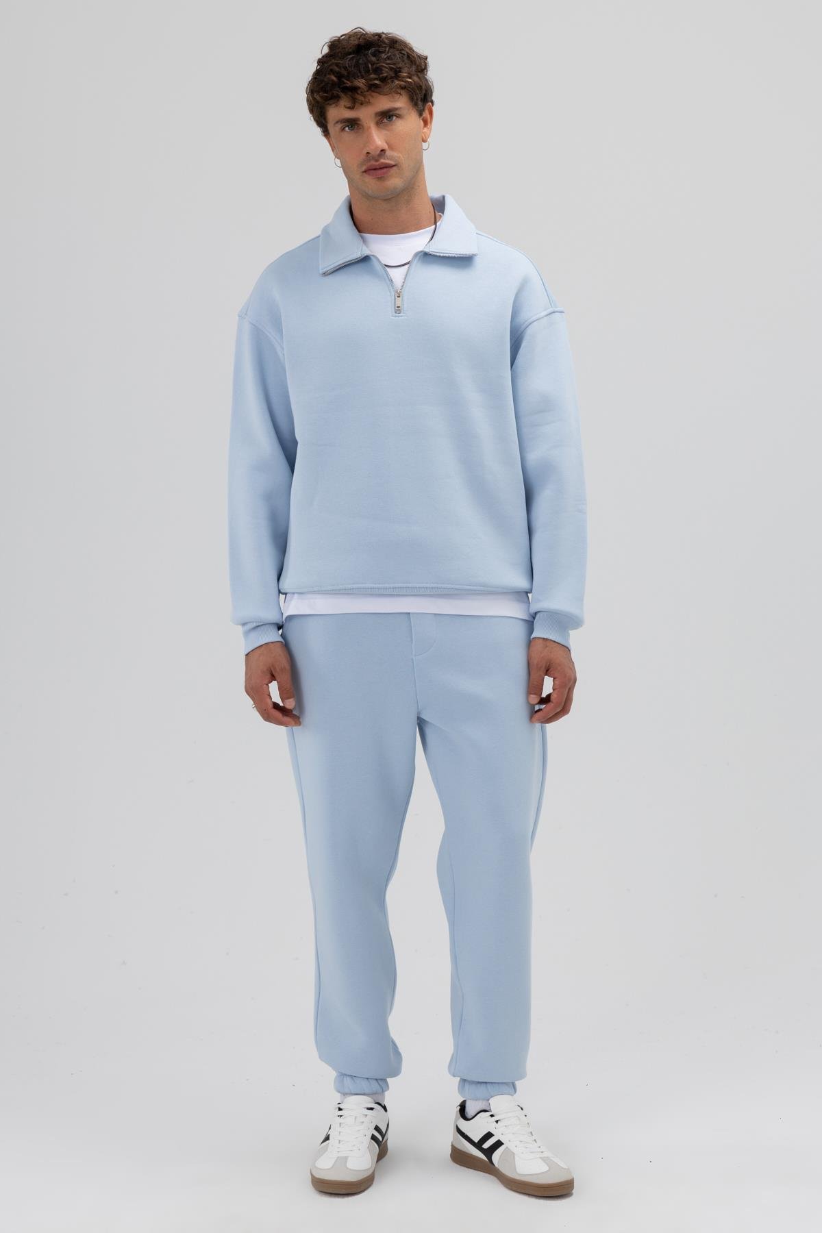 Oversize Fermuarlı Dik Yaka Sweatshirt Bebe Mavi (V70-82)