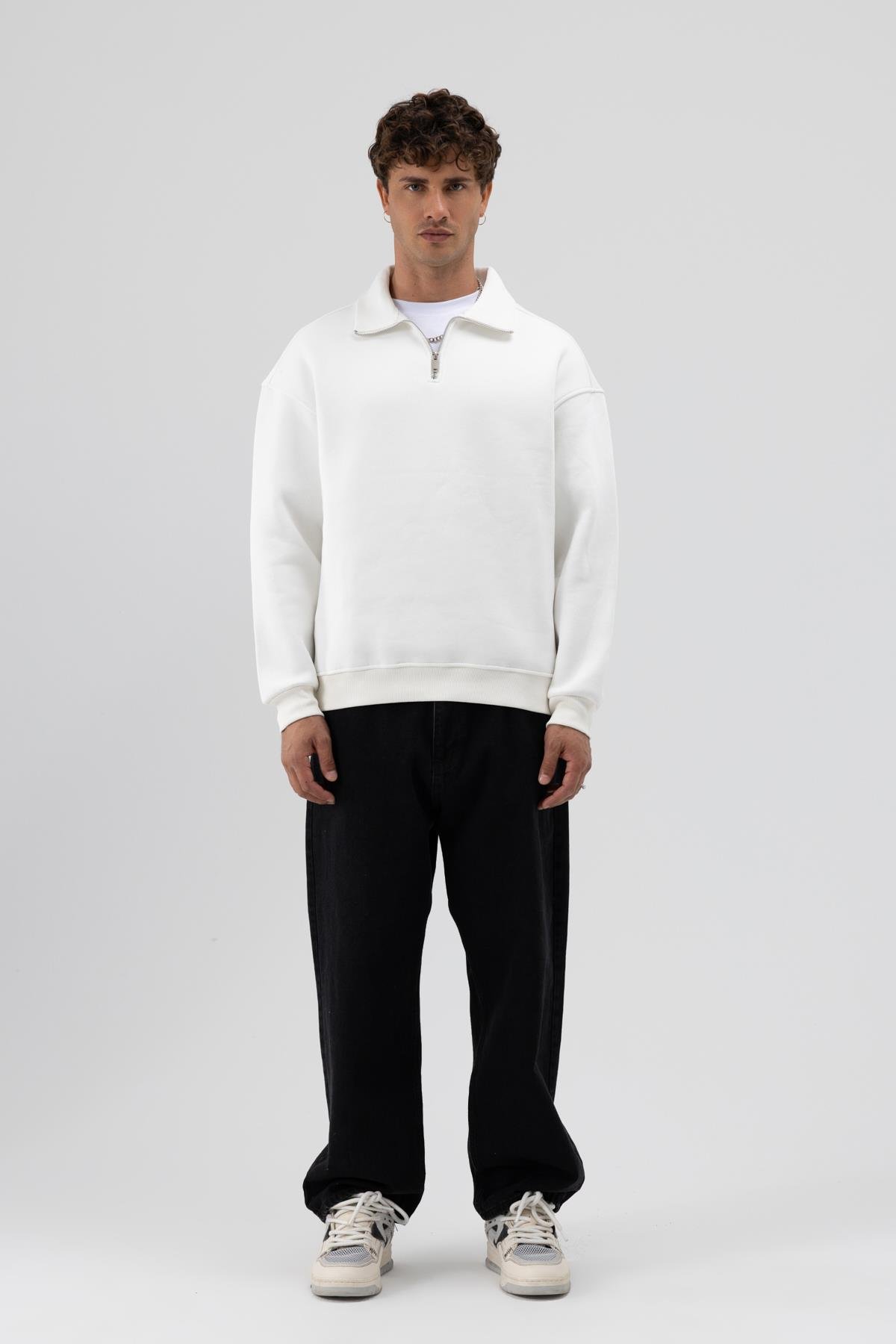 Oversize Fermuarlı Dik Yaka Sweatshirt Ekru (V70-82)