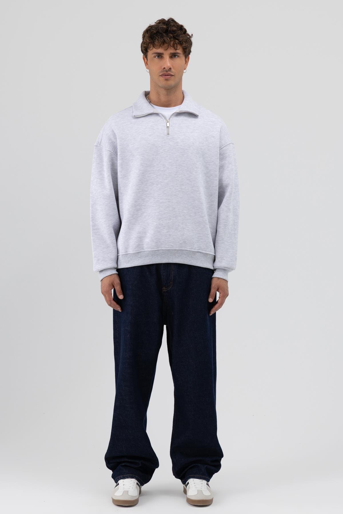 Oversize Fermuarlı Dik Yaka Sweatshirt Karmelanj (V70-82)