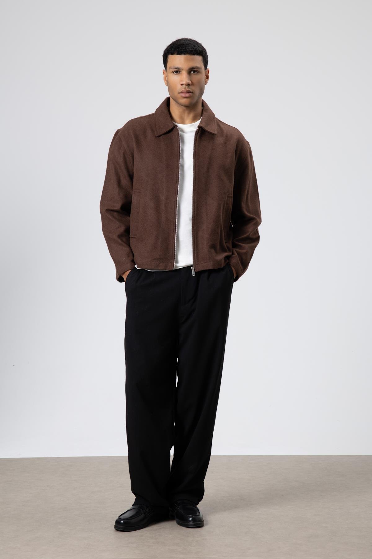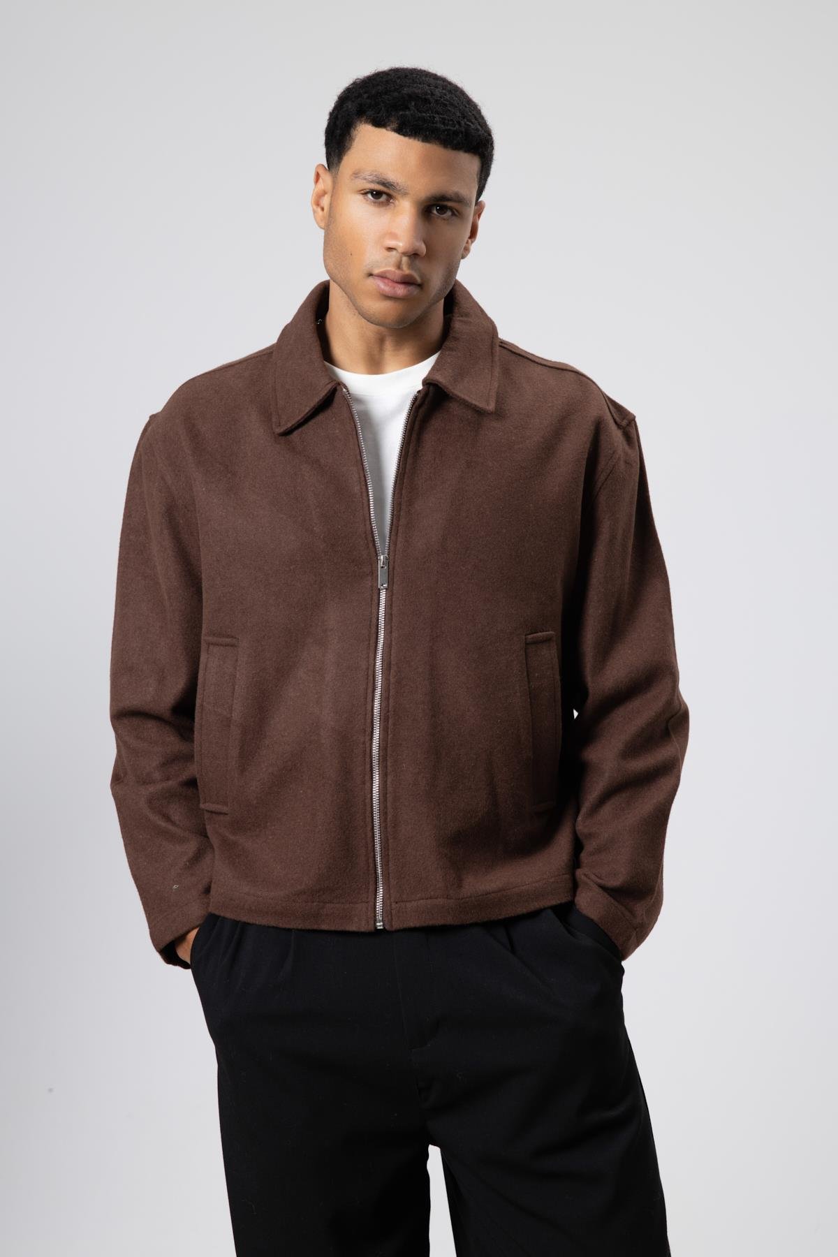 Oversize Fermuarlı Kaşe Ceket Kahve (V50-12)