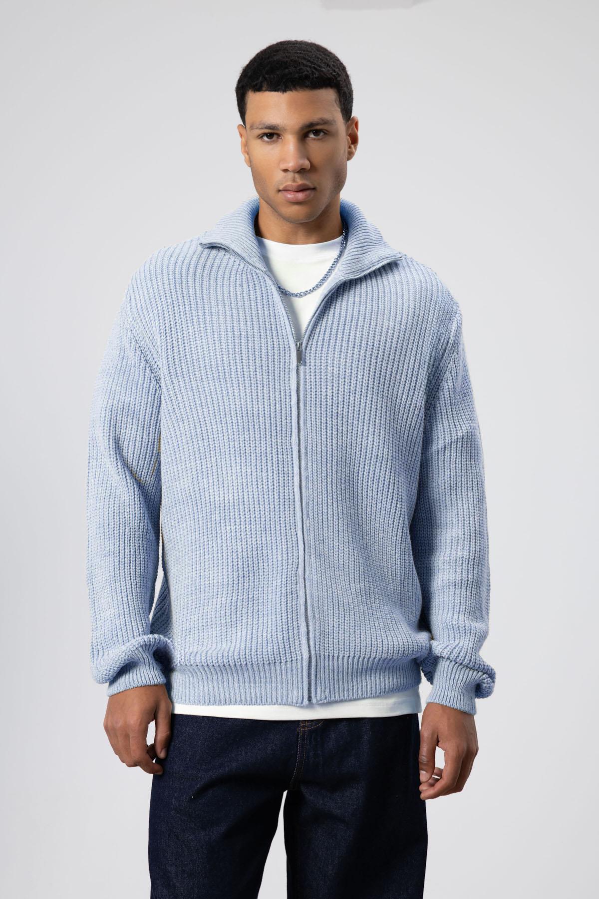Oversize Fermuarlı Triko Hırka Bebe Mavi (V60-14)