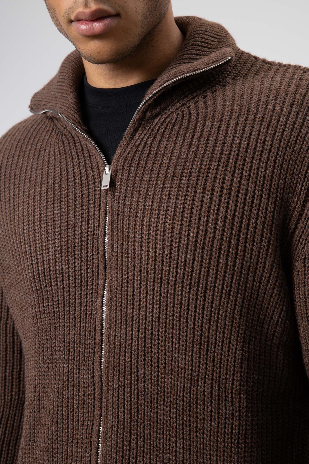 Oversize Fermuarlı Triko Hırka Vizon (V60-14)