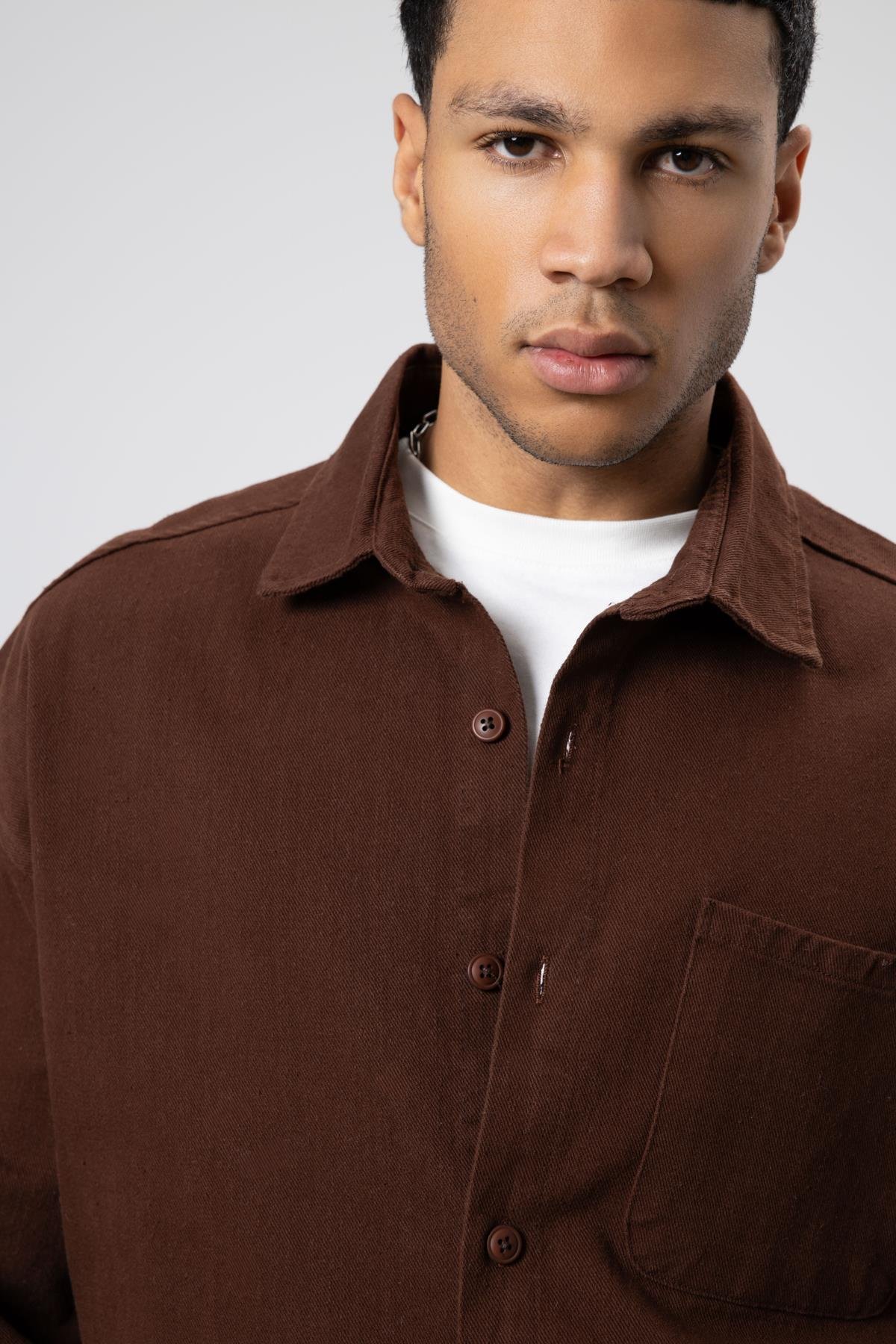 Oversize Gabardin Gömlek Ceket Kahve (V40-79)