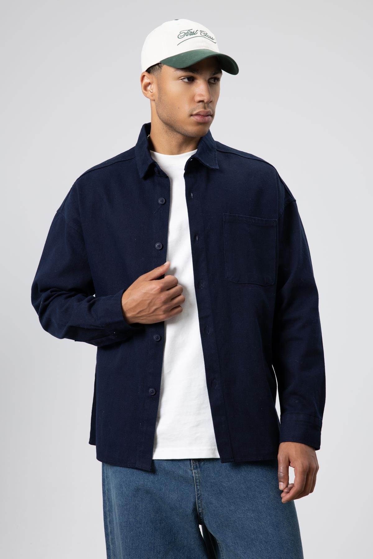 Oversize Gabardin Gömlek Ceket Lacivert (V40-79)