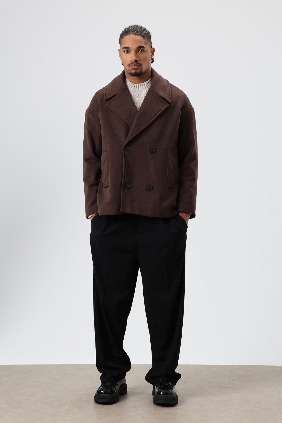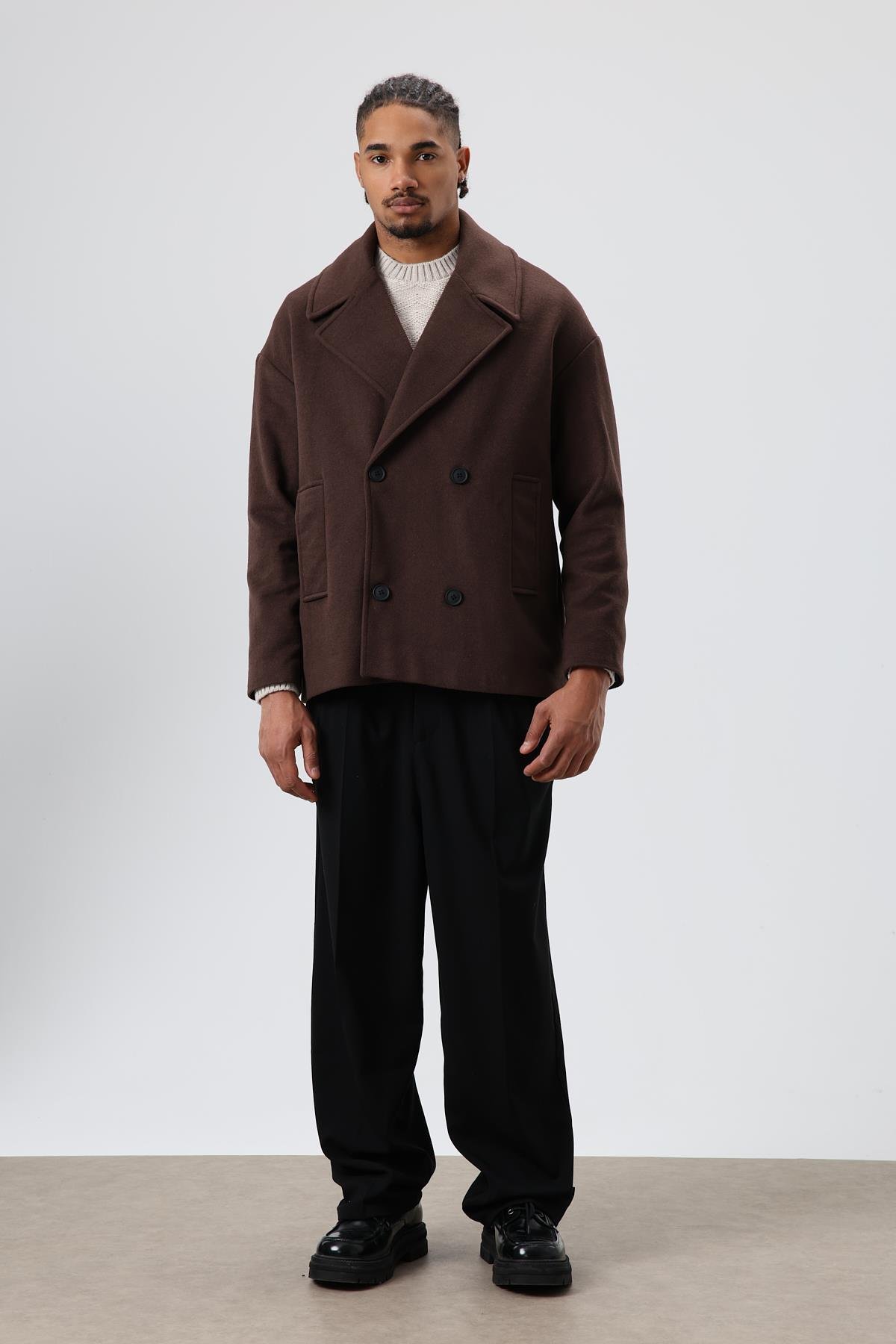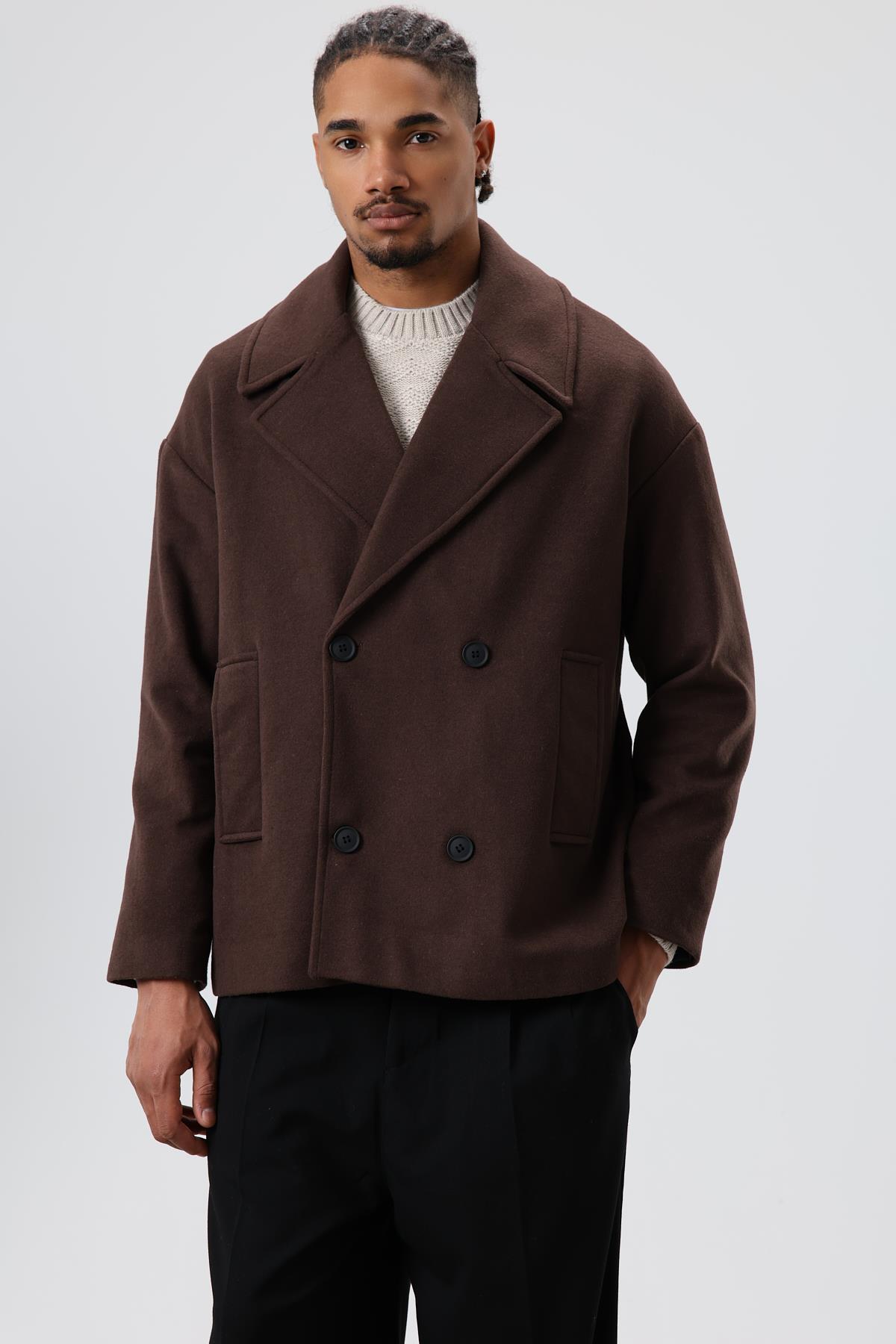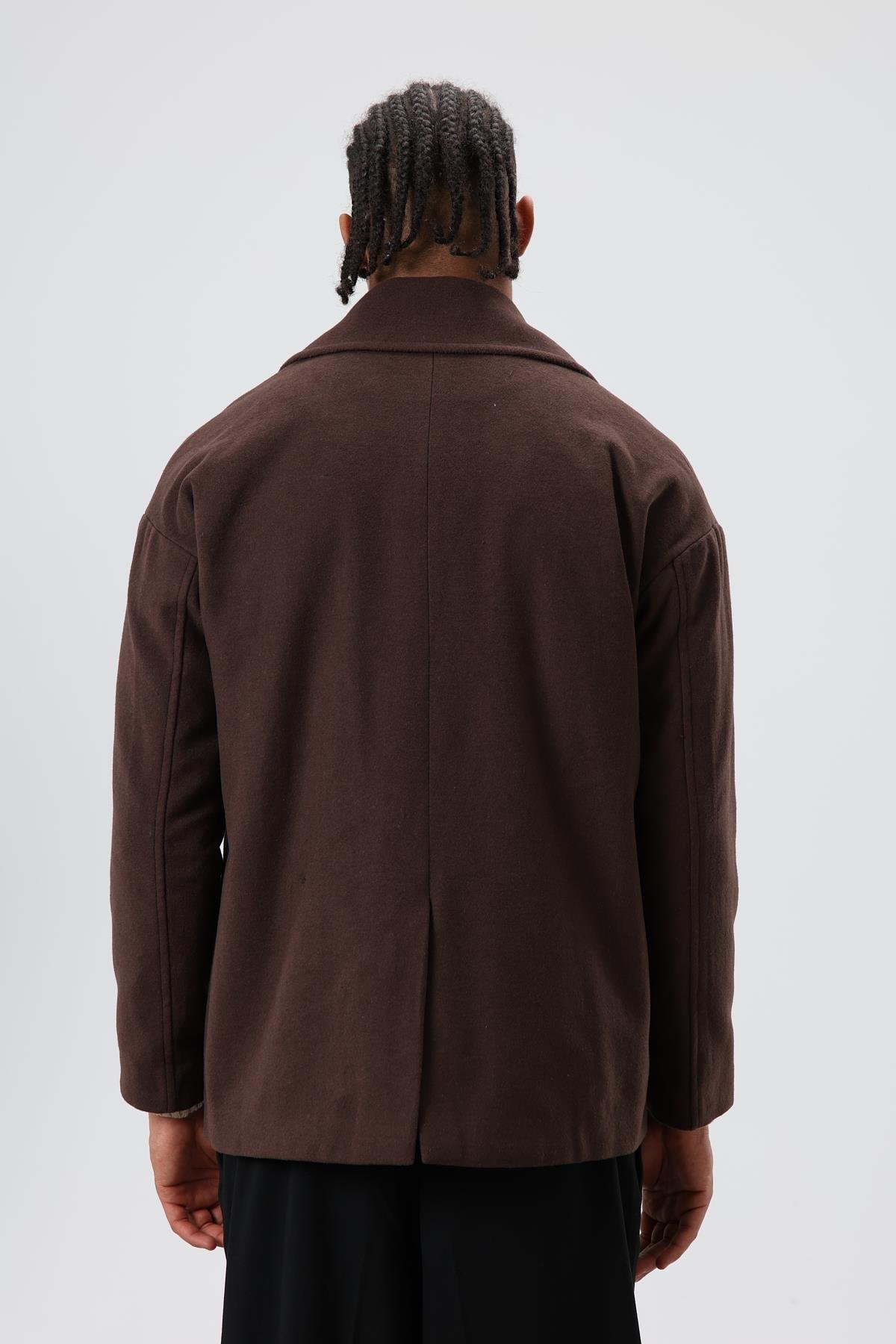 Oversize Kruvaze Kısa Kaşe Ceket Kahve (V50-13)