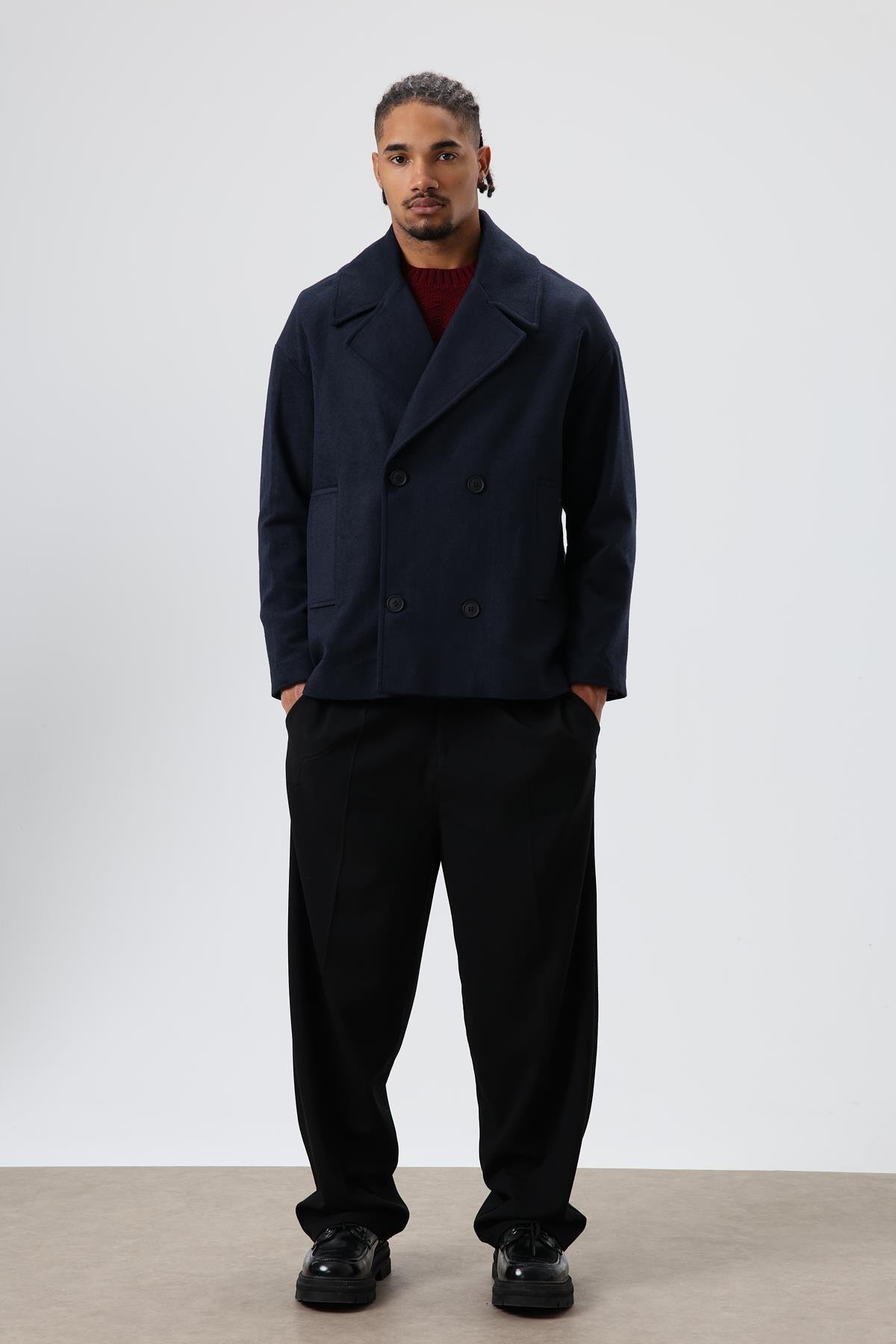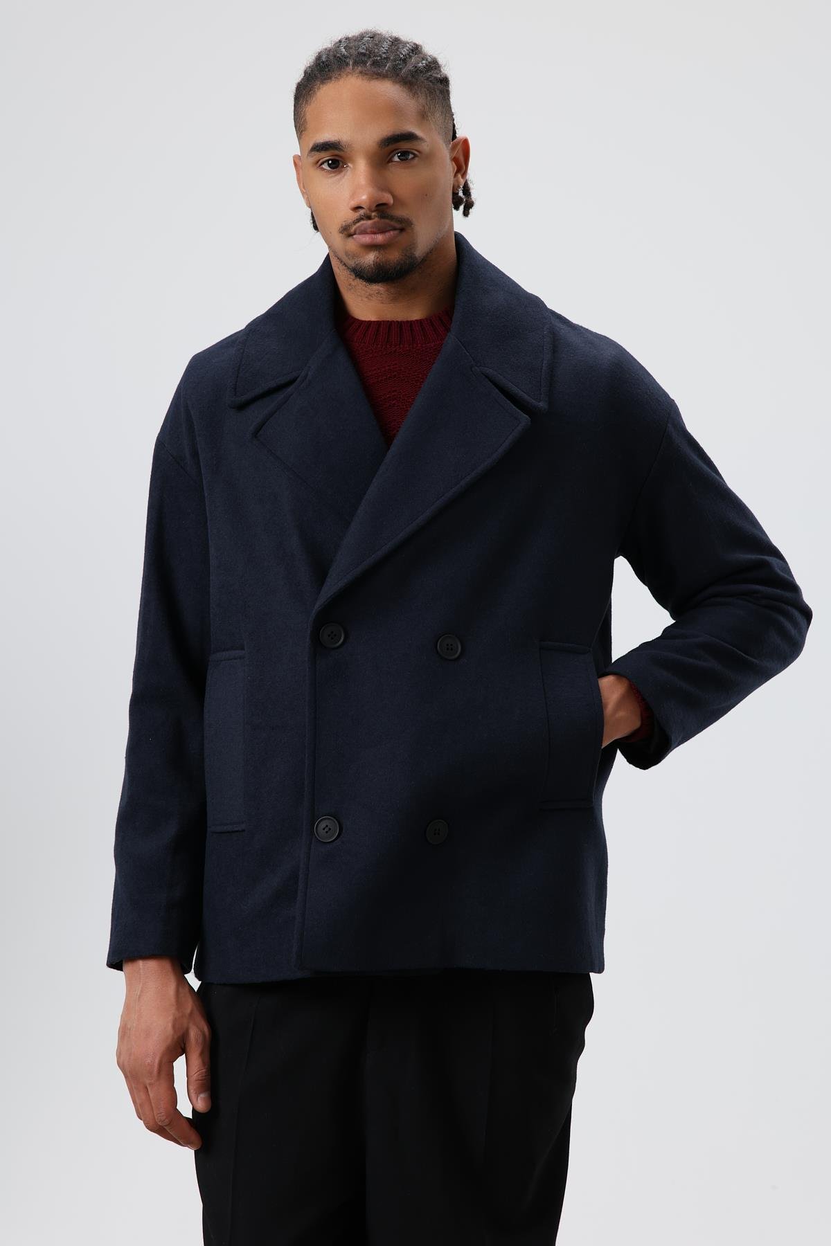 Oversize Kruvaze Kısa Kaşe Ceket Lacivert (V50-13)