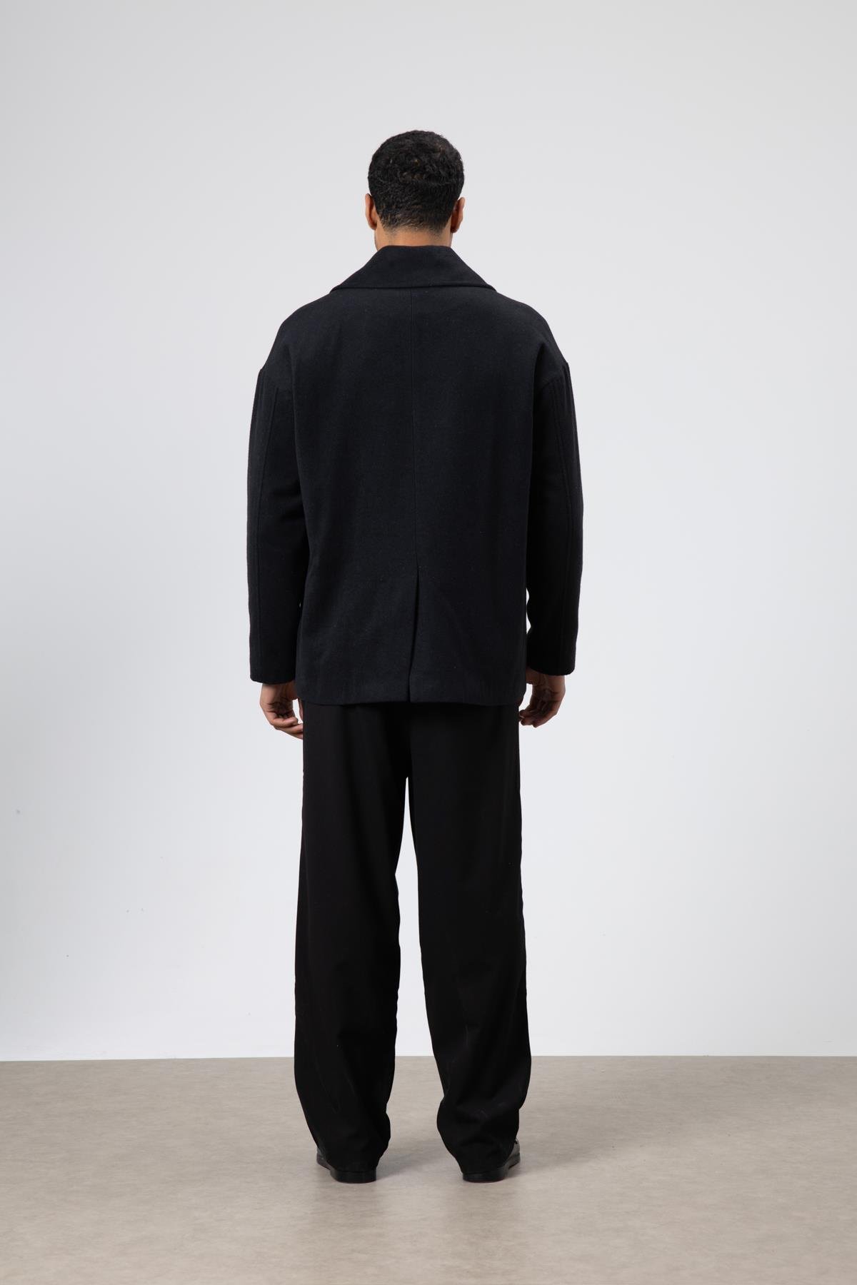 Oversize Kruvaze Kısa Kaşe Ceket Siyah (V50-13)