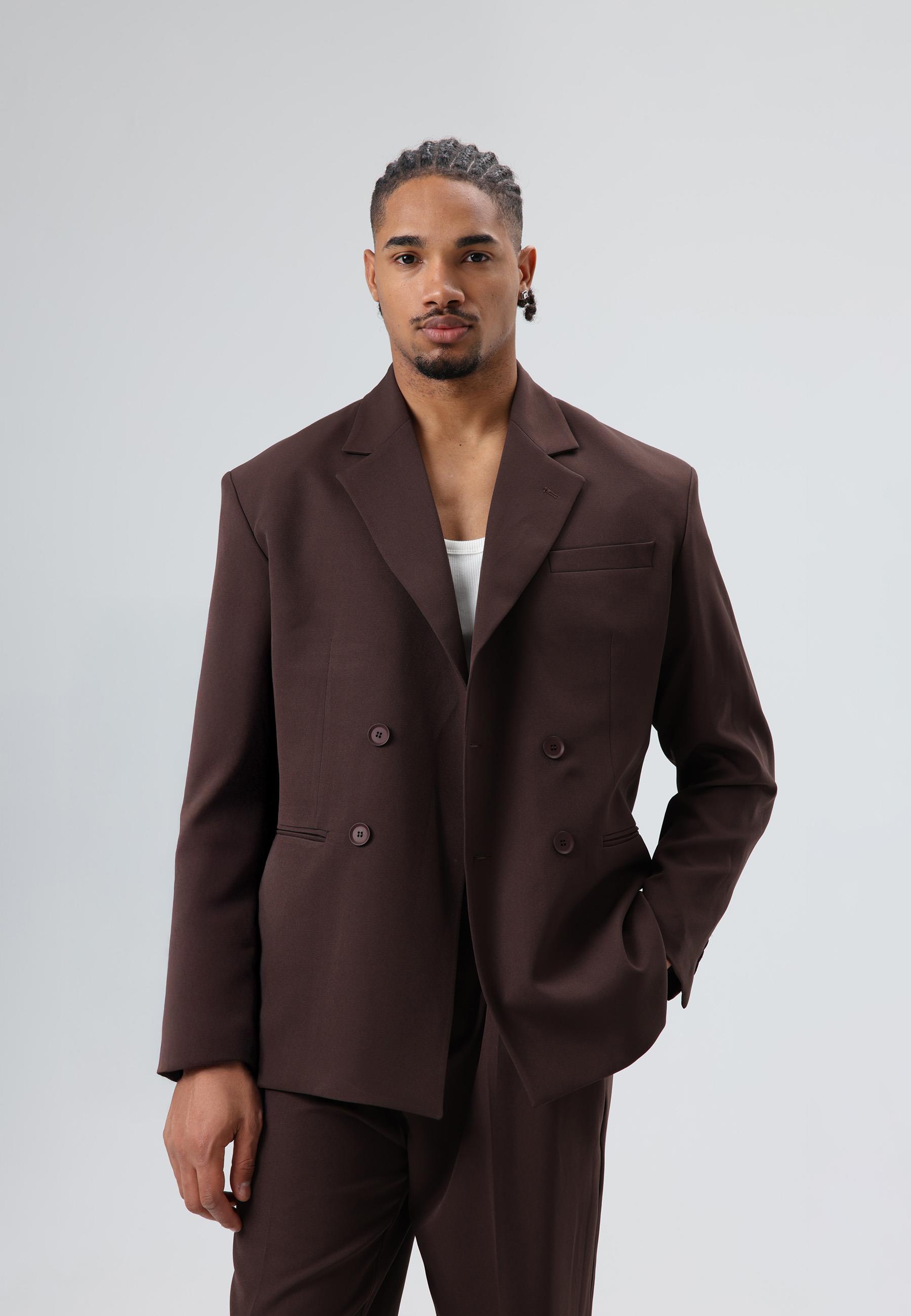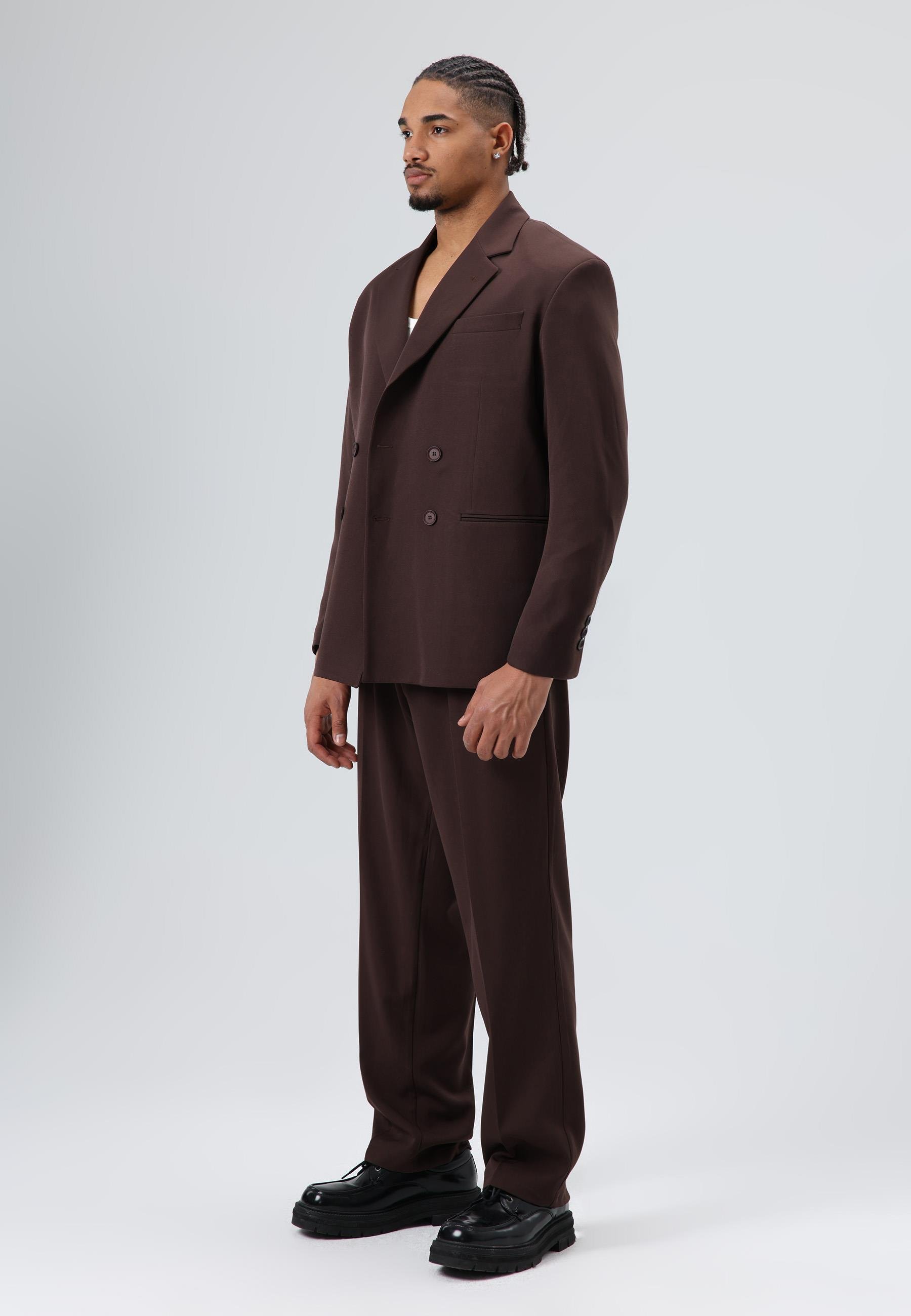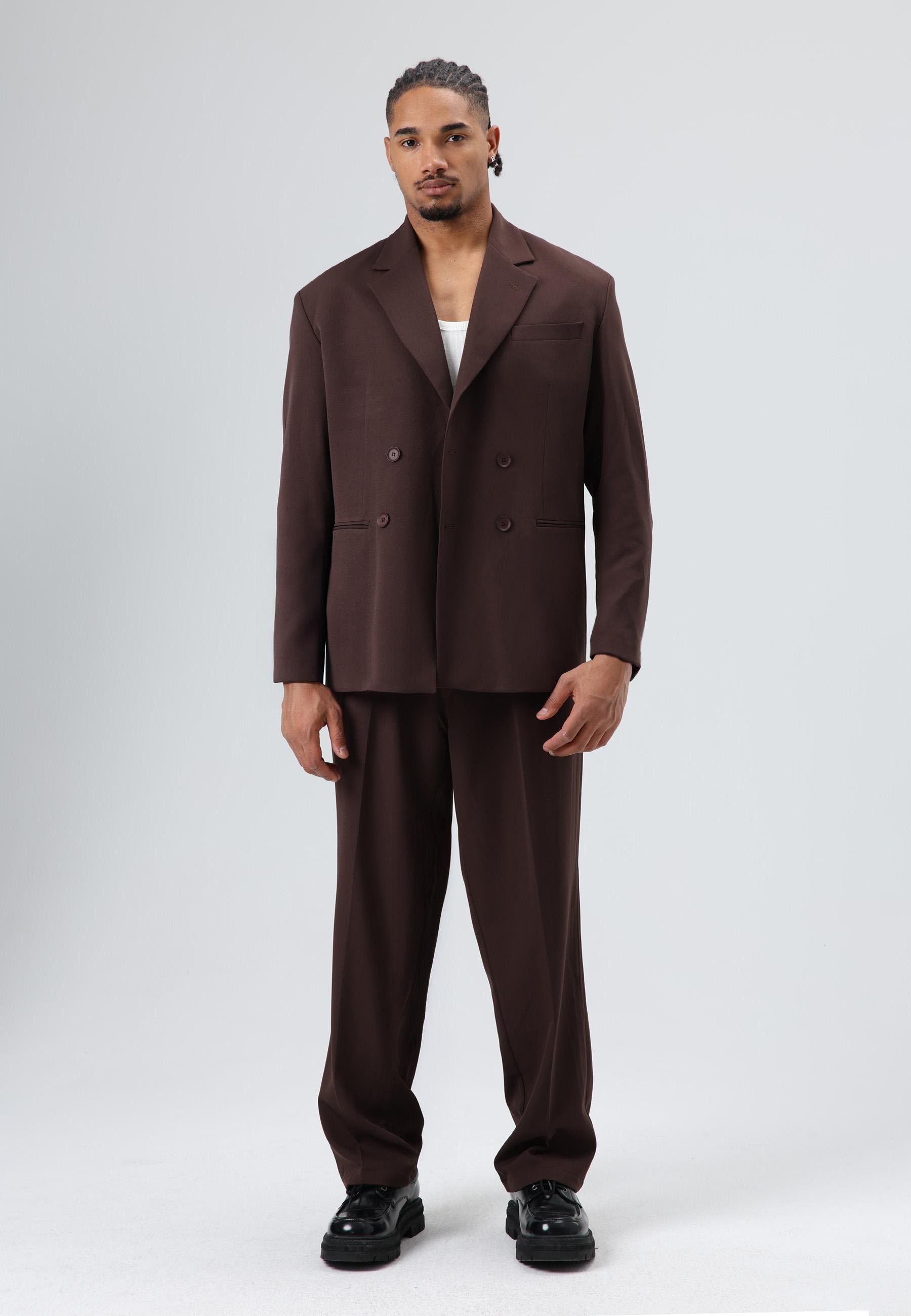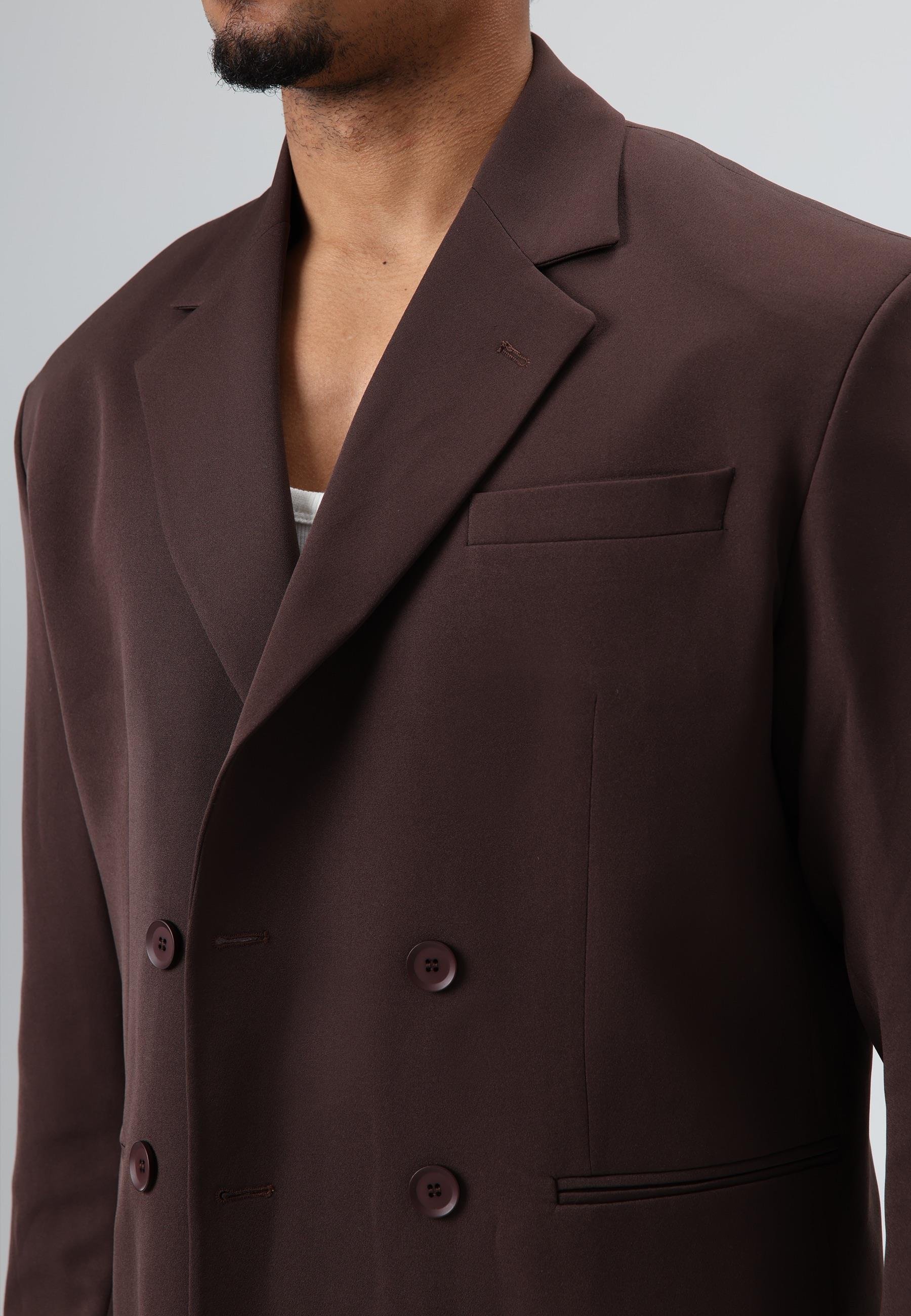 Oversize Kruvaze Takım Elbise Koyu Kahve (V90-20)