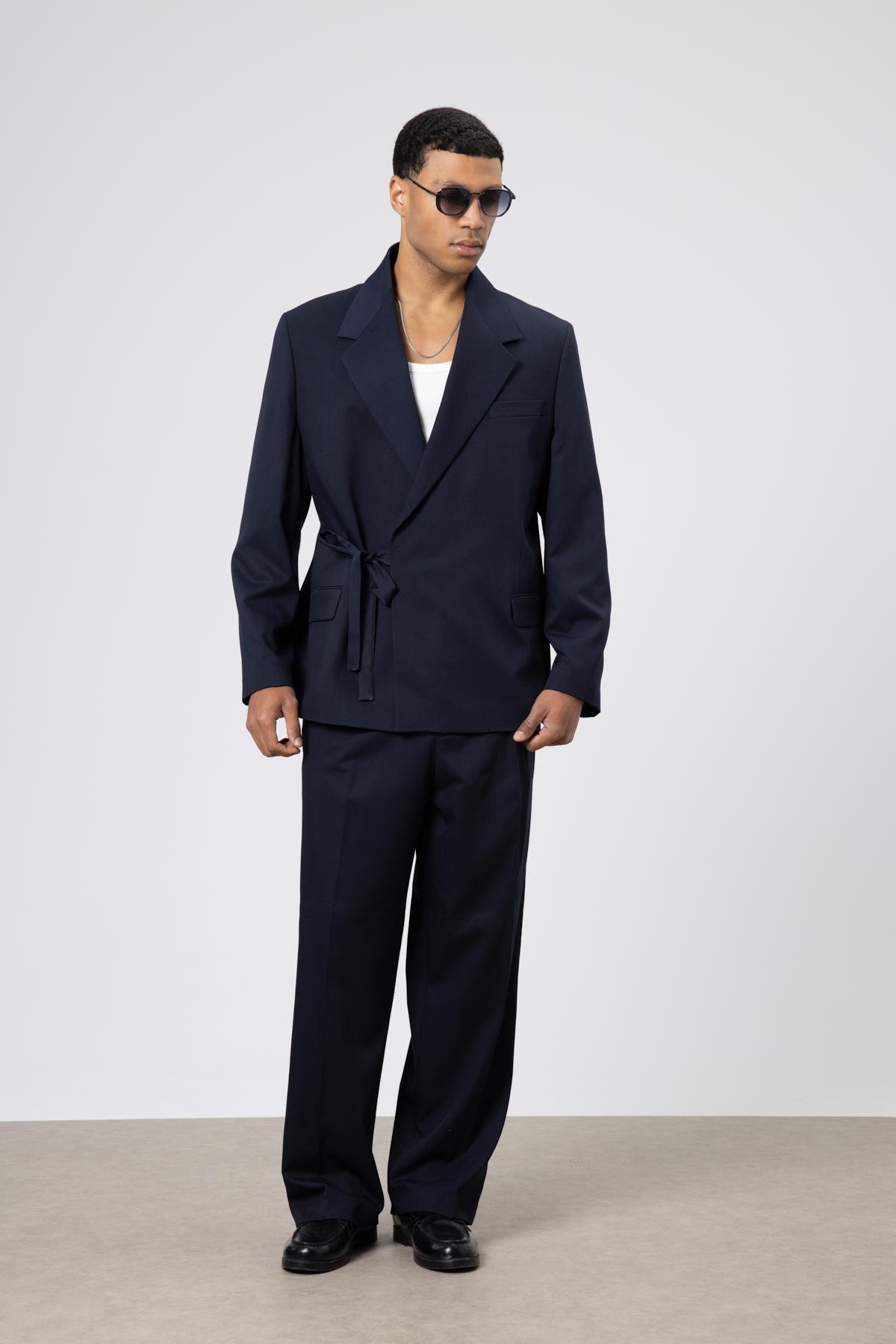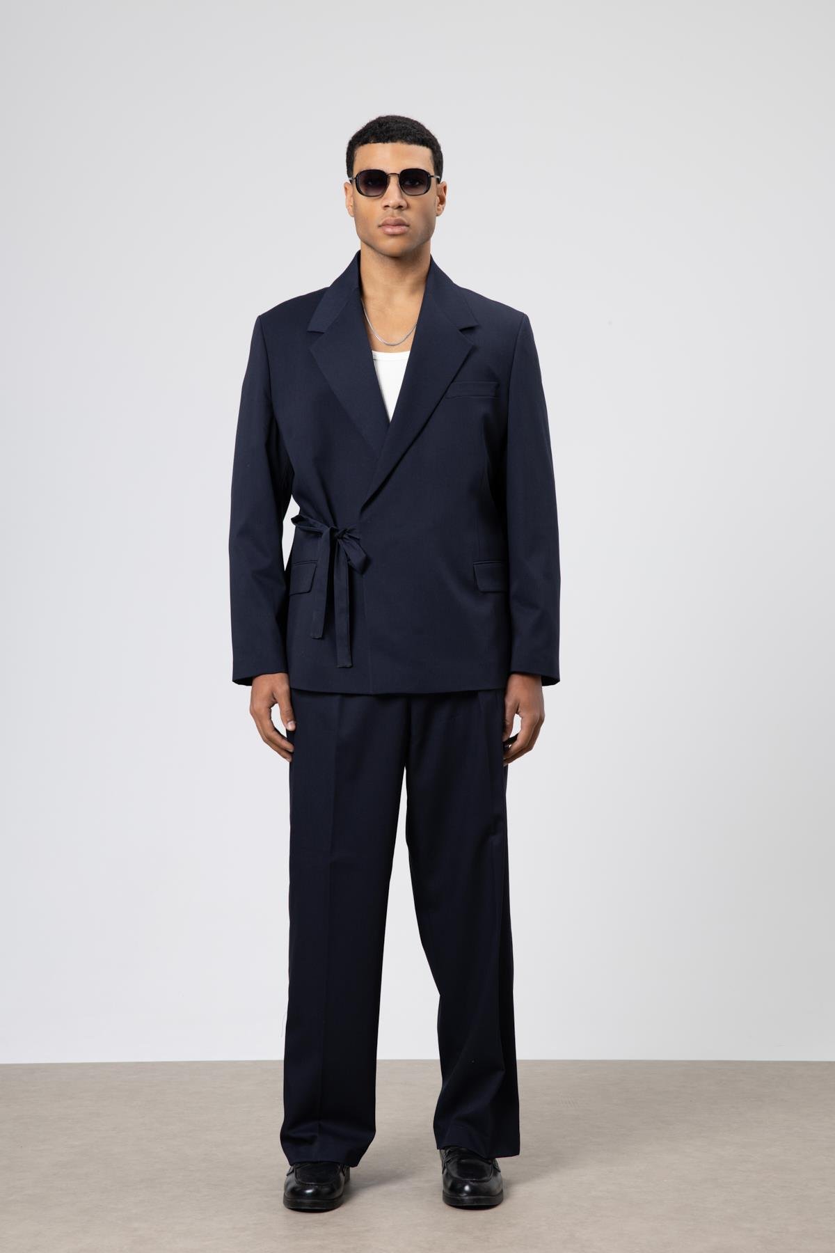 Oversize Kuşaklı Takım Elbise Lacivert (V90-15)