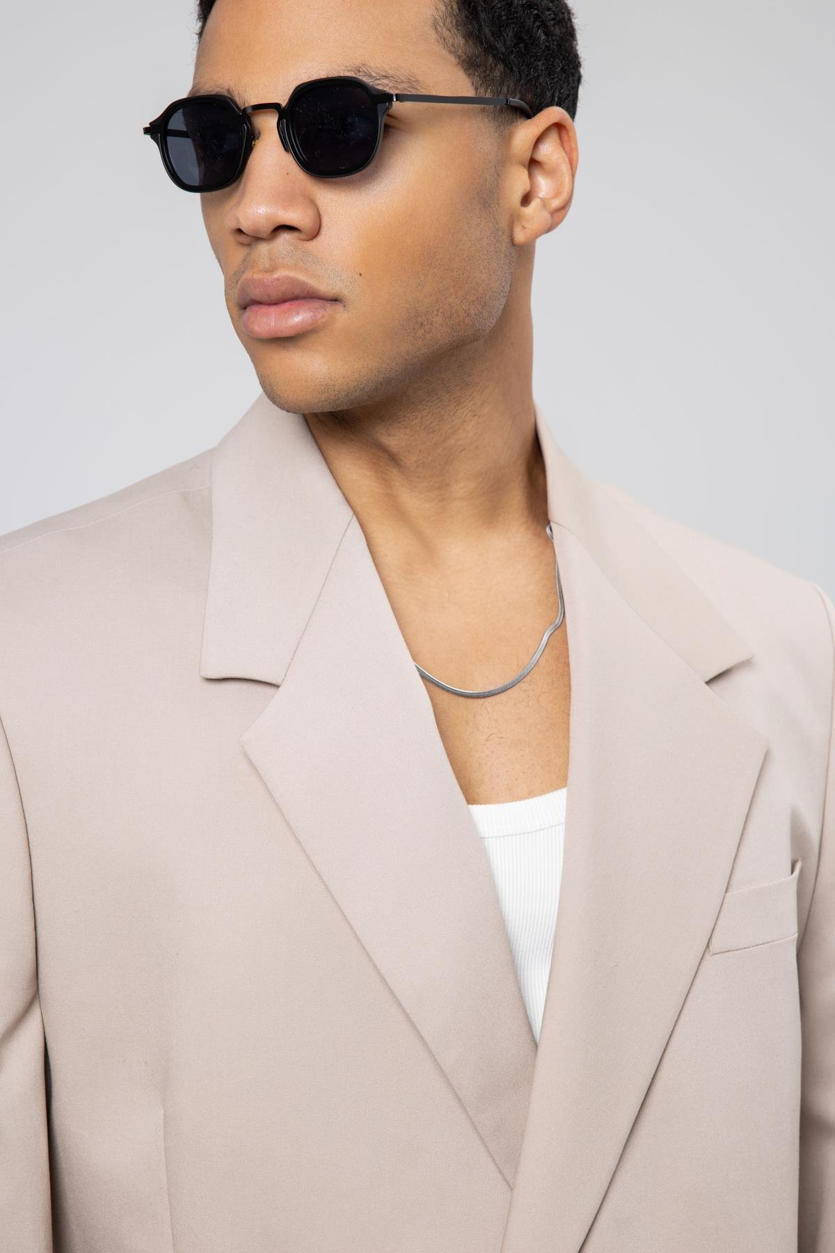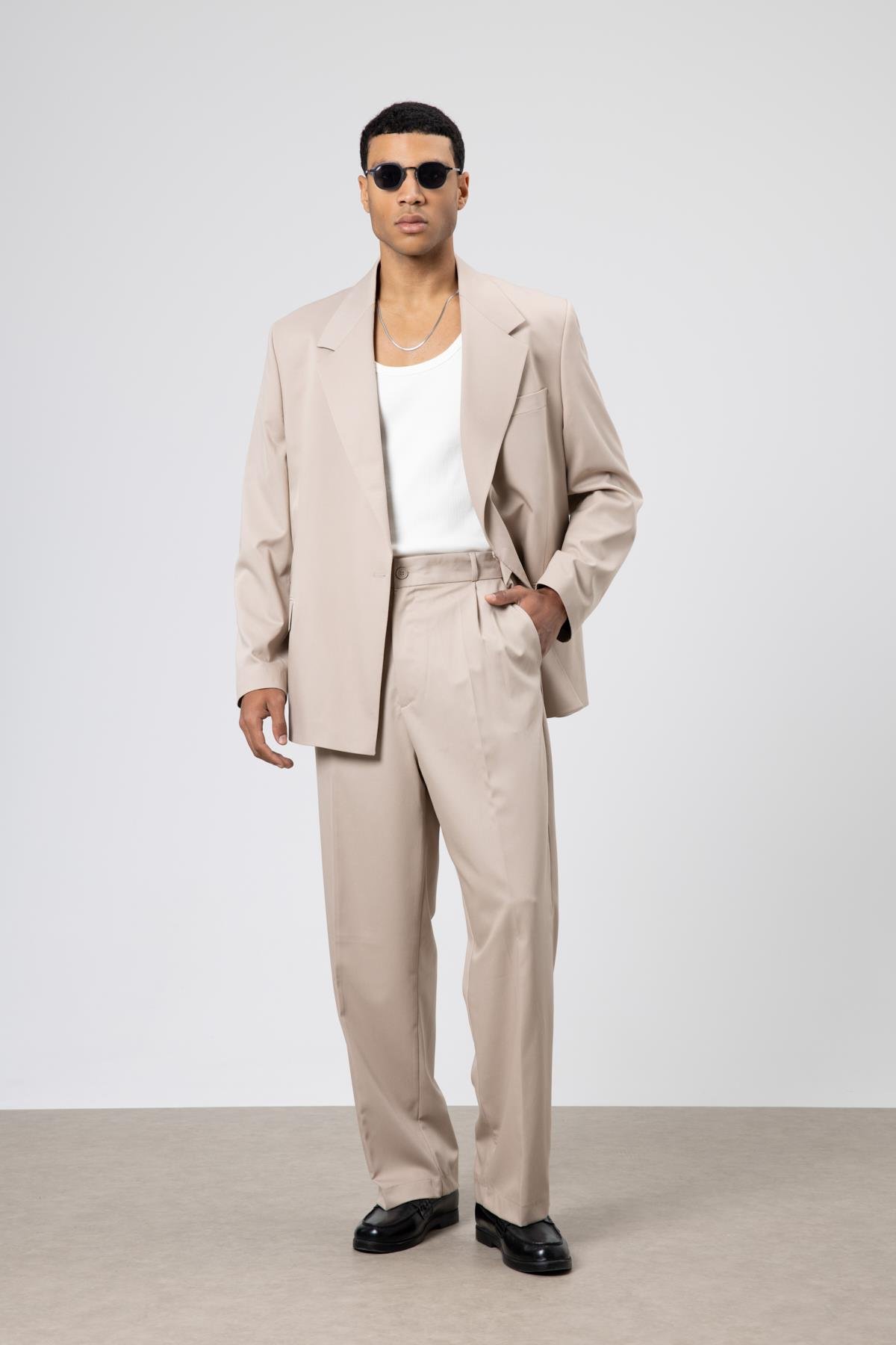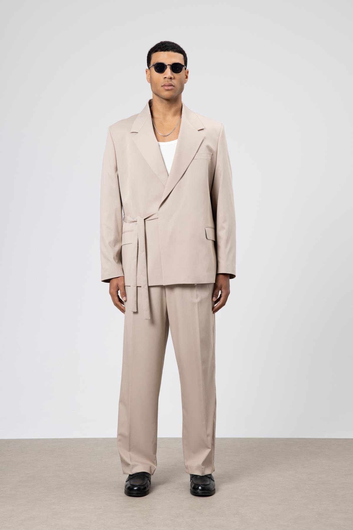 Oversize Kuşaklı Takım Elbise Taş (V90-15)