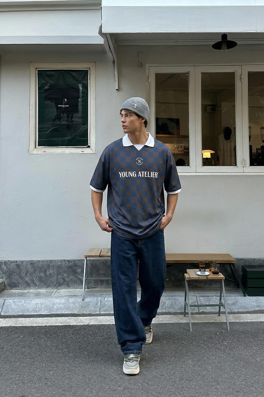Oversize Polo Yaka Forma Tişört KAHVE/İNDİGO (V70-47)