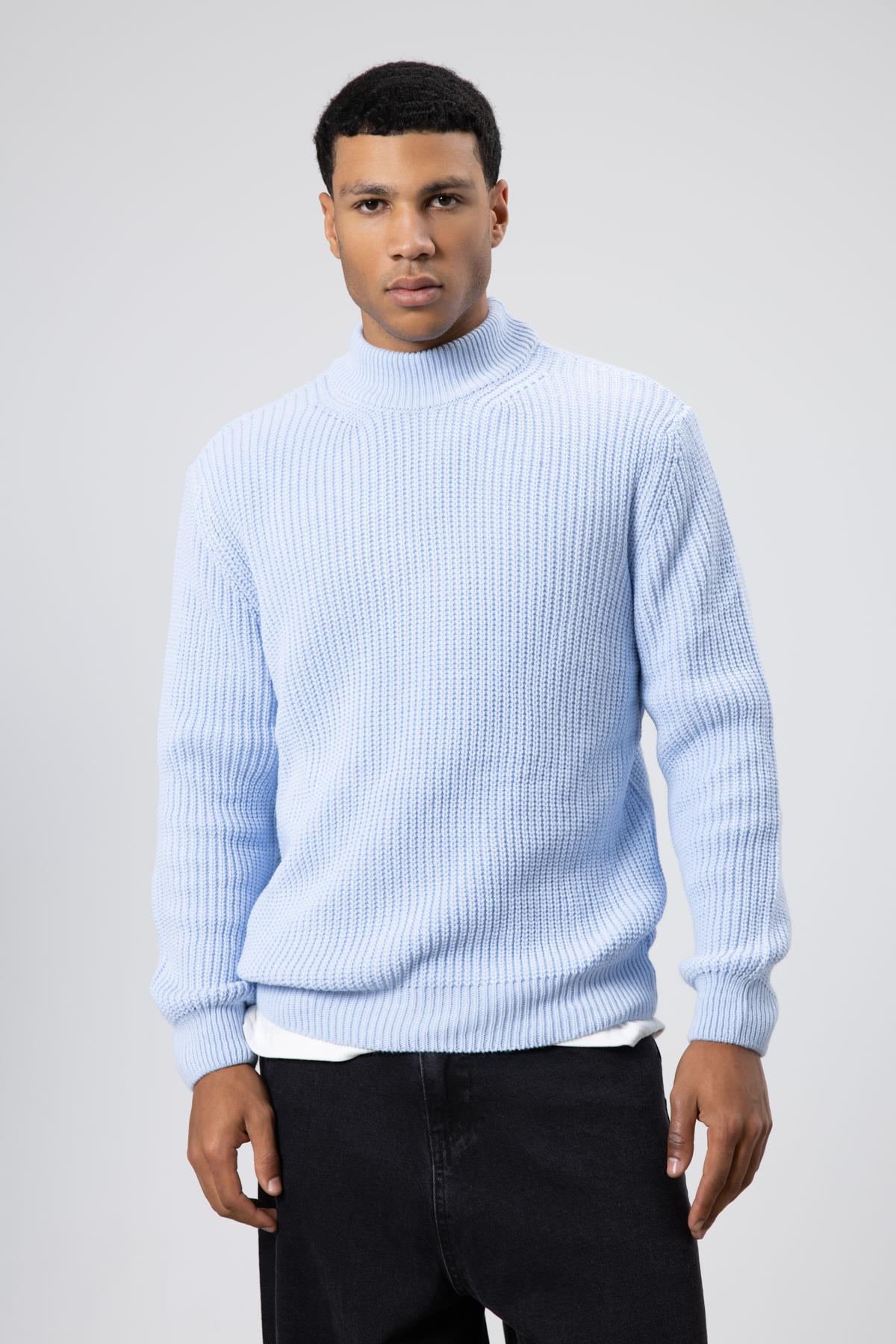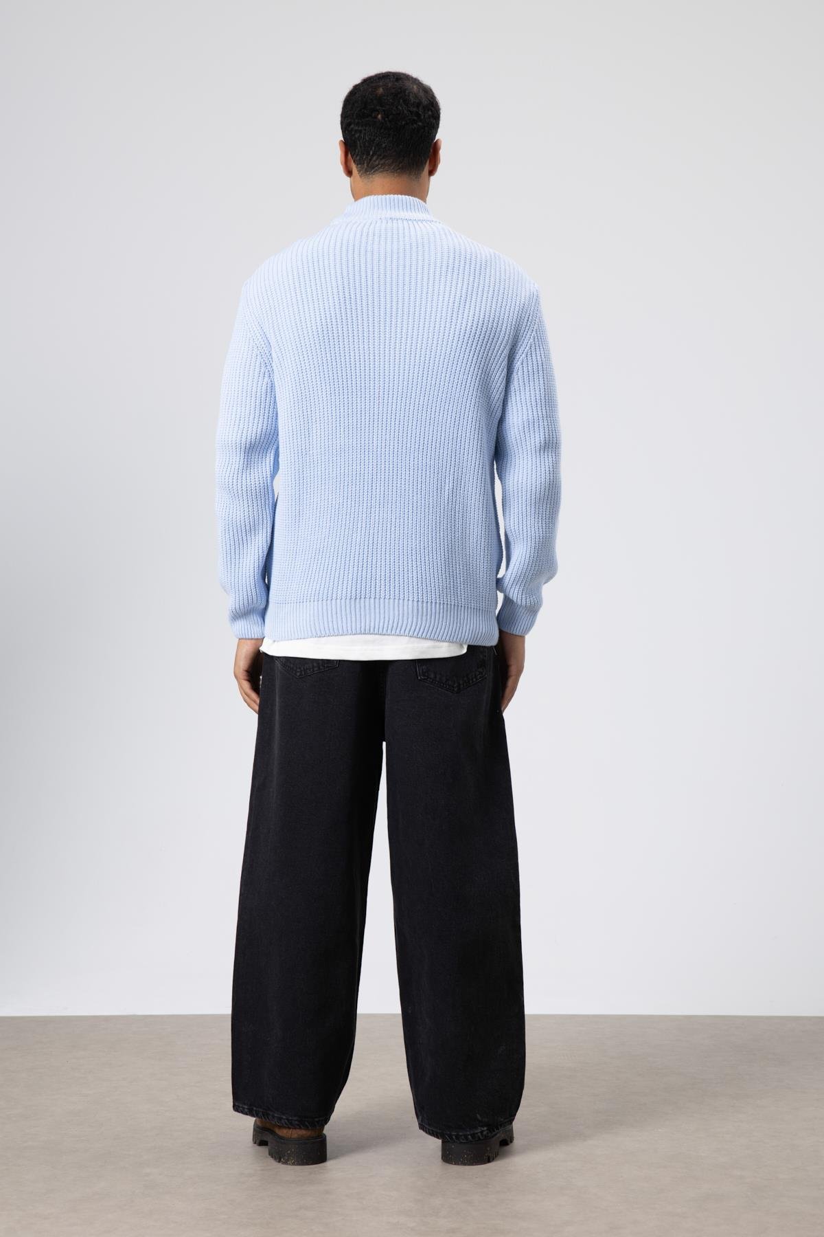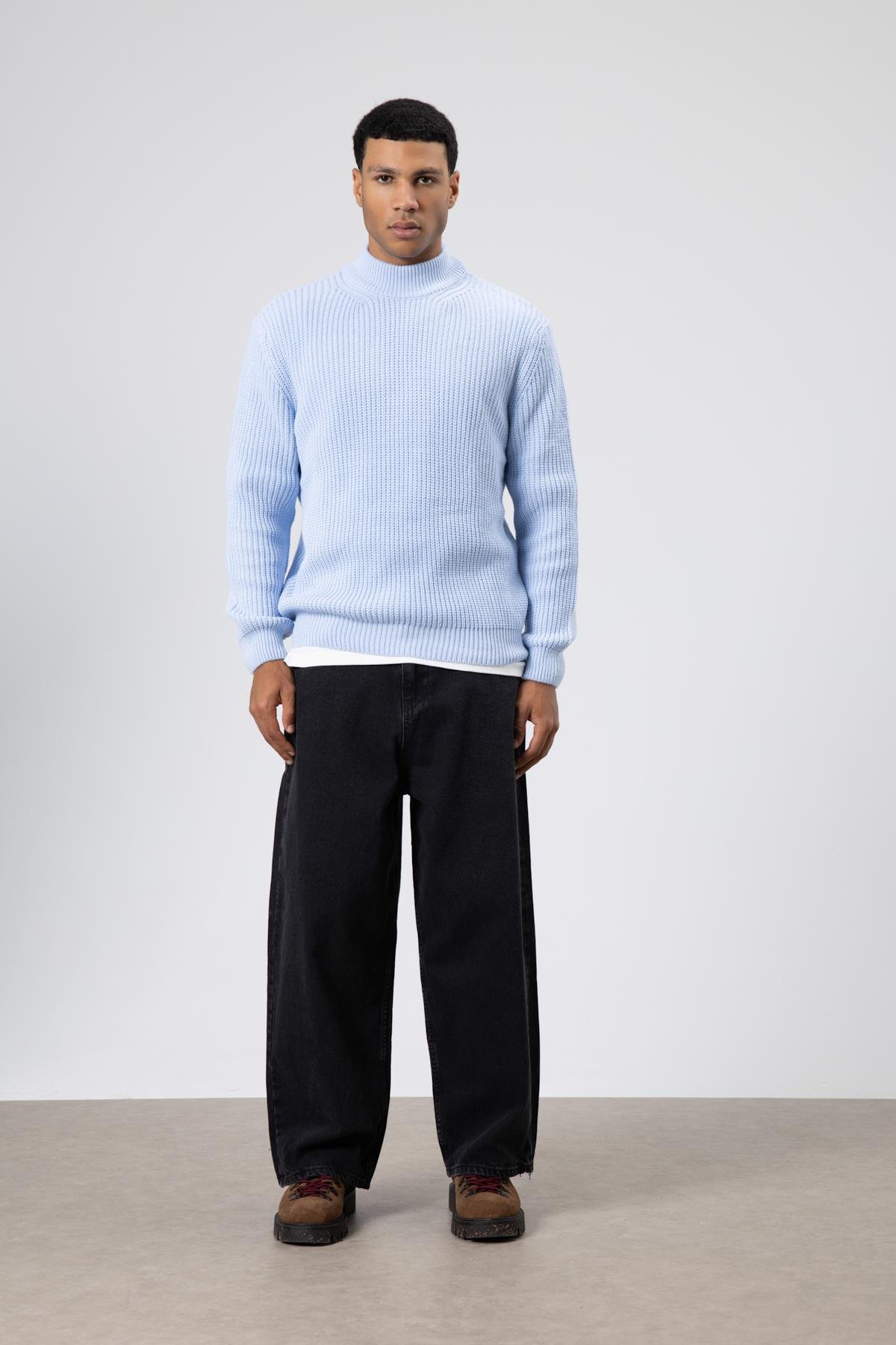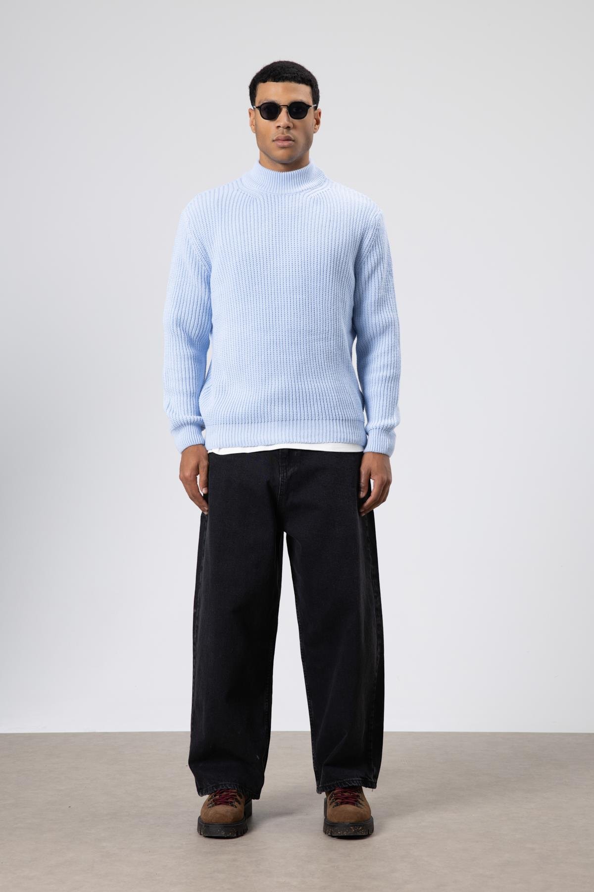 Oversize Triko Boğazlı Kazak Bebe Mavi (V60-13)
