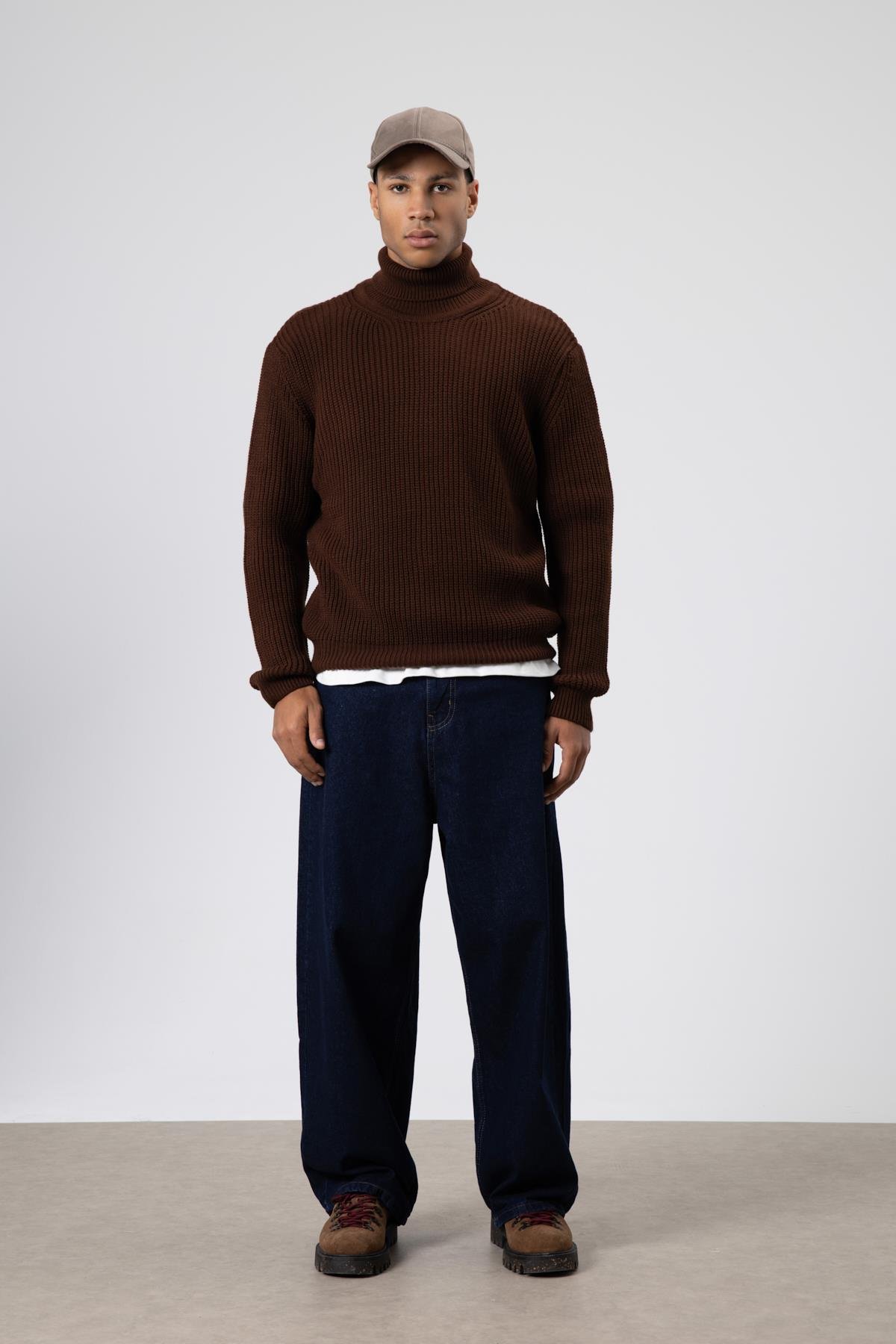 Oversize Triko Boğazlı Kazak Kahve (V60-13)