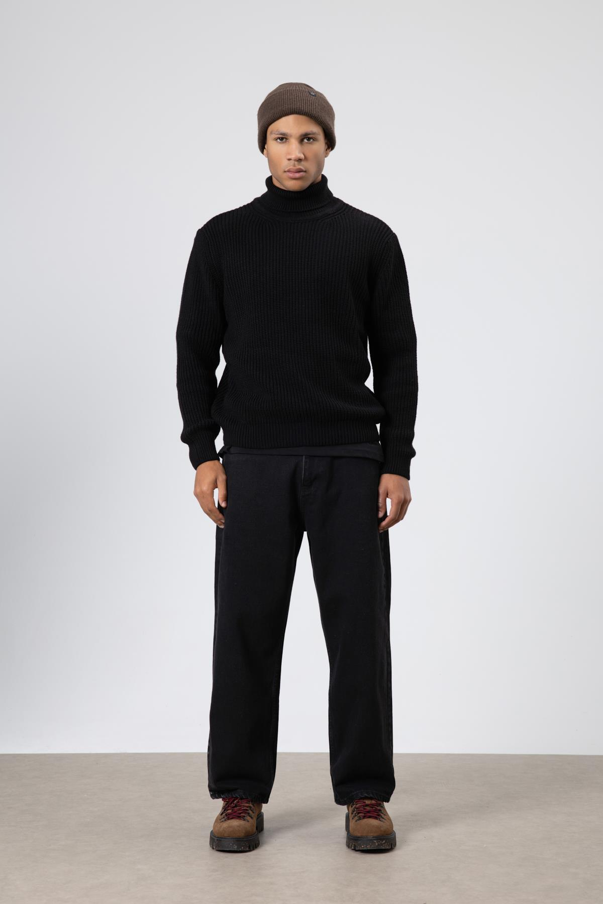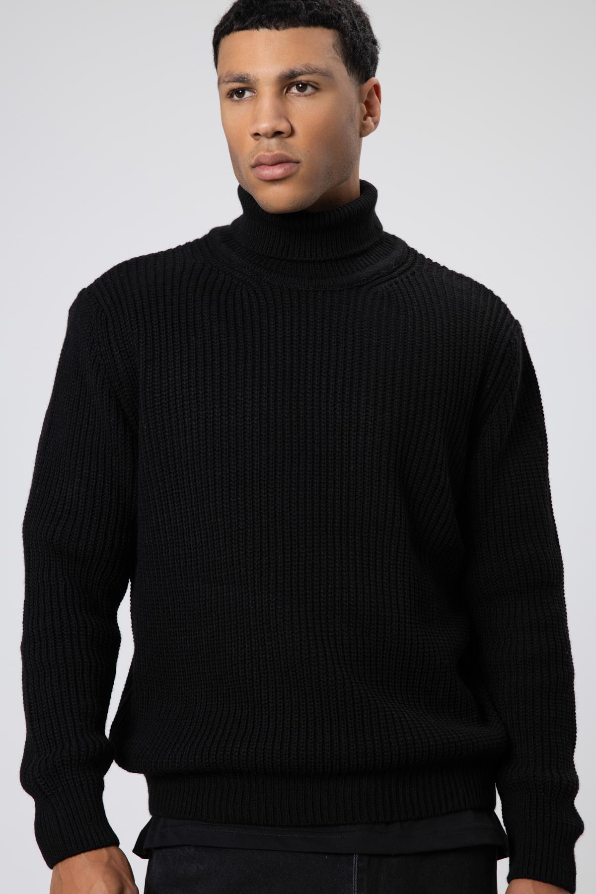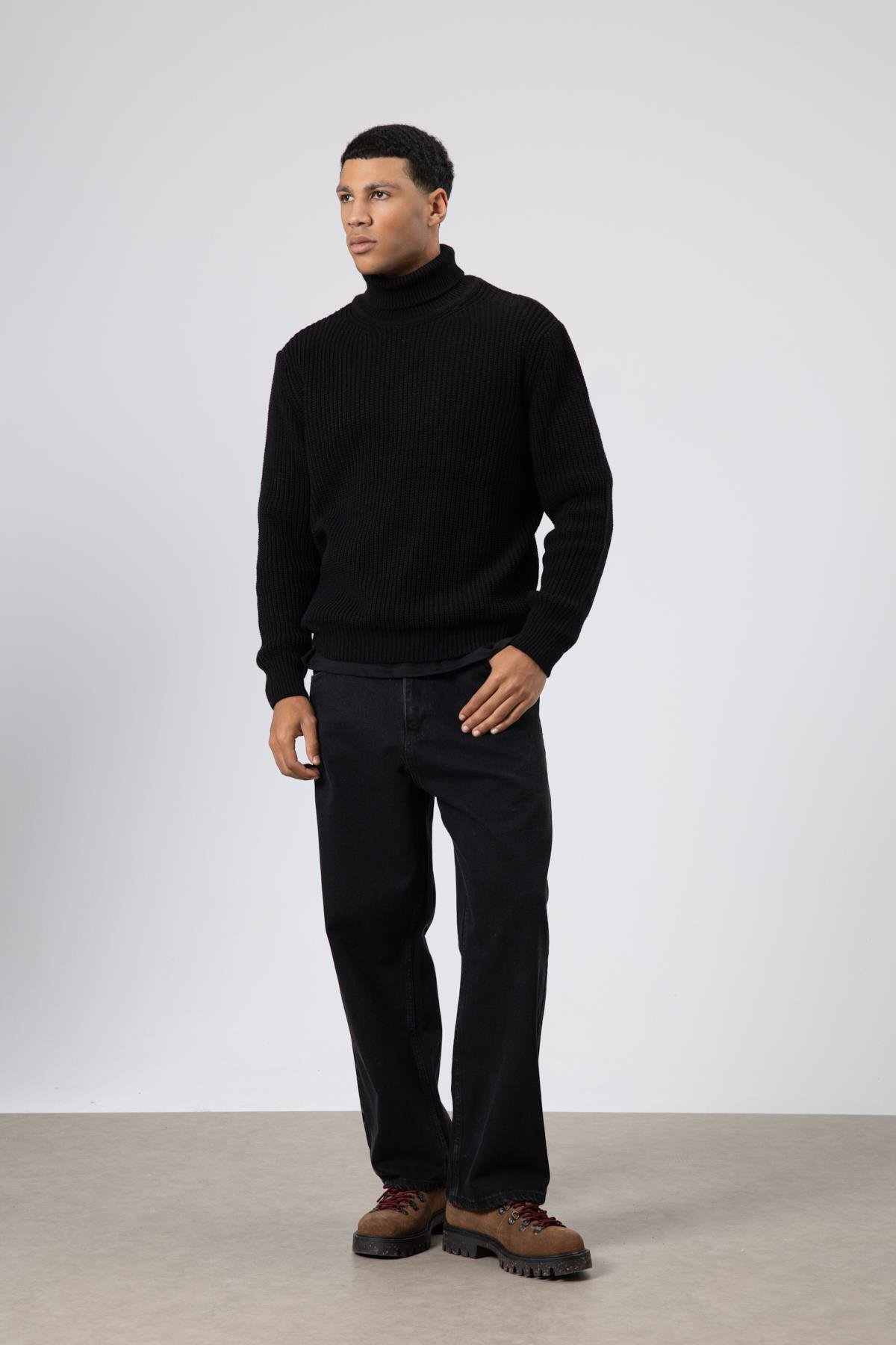 Oversize Triko Boğazlı Kazak Siyah (V60-13)