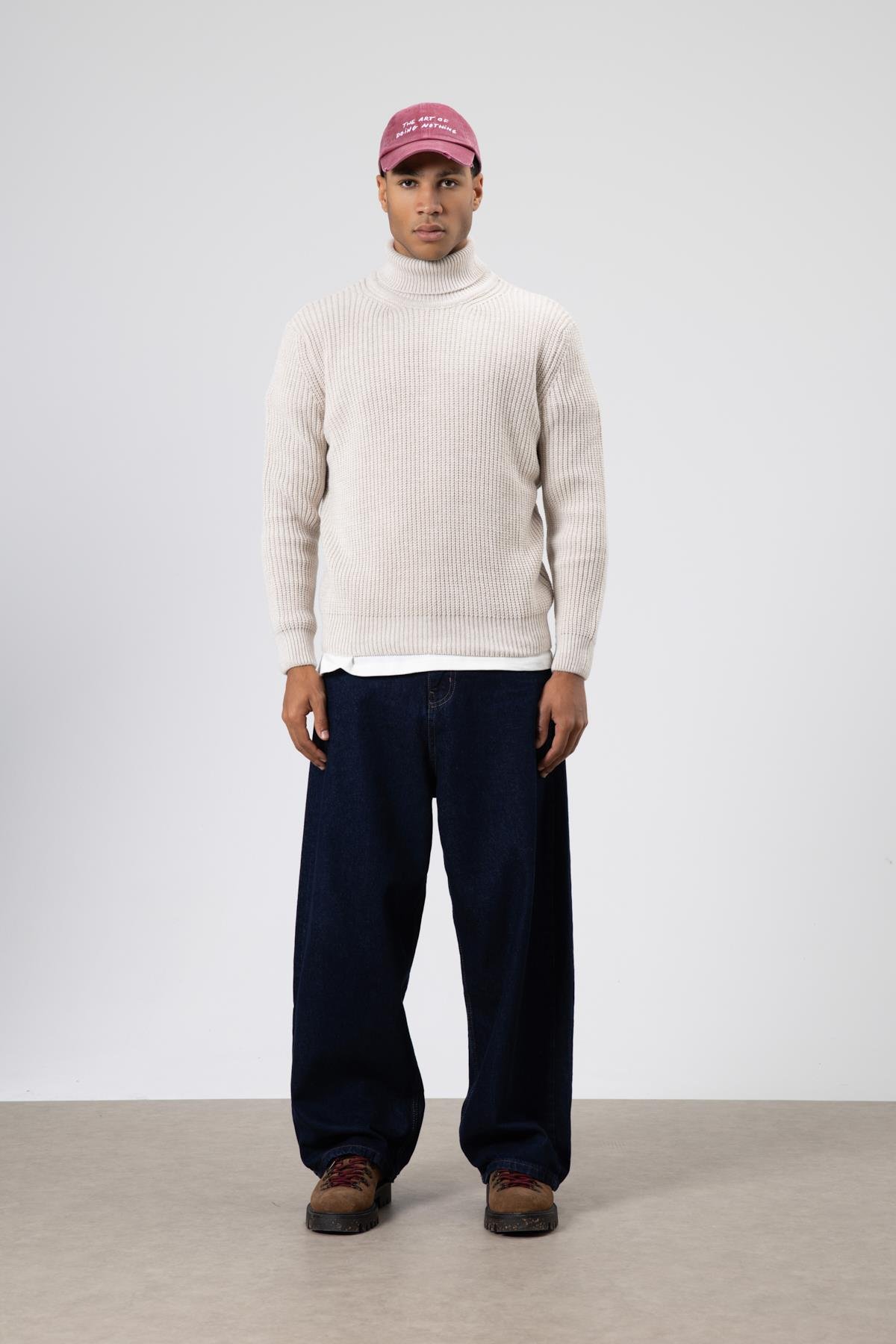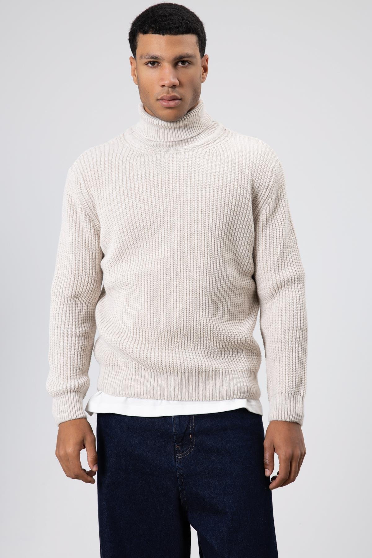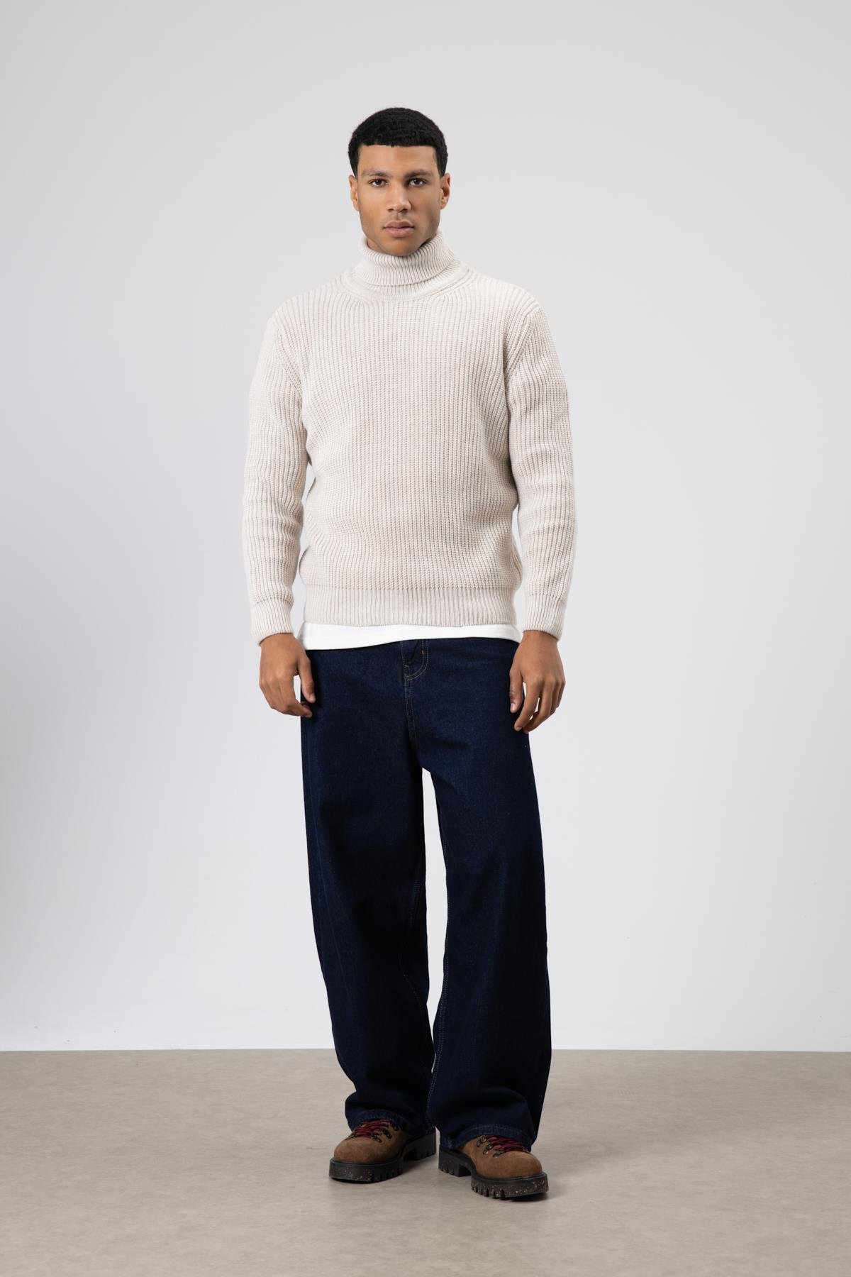 Oversize Triko Boğazlı Kazak Taş (V60-13)
