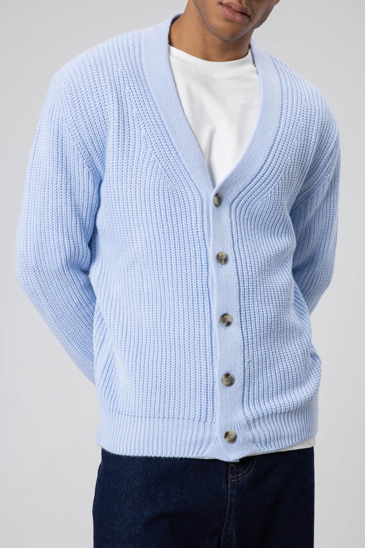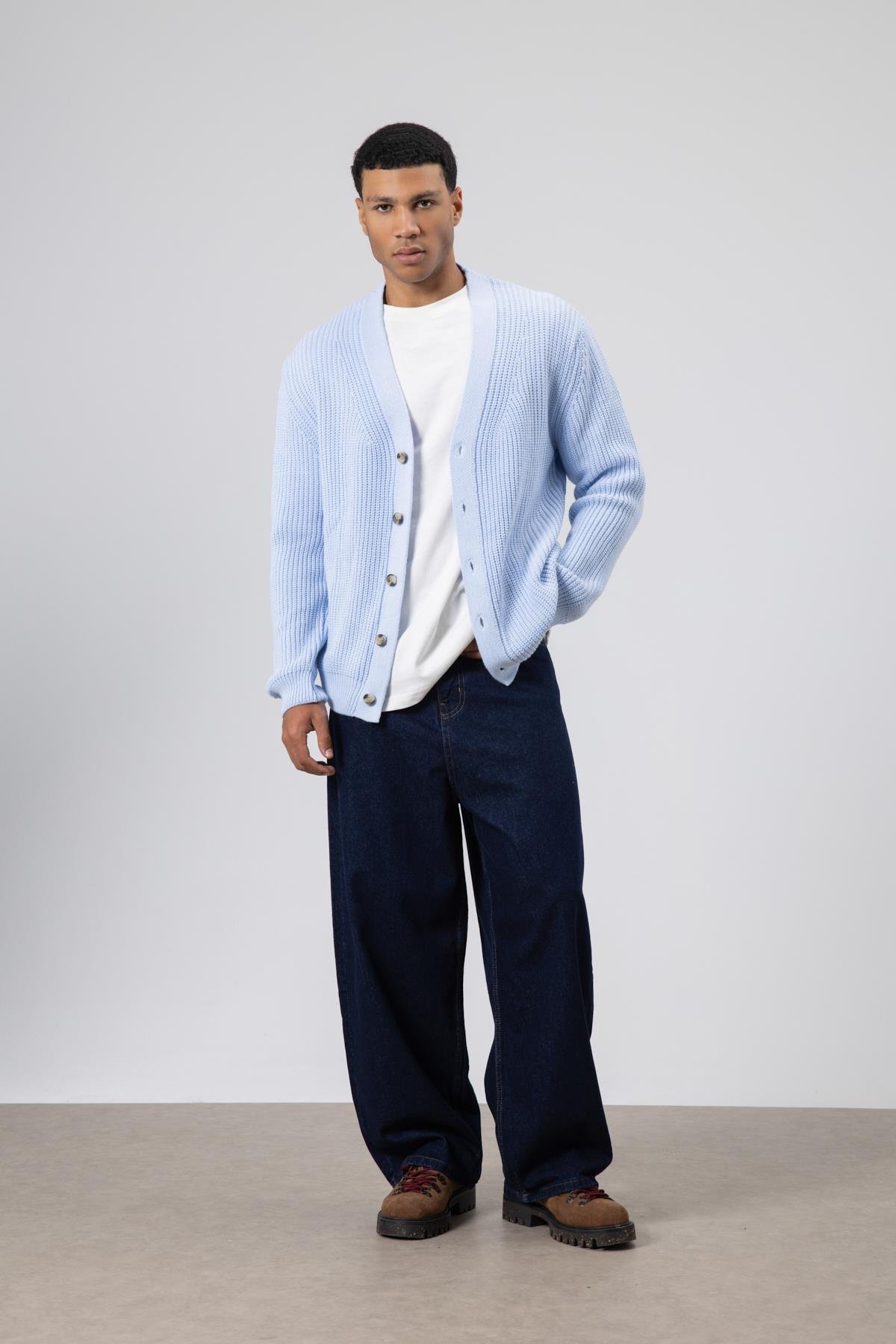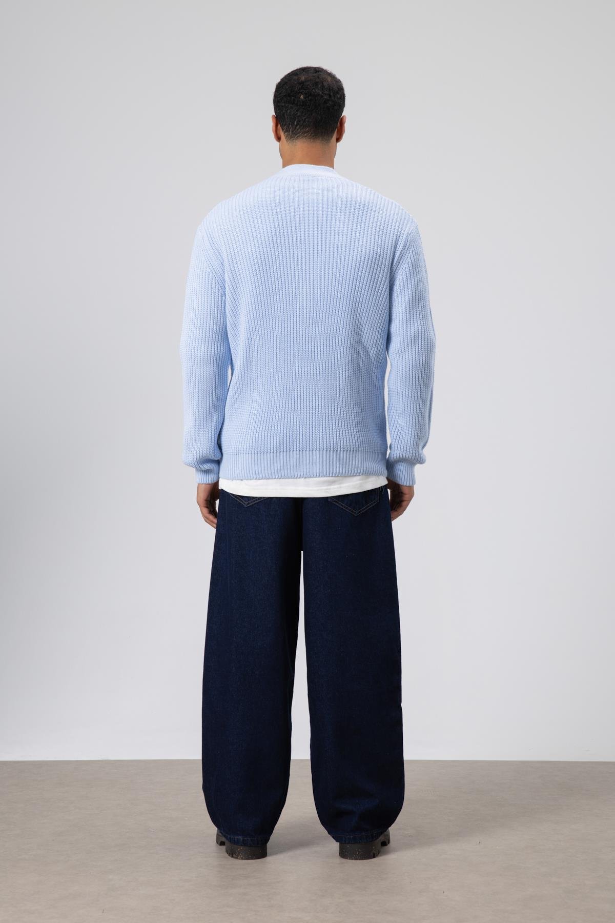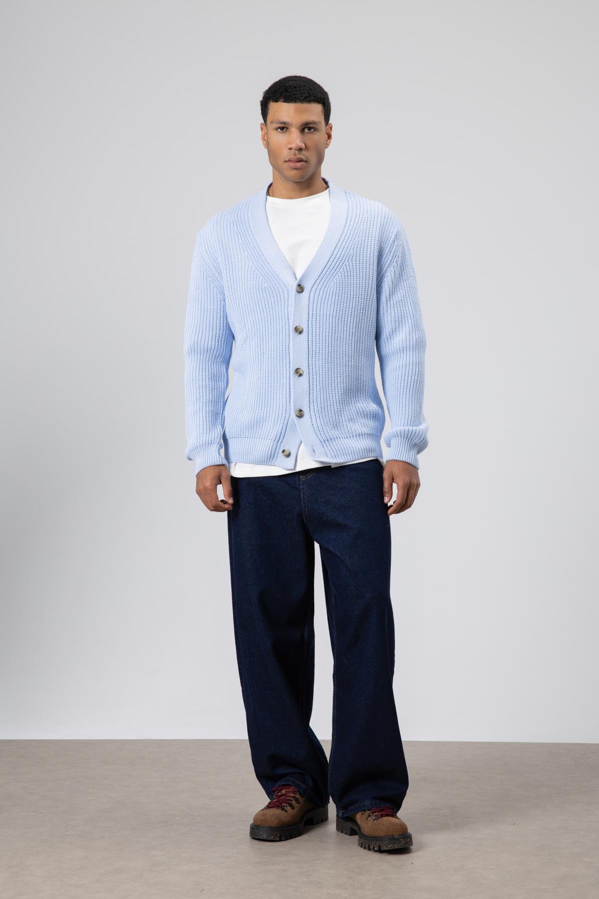 V Yaka Düğmeli Örgü Hırka Kazak Bebe Mavi (V60-12)