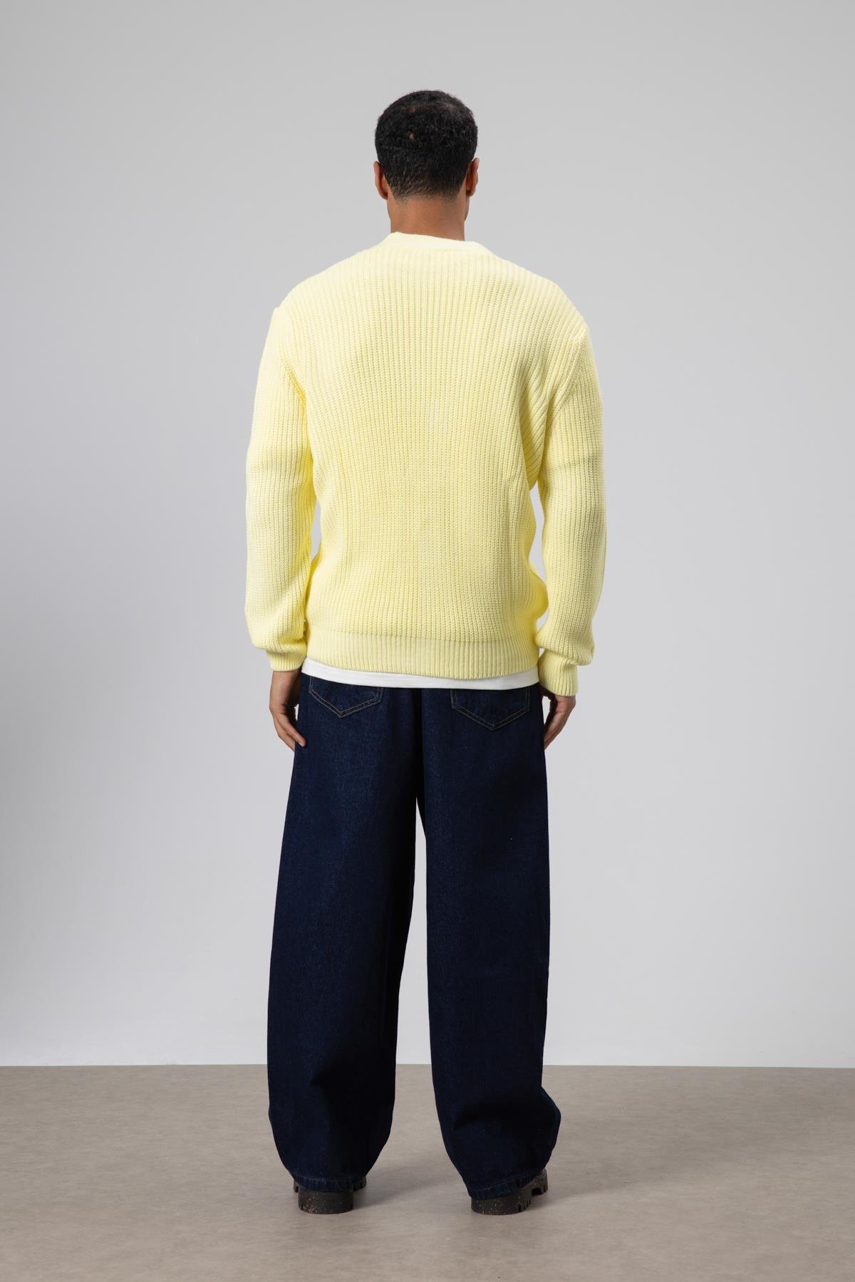 V Yaka Düğmeli Örgü Hırka Kazak Sarı (V60-12)