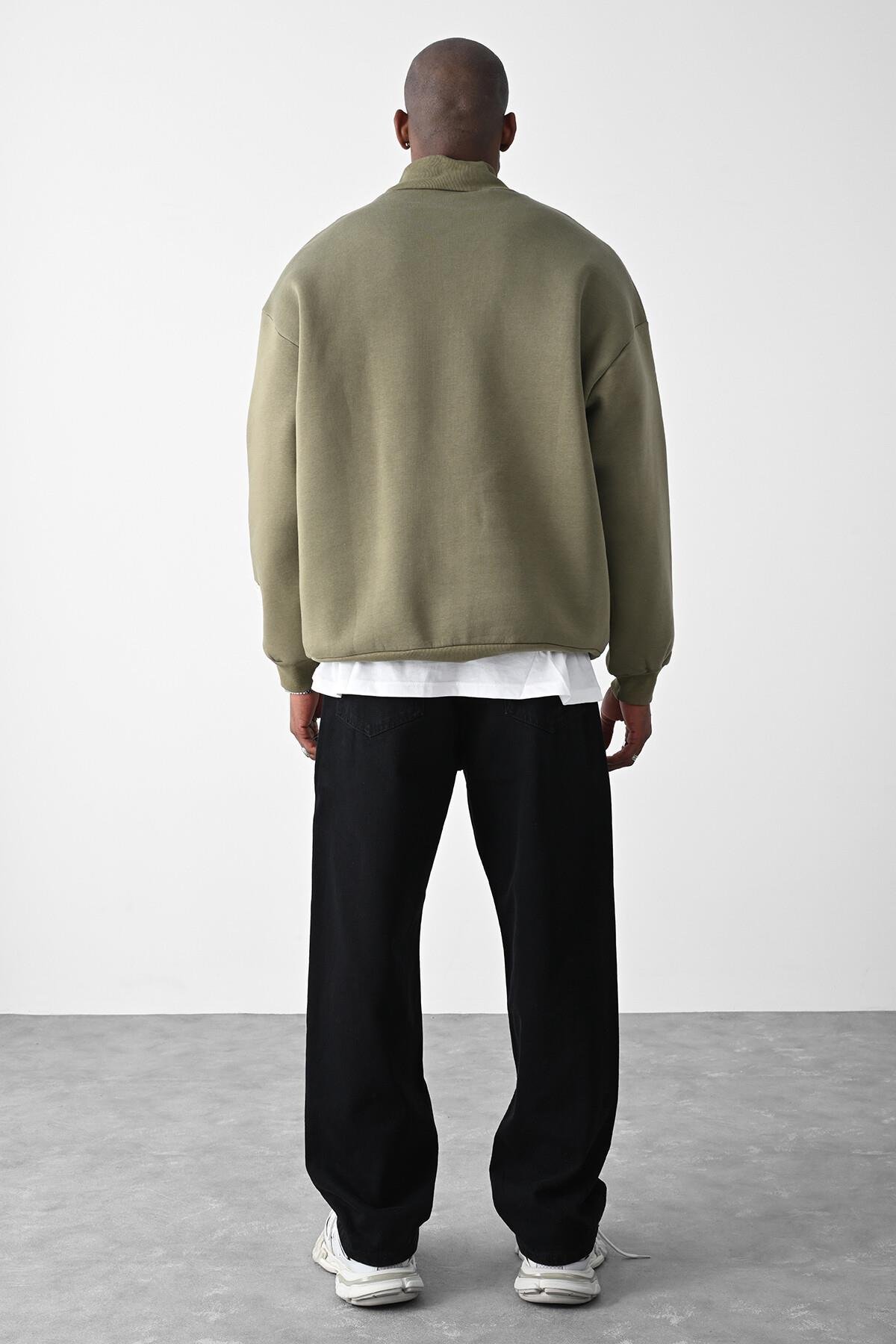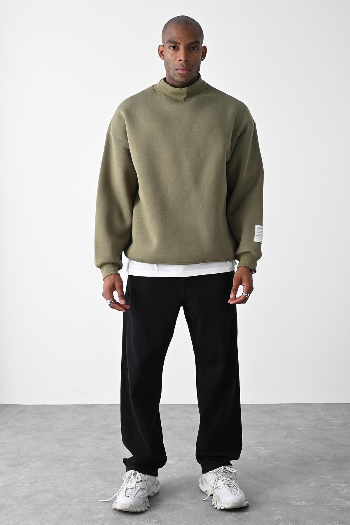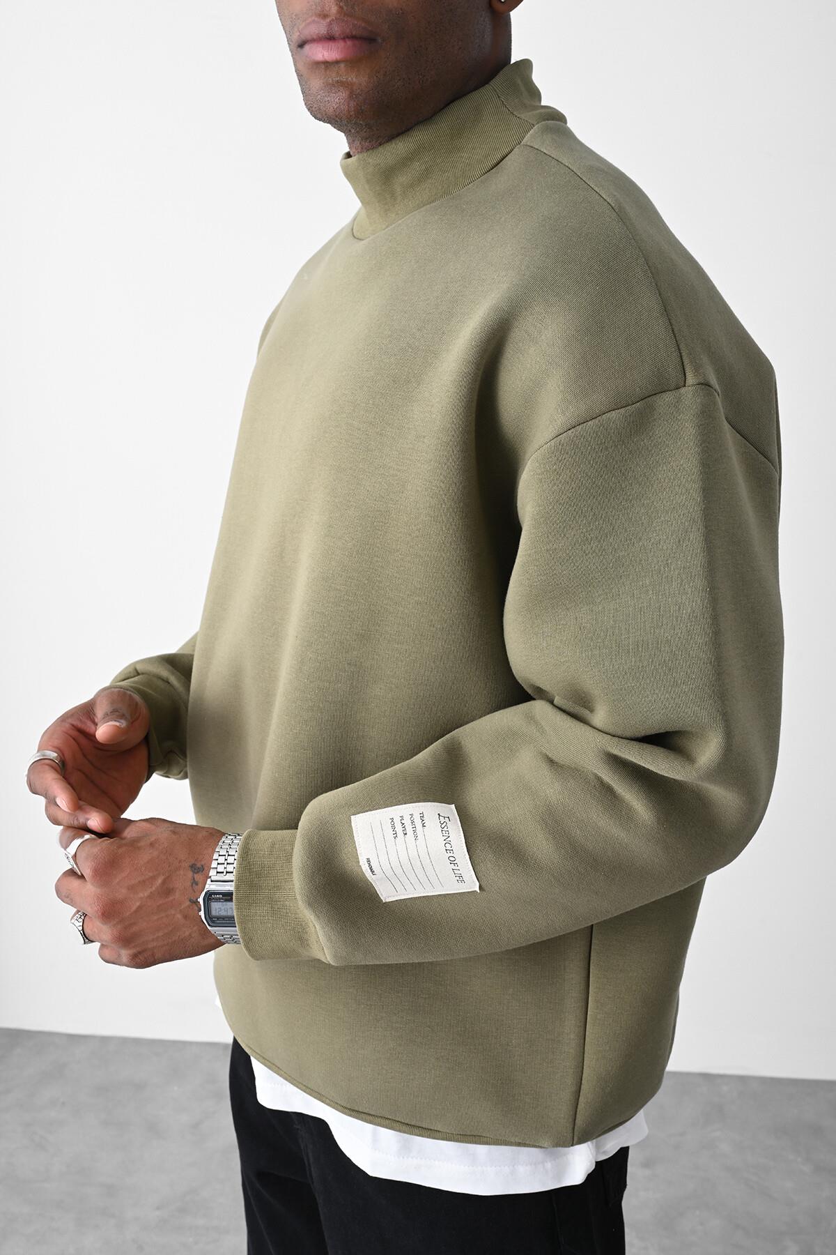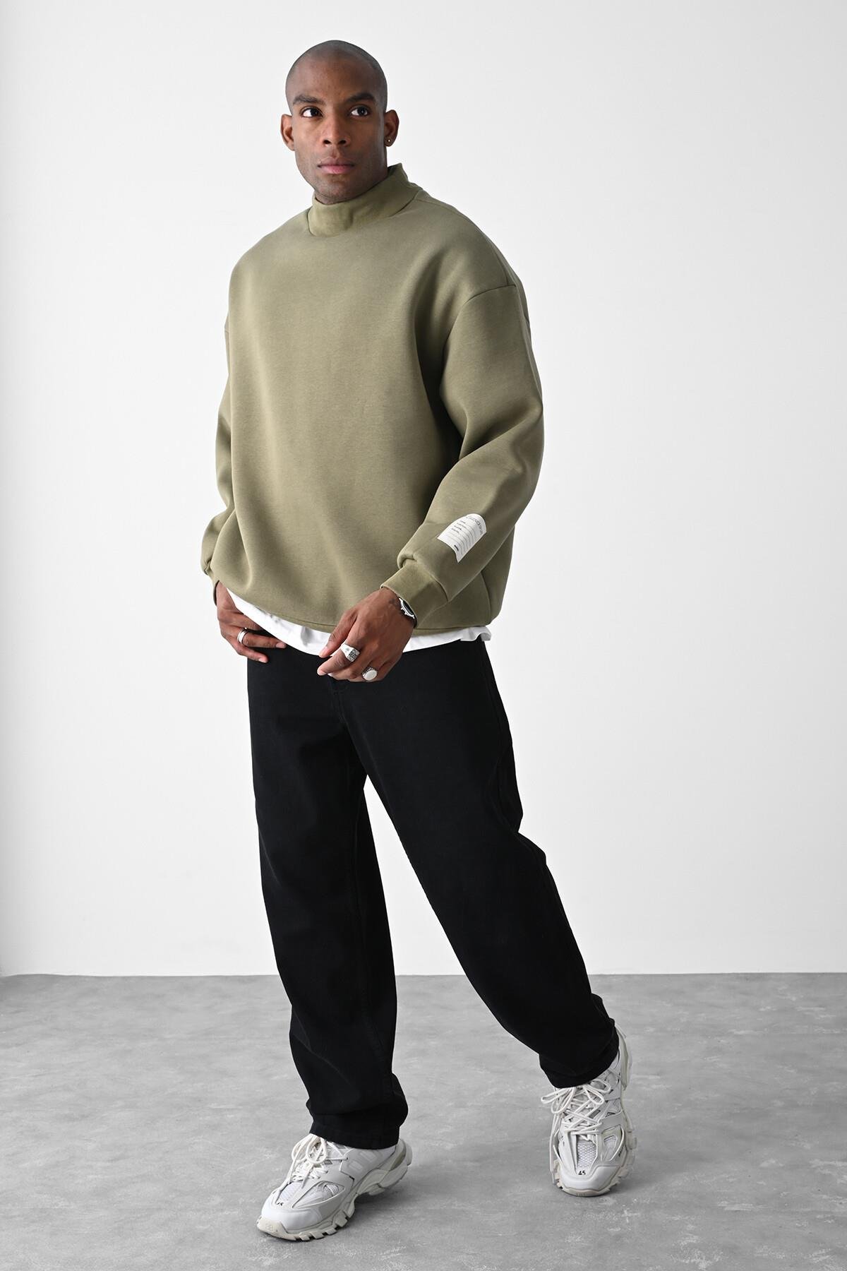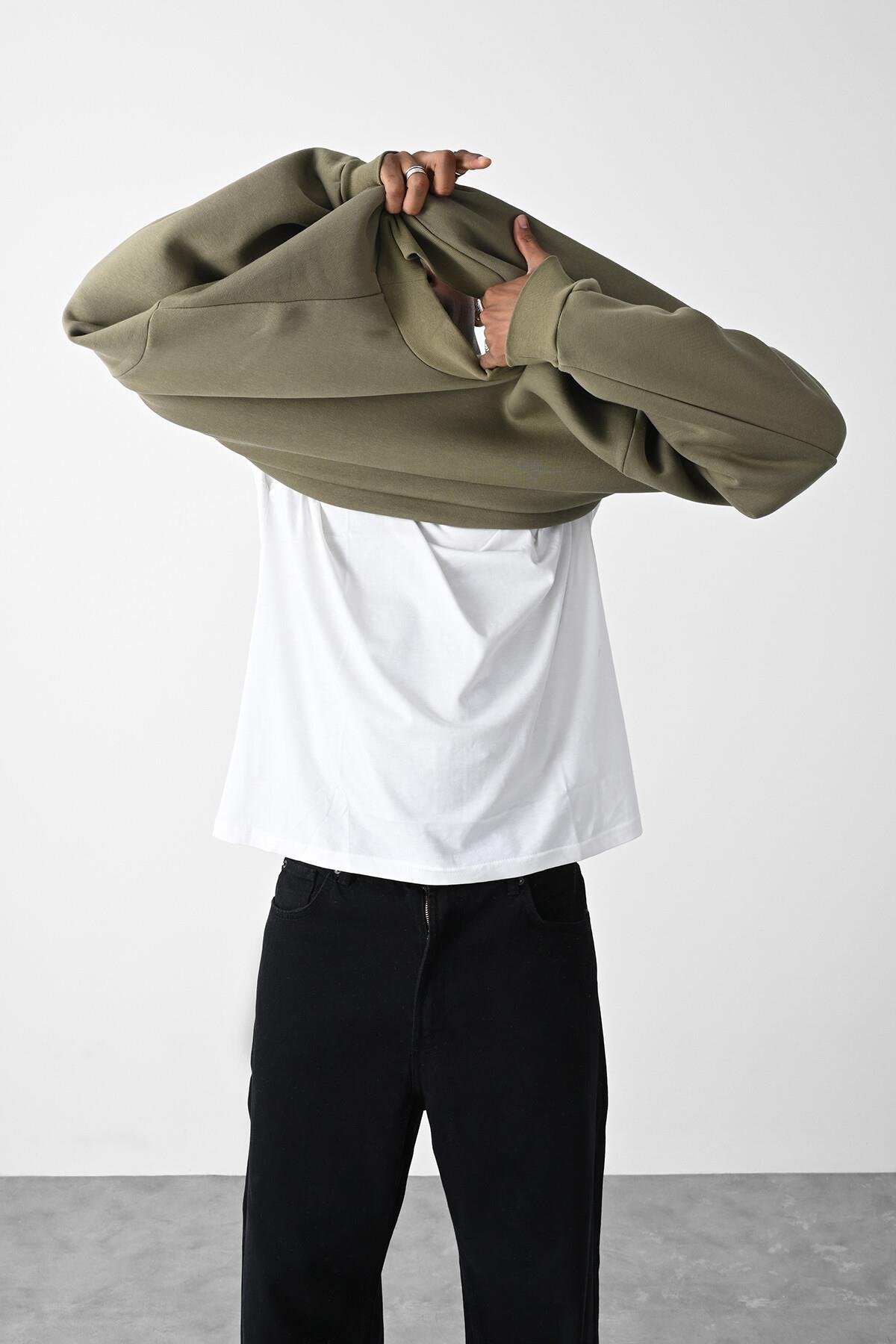 Vizon Kart Detaylı Oversize Sweatshirt Haki (30-774)