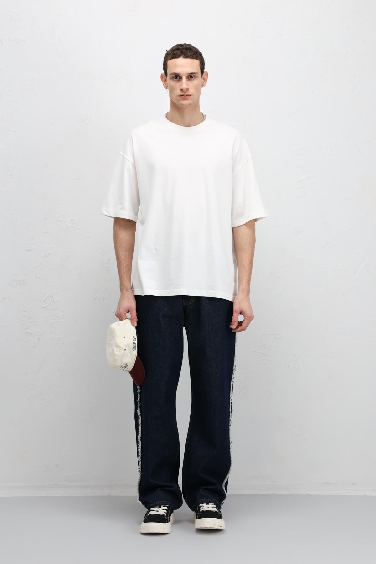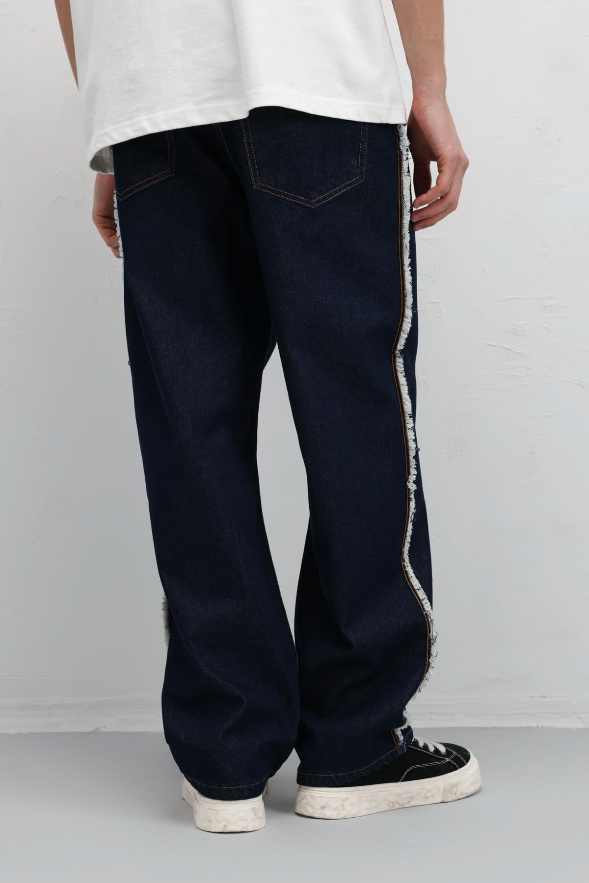 Yan Dikiş Detaylı Baggy Jean Koyu Mavi (V100-03)