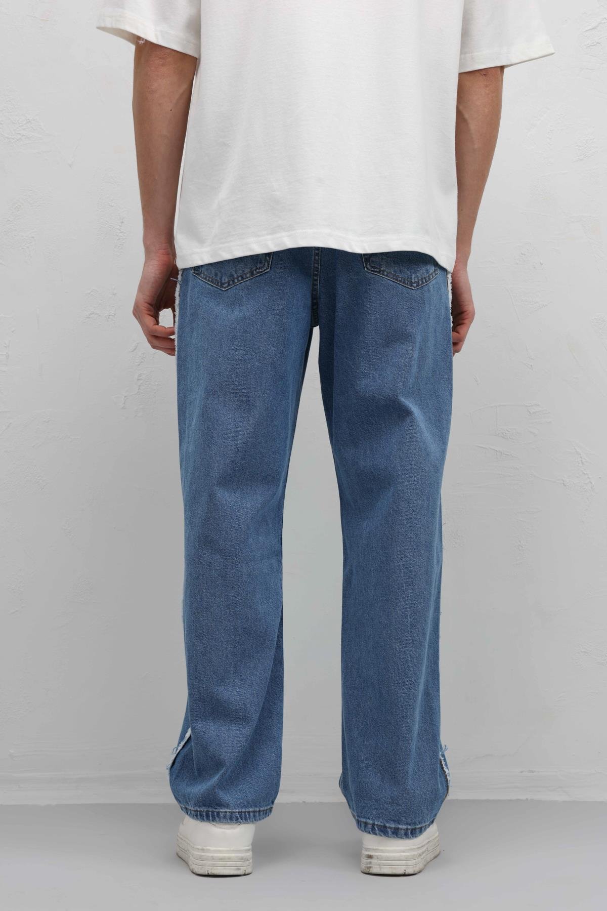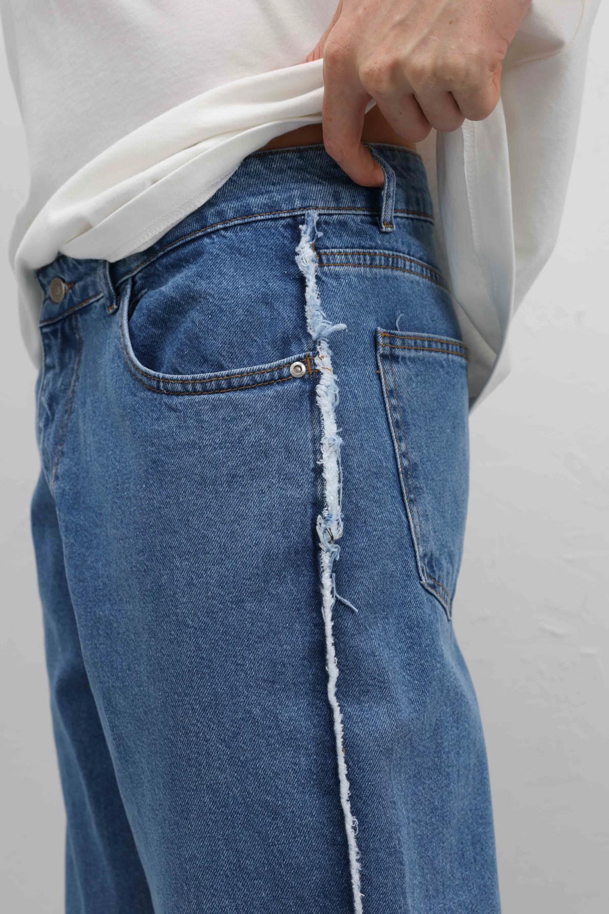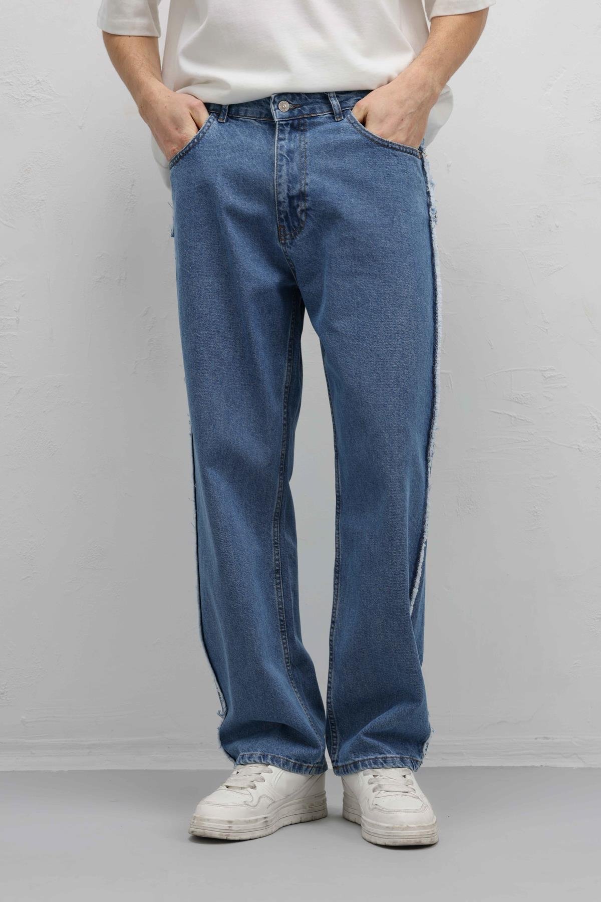 Yan Dikiş Detaylı Baggy Jean Mavi (V100-03)