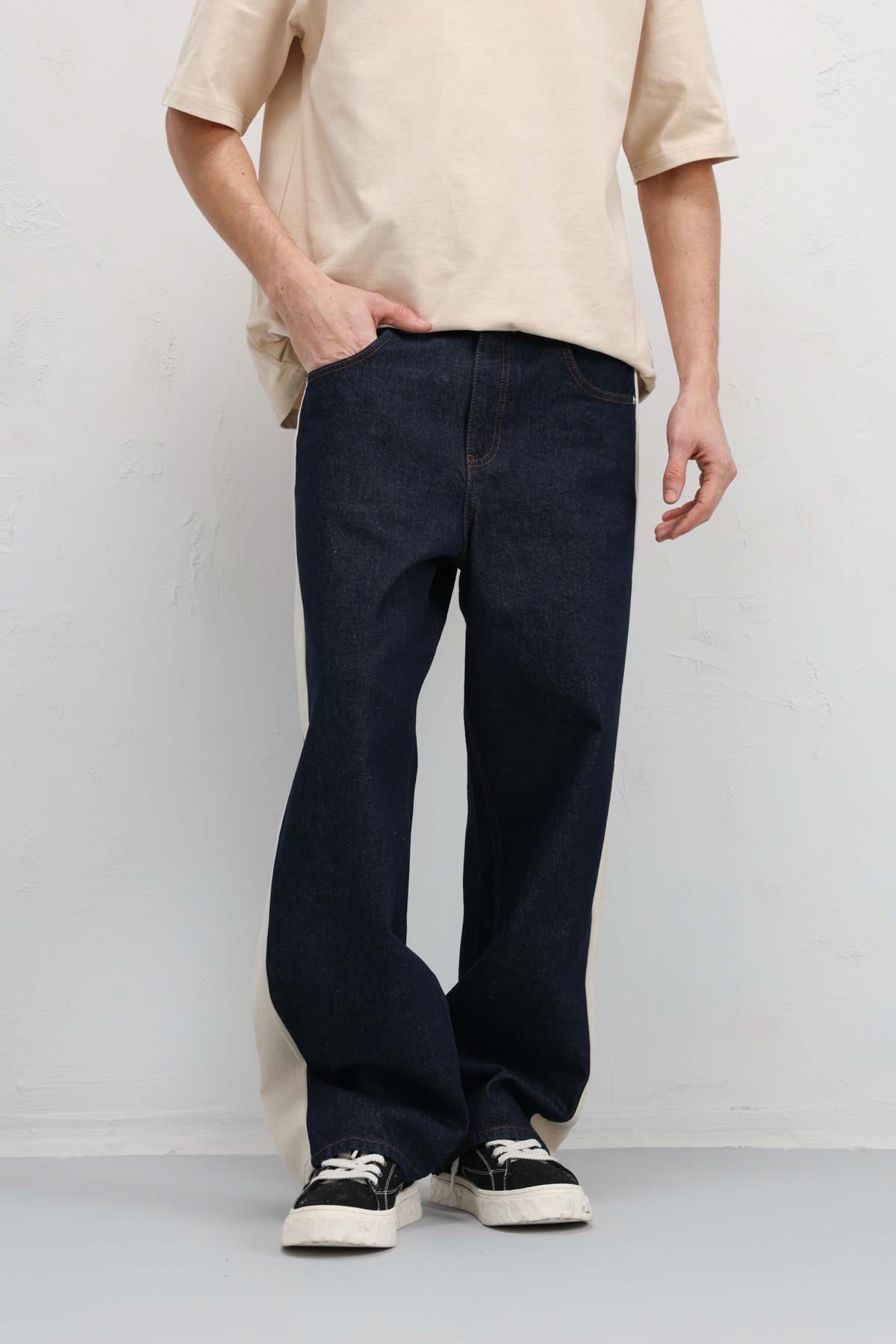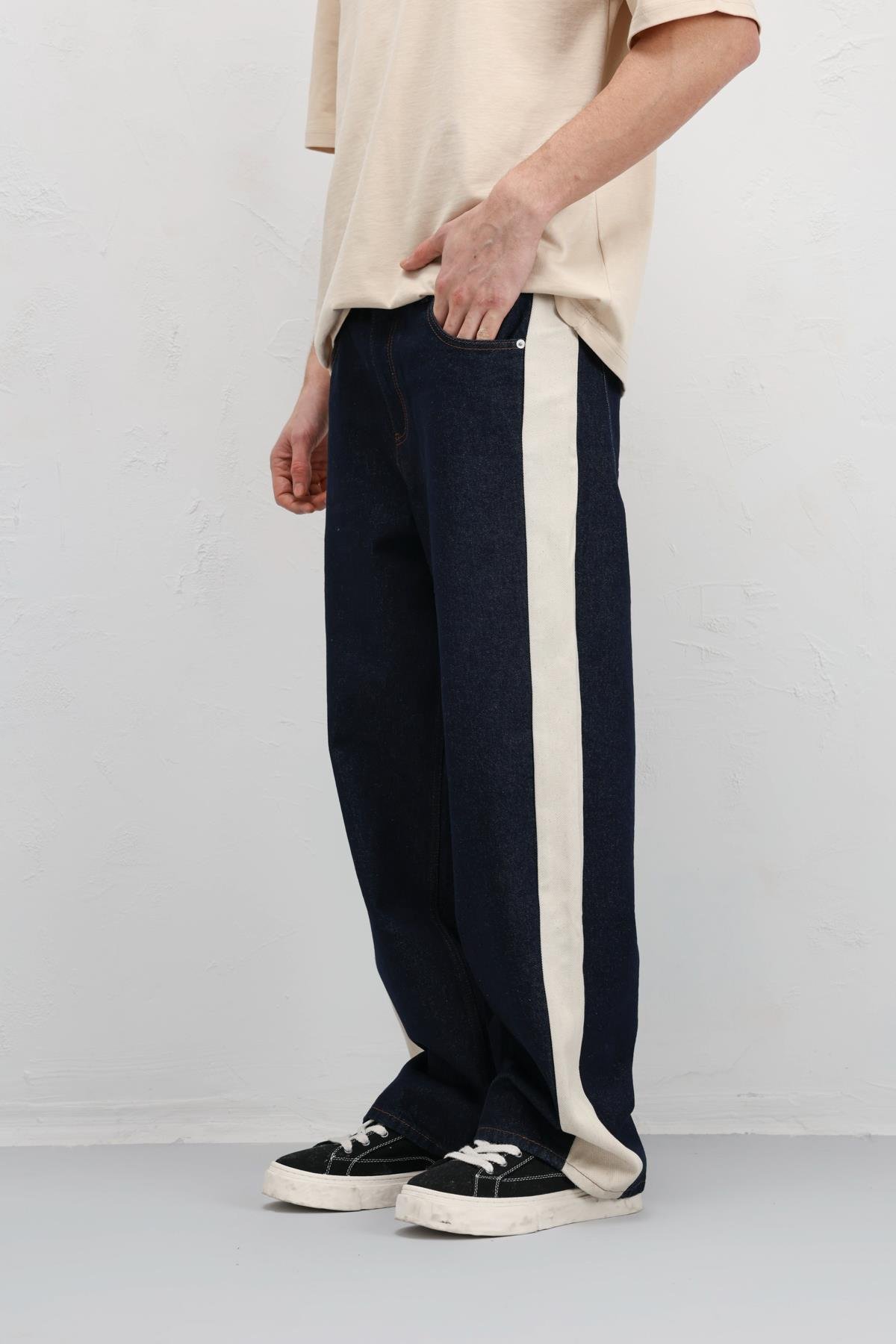 Yan Şeritli Baggy Fit Jean Koyu Mavi (V100-05)