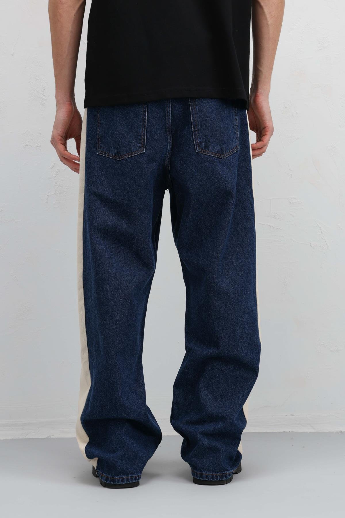 Yan Şeritli Baggy Fit Jean Mavi (V100-05)