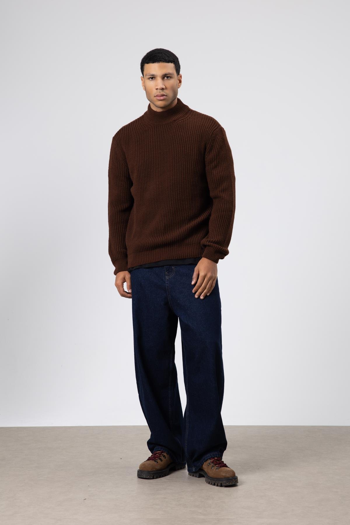 Yarım Balıkçı Yaka Triko Kazak Kahve (V60-15)