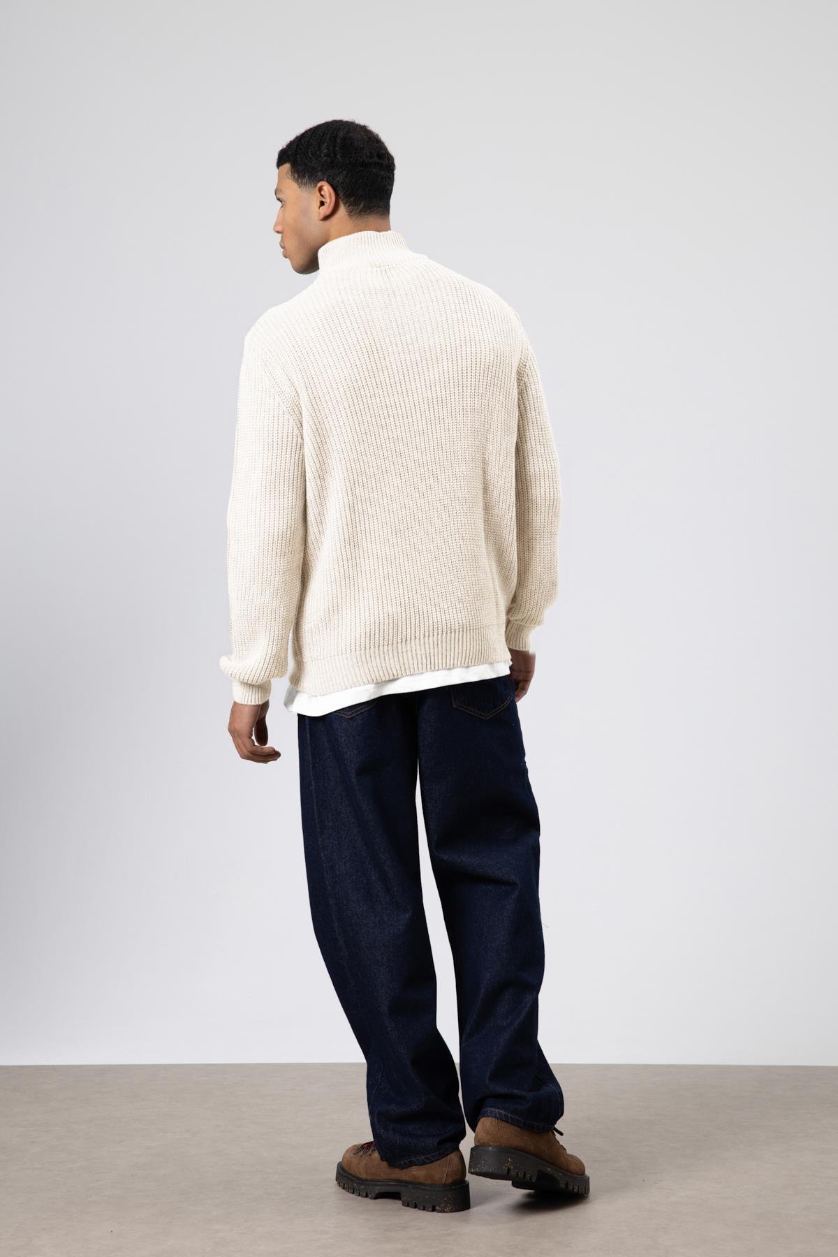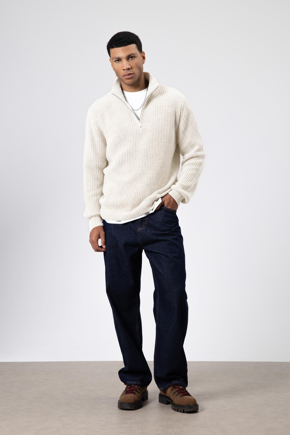 Fermuarlı Örme Triko Kazak Ekru (V60-11)