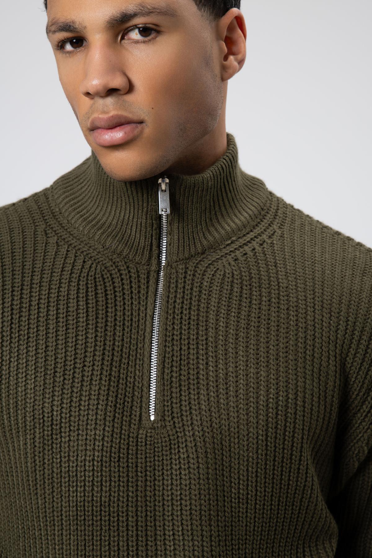 Fermuarlı Örme Triko Kazak Haki (V60-11)