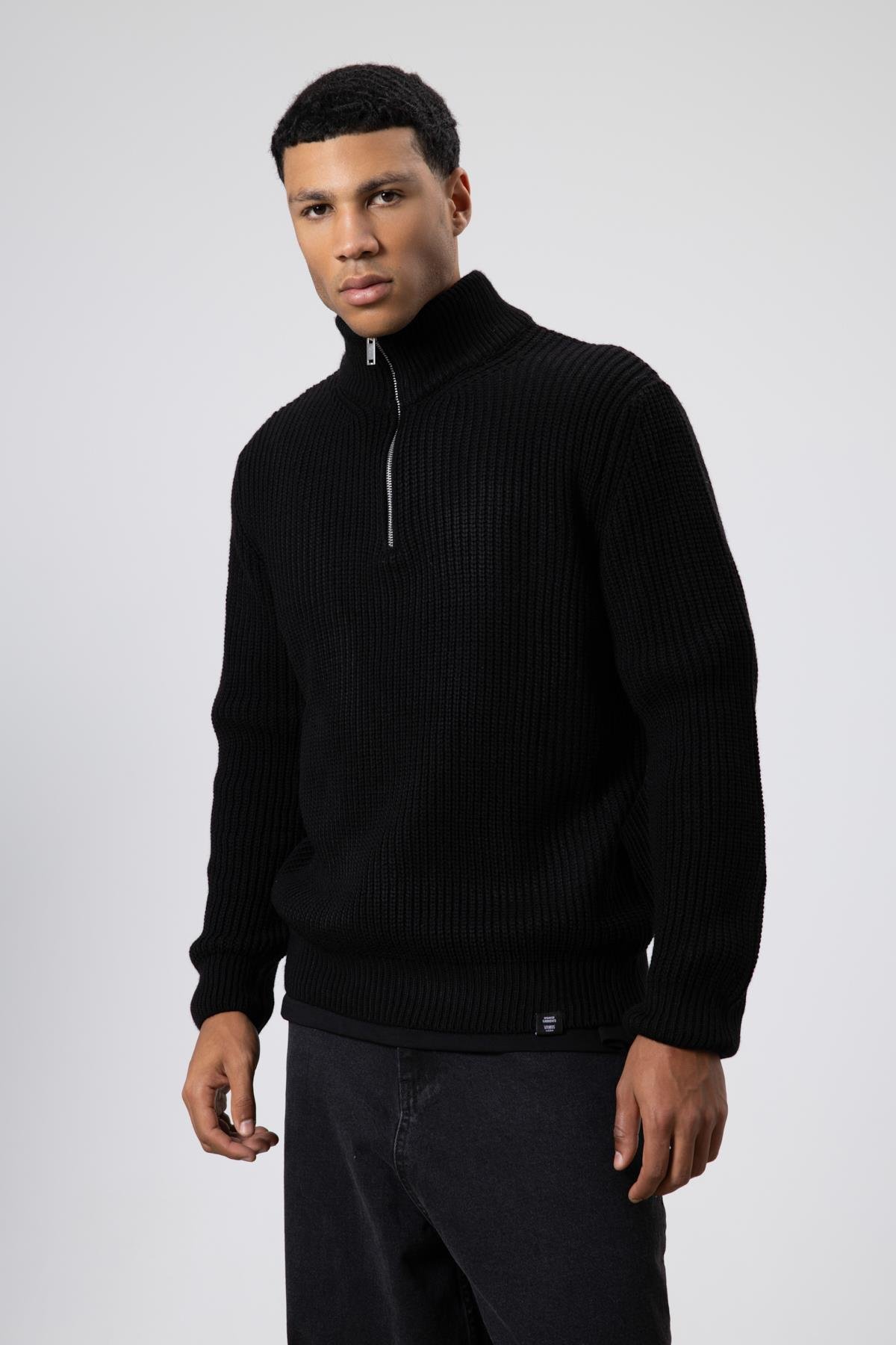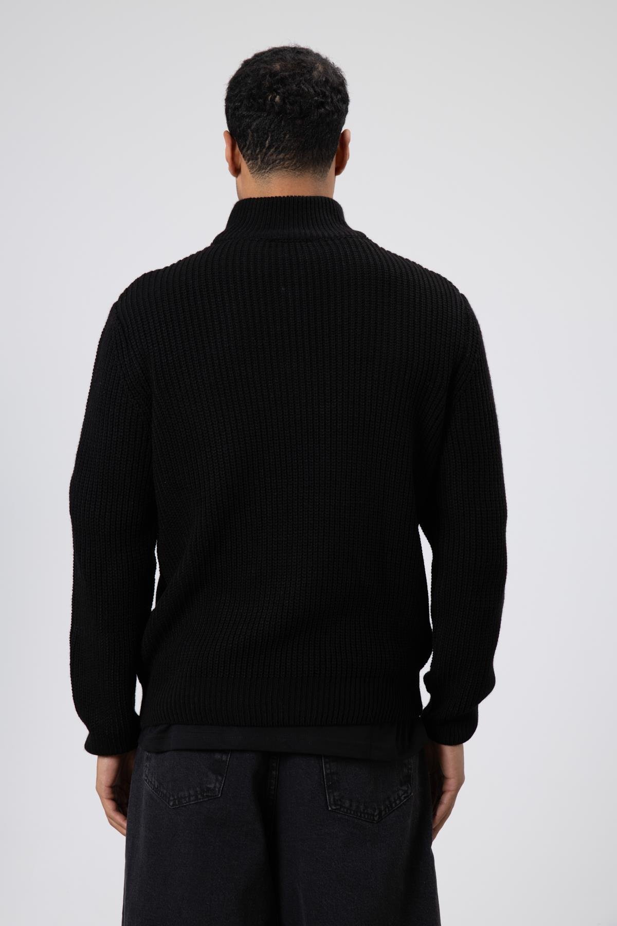 Fermuarlı Örme Triko Kazak Siyah (V60-11)