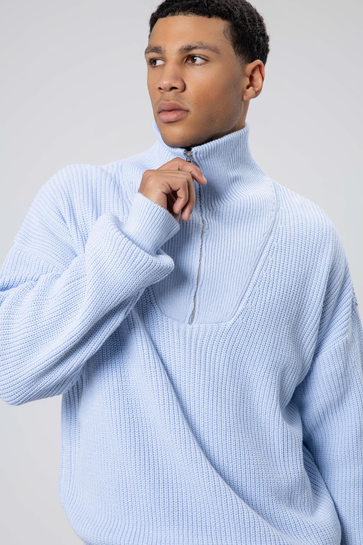Yarım Fermuarlı Triko Kazak Bebe Mavi (V60-17)