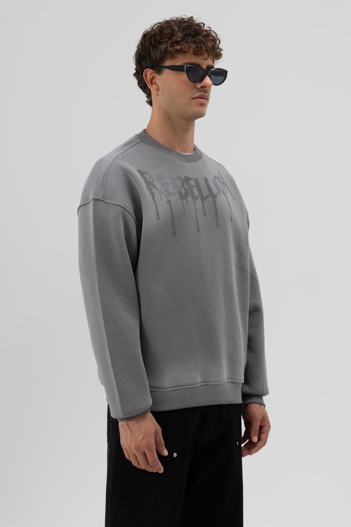 Yıkamalı Oversize Baskılı Sweatshirt Siyah (V70-101)