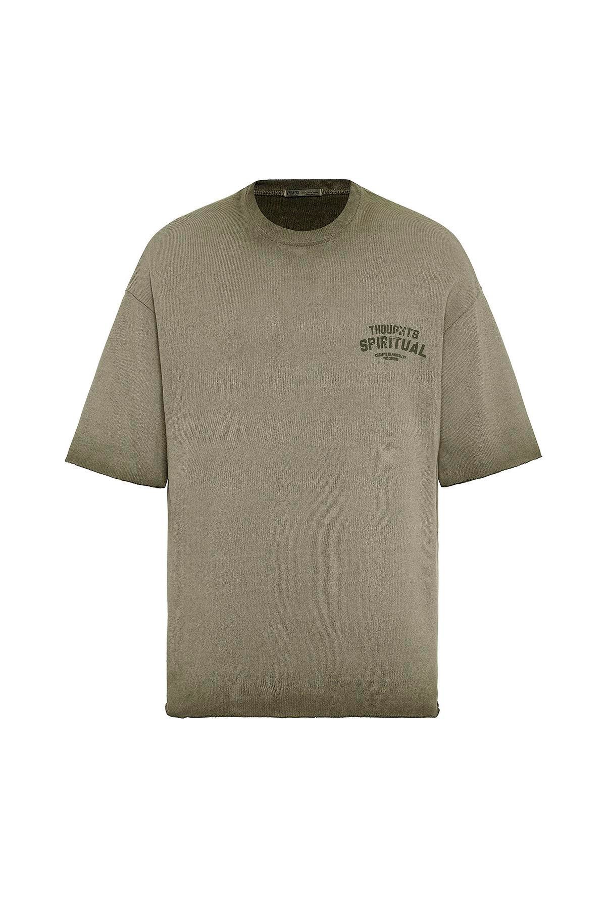 Yıkamalı Oversize Triko Tişört Haki (V70-58)